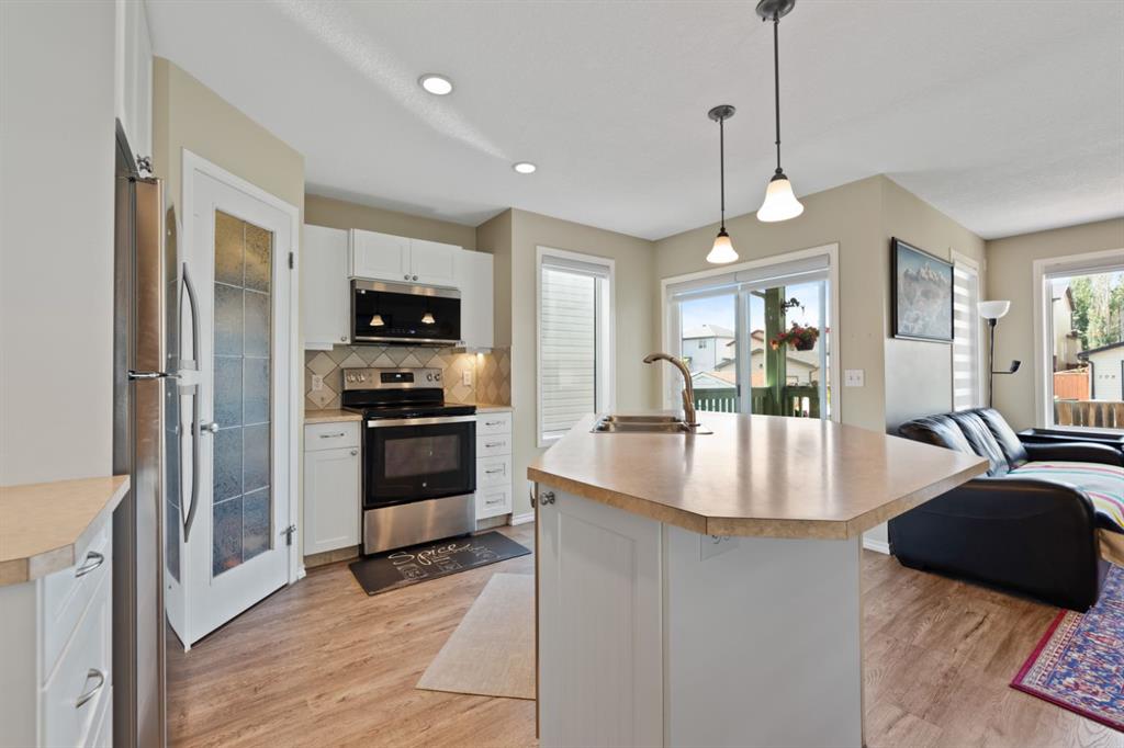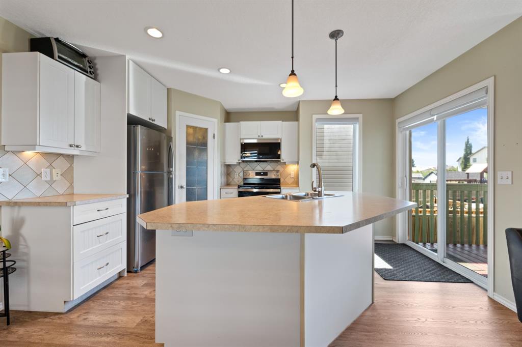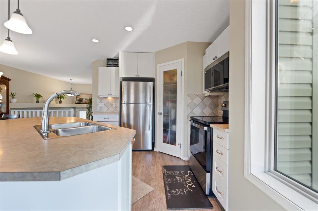 A very well kept, landscaped and fenced bilevel home on a quiet crescent in Coventry Hills. Open floor plan with an abundance of natural light on both levels. Very functional kitchen with brand new stainless steel appliances, spacious pantry, pot drawers and an island with breakfast nook. Dedicated dining area. Living room features a gas fireplace with stone surround. Two good sized bedrooms and a 4 pc bathroom completes the main floor. Patio doors open to a two tiered deck for you to enjoy the west facing backyard and garden. Lower level has a large family room, 3rd bedroom, full bath, a well organized laundry room and ample storage. Roof and siding was replaced in September 2024. The gravel parking pad will fit at least 3 vehicles. Convenient location close to Cardel Place, shopping, entertainment, restaurants and schools. Easy access to major arteries.