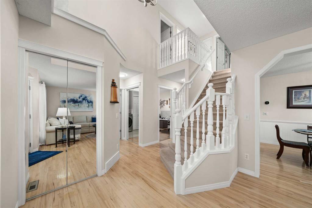**Open House: Saturday, November 8th, 1-3 pm ** Discover a home that feels new, starting with an incredibly private southwest-facing pie-shaped backyard backing onto no neighbors, that’s truly one of a kind. Thoughtfully designed with extensive landscaping, mature trees, multiple vinyl decks, a pergola, hot tub, underground sprinklers, and under-deck storage, this outdoor space offers the perfect blend of beauty, privacy, and functionality. Inside, this home continues to impress with four spacious bedrooms upstairs, including a fully renovated primary retreat with heated ensuite flooring and custom closets. The thoughtful layout, fresh lighting, and newer carpet make the upper level feel warm, bright, and ready for family life. Across all three levels, the home has been transformed with updates that make it feel modern, polished, and move-in ready. Enjoy solid maple hardwood floors, renovated bathrooms on every level, an updated kitchen with stainless steel appliances, a cozy gas fireplace, and a renovated family room that brings everyone together. On the main level you will also find a den/office, and separate dining room. The fully finished basement adds even more versatility with a large recreation and games area, new egress windows, and mechanical upgrades, including a new furnace (2023), instant hot water (2018), air conditioning, and a serviced water softener, offering both comfort and peace of mind. Car enthusiasts and hobbyists will love the heated garage, complete with epoxy flooring, added storage, attic access, and custom-built seating. Perfectly located just minutes from Chestermere Lake, golf, parks, schools, and everyday amenities, this home offers the ideal blend of privacy, comfort, and convenience.If you’re looking for a beautifully updated home with a standout yard, four bedrooms upstairs, office/den on the main level, and the kind of upgrades that make life easier, this is the one. Inquire about the list of full upgrades and book your showing today!