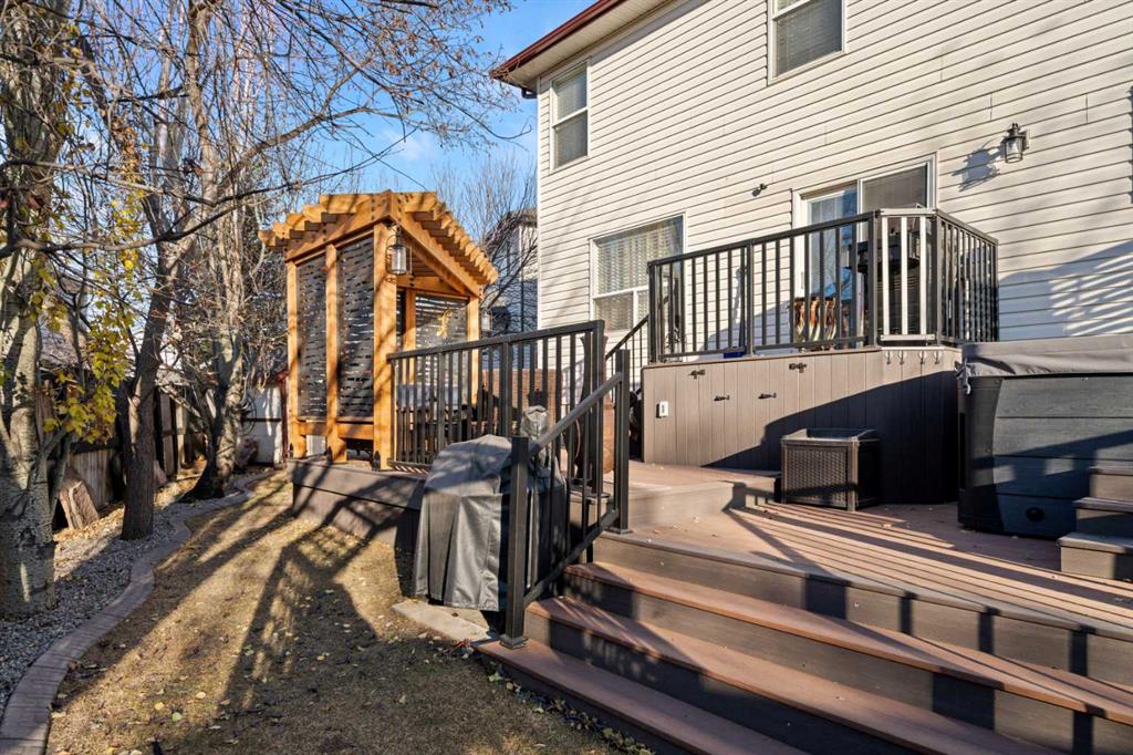 **OPEN HOUSE Sunday, January 25 2-4PM** Available for immediate possession. Discover a home that feels like new, starting with an incredibly private southwest-facing pie-shaped backyard backing onto no neighbours. This one of a kind lot is within walking distance to Prairie Waters Elementary School and St. Gabriel The Archangel School (Grades 7–12). The outdoor space is thoughtfully designed with extensive landscaping, mature trees, multiple vinyl decks, a pergola, and hot tub, offering the perfect blend of beauty, privacy, and functionality. Inside, the home continues to impress with four spacious bedrooms upstairs, including a fully renovated primary retreat with heated ensuite flooring and custom closets. The main level features solid maple hardwood floors, renovated bathrooms on every level, an updated kitchen with stainless steel appliances, a cozy gas fireplace, and a renovated family room that brings everyone together. You’ll also find a den/office and a separate dining room. The fully finished basement adds even more versatility with another bedroom, a large recreation and games area, new egress windows, and mechanical upgrades including a new furnace (2023), instant hot water (2018), air conditioning, and a serviced water softener, providing both comfort and peace of mind. Car enthusiasts and hobbyists will appreciate the heated garage with epoxy flooring, added storage, attic access, and custom-built seating. Perfectly located just minutes from Chestermere Lake, golf, parks, schools, and everyday amenities, this home offers the ideal blend of privacy, comfort, and convenience. If you’re looking for a beautifully updated home with a standout yard, four bedrooms upstairs, an office/den on the main level, and thoughtful upgrades that make life easier, this is the one. Inquire today about the full list of upgrades and book your showing!