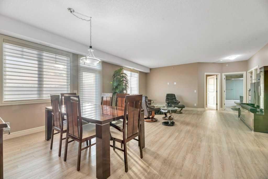 Enjoy quiet living with no unit above and a spectacular two-storey, south-facing balcony designed to capture warm sunshine, making it perfect for entertaining and summer barbecues. Ideally situated along the edge of Fish Creek Provincial Park, this award-winning complex offers direct access to miles of scenic walking, hiking, and cycling pathways, creating a true nature-lover’s retreat. This immaculate two-bedroom plus den, two-bathroom home features soaring 9-foot ceilings and a thoughtfully designed open-concept layout enhanced by upgraded laminate flooring and new plush carpeting throughout. The spacious foyer leads into a beautifully appointed gourmet kitchen complete with granite countertops, abundant espresso cabinetry, deep drawers, a corner pantry, and premium stainless-steel appliances including a Miele induction range, Miele dishwasher, and a French-door refrigerator with water and ice maker. The expansive living and dining areas are flooded with natural light from the sunny south exposure and seamlessly extend to the oversized balcony, creating an exceptional indoor-outdoor living experience. The primary suite offers a peaceful retreat with a walk-in closet and a four-piece ensuite featuring double sinks. A generously sized second bedroom is conveniently located beside the main four-piece bath. Both bedrooms showcase new top-grade carpeting and custom organizers. The dedicated den provides excellent built-in cabinetry, making it ideal for a home office or hobby space. In-suite laundry with a Maytag washer and dryer, central air conditioning, and condo fees that include all utilities add everyday comfort and convenience. This unit includes two titled, adjacent heated underground parking stalls and two secure storage lockers just steps from the elevator. Thoughtfully updated and meticulously maintained, recent improvements include ceiling fans in both bedrooms, custom cabinetry and high-end closet organizers, a retractable screen door, updated lighting in the den and kitchen, a new shower door in the main bath, makeup mirrors in both bathrooms, and a programmable thermostat. Sanderson Ridge is renowned for its exceptional resort-style amenities, including a swimming pool, hot tub, steam room, fitness centre, bowling alley, movie theatre, woodworking shop, craft room, wine cellar, billiards room, and two car wash bays. Bright, spacious, and move-in ready, this home offers an unparalleled lifestyle in one of Calgary’s most sought-after adult communities. Welcome home!