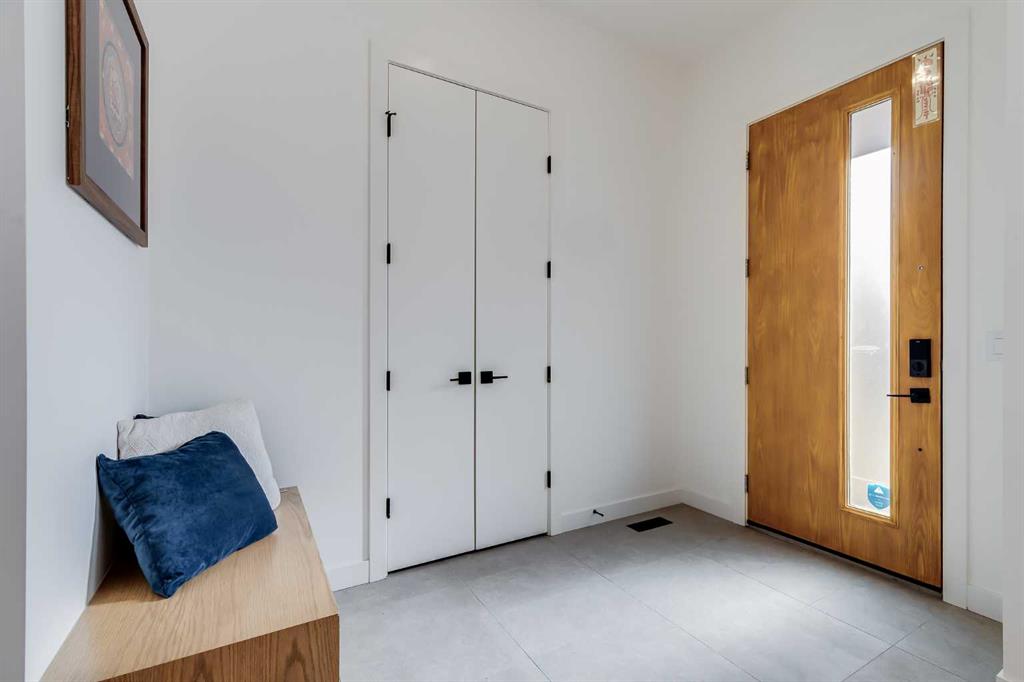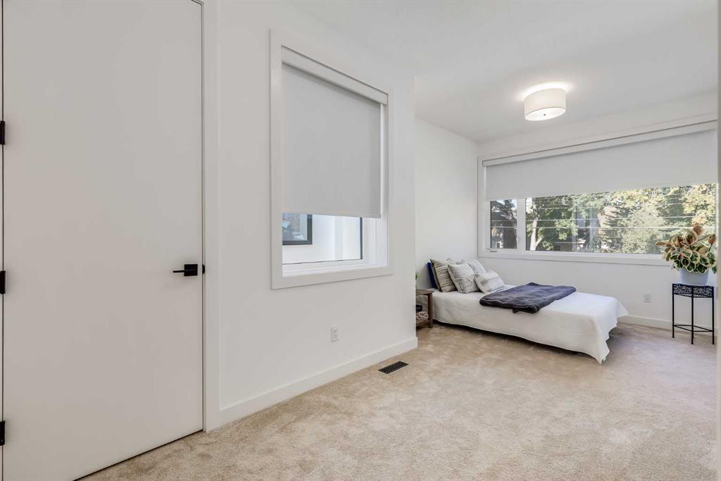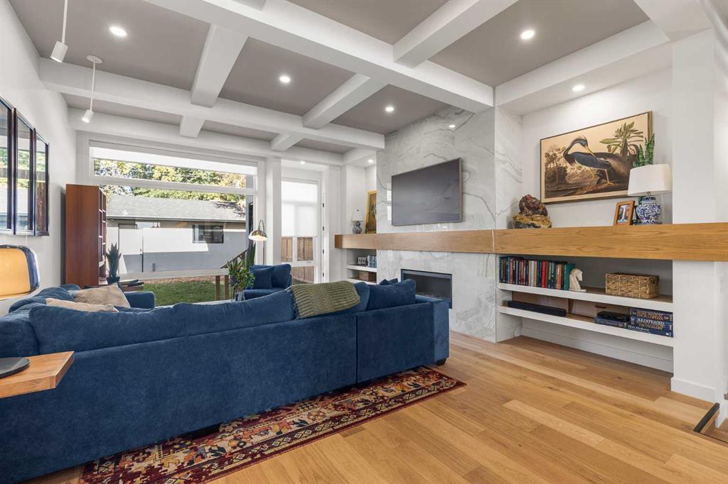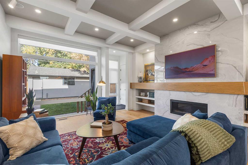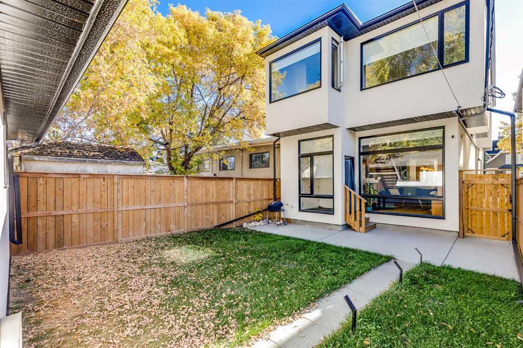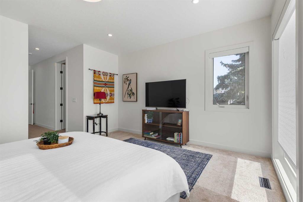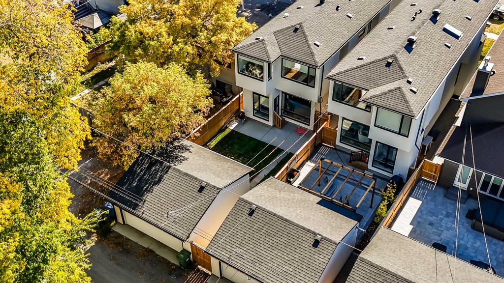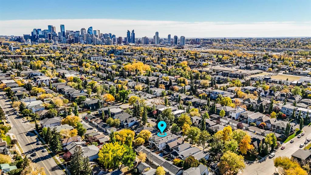 Located in the highly sought-after community of West Hillhurst, this exceptional two-storey home offers over 3,100 square feet of developed living area that blends refined luxury with timeless European-inspired design. Custom-built by Deanmark in 2023, every detail reflects superior craftsmanship and quality materials. With four bedrooms and three and a half bathrooms, this residence delivers both sophistication and functionality for modern family living.The inviting foyer sets the tone with tile flooring and a built-in bench, while wide-plank engineered hardwood extends seamlessly throughout the rest of the main level. Ten-foot ceilings and eight-foot solid core doors enhance the sense of height and elegance, while large windows fill the home with natural light. The open-concept layout connects the kitchen, dining, and living areas, creating an ideal setting for everyday living and entertaining alike. The kitchen is a showpiece, featuring sleek white cabinetry, quartz countertops, a massive waterfall island with seating, and premium Fisher & Paykel stainless steel appliances, including a gas cooktop. Ample storage and workspace make it as functional as it is beautiful. The adjacent dining area easily accommodates family gatherings, while the living room exudes warmth with its linear gas fireplace, tile surround, custom built-in display shelves, and coffered ceiling. A stylish two-piece powder room with a stone pedestal sink finishes the main floor. Upstairs, nine-foot ceilings and thoughtful design create a calm retreat. The primary suite is a luxurious escape, featuring soft carpeting, a spacious walk-in closet with custom shelving, and a spa-like ensuite with heated tile floors, dual sinks, a soaker tub, and an oversized shower. Two additional bedrooms, a four-piece bathroom, and a convenient laundry room round out the upper level. The fully developed basement features 9’4” ceilings, oversized windows, and a bright, open layout. A large recreation room with a sleek wet bar, complete with sink, beverage fridge, and wine display, creates an inviting space for entertaining. A guest bedroom, three-piece bathroom with steam shower, and dedicated storage add functionality. Outside, the backyard offers a concrete patio and grass area leading to a double detached garage with alley access. Hunter Douglas blinds and central air conditioning add year-round comfort. West Hillhurst is one of Calgary’s most desirable inner-city neighbourhoods, known for its blend of family-friendly charm and urban accessibility. You’re within walking distance to the vibrant shops, cafés, and restaurants of Kensington, offering an unmatched lifestyle. Families will appreciate being just a 15-minute walk from both Queen Elizabeth Schools. Nearby parks and the Bow River pathways provide endless opportunities to enjoy the outdoors, while commuting is effortless with easy access to major roadways and transit. Check out the 3D tour for a closer look!