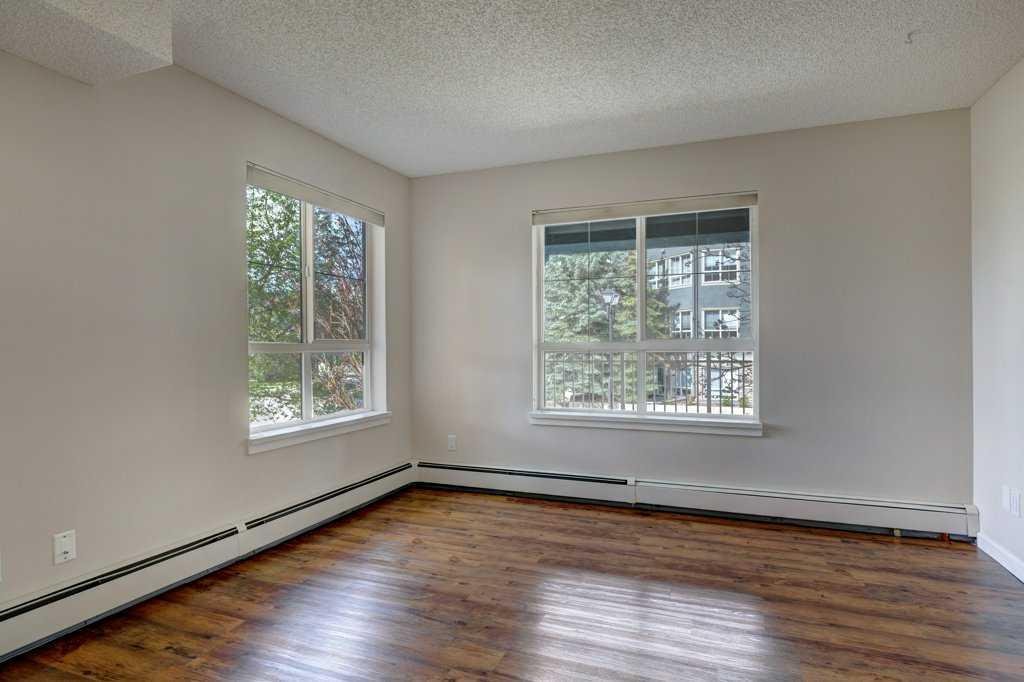 Super private, bright spacious 2 bedroom home with 2 full baths. Corner unit with south and west facing windows that face beautiful trees for privacy, yet still allowing ample natural light throughout. Ceramic tile Foyer to great hospitable entry into unit, opening up through to living space. Spacious kitchen, black quarts counters and eating bar, newer stainless steel appliances, corner pantry, abundant storage, laminate flooring throughout, (except bathrooms). Large entertainment size Living Room with cozy gas fireplace & mantel. The adjacent open concept dining room has view of fireplace and flows seamlessly to the kitchen area. Primary Bedroom has updated 4 pc Ensuite, lots of storage and down hall yet another 4 pc bathroom just across from 2nd bedroom or guest suite. Insuite laundry, large balcony and one indoor titled parking space. Laurel House is a fantastic complex close to Mount Royal University, easy access to Marda Loop, Currie Barracks, Downtown, the Mountains & quick access to Crowchild and Glenmore Trails. Enjoy the facilities; gym, and party/social room where you can step outside to manicured courtyard with gazebo. Please note: The building has recently had significant updates including, fresh interior pain, new roof, enhanced security camera and keyless fob access to underground parking car wash bay and secure bike storage. Great opportunity for first time home buyer, student to mount royal university, investing, or downsizing……Unit recently replaced appliances, lights and repainted throughout.