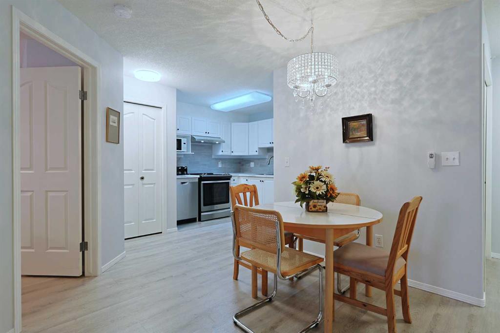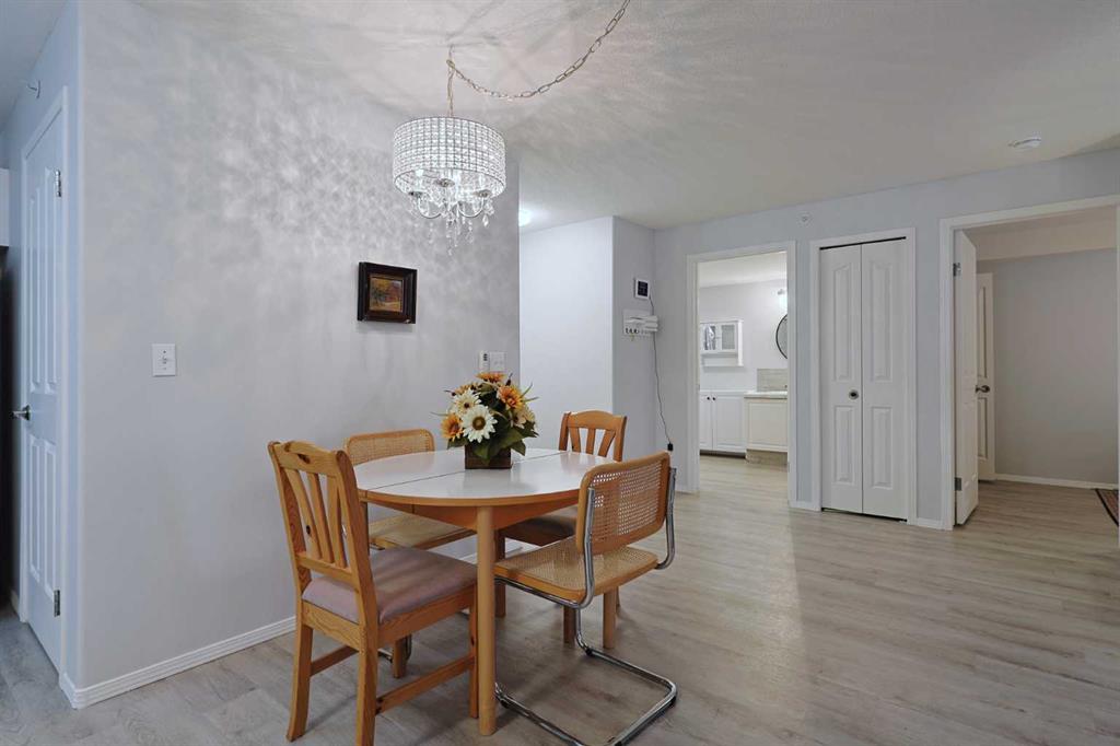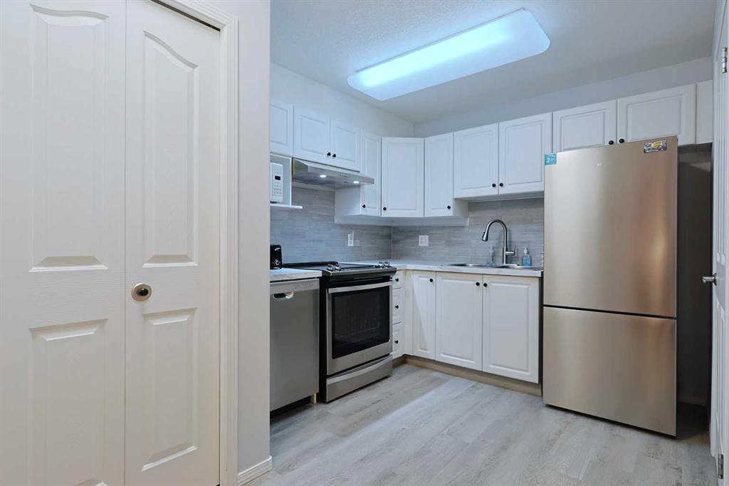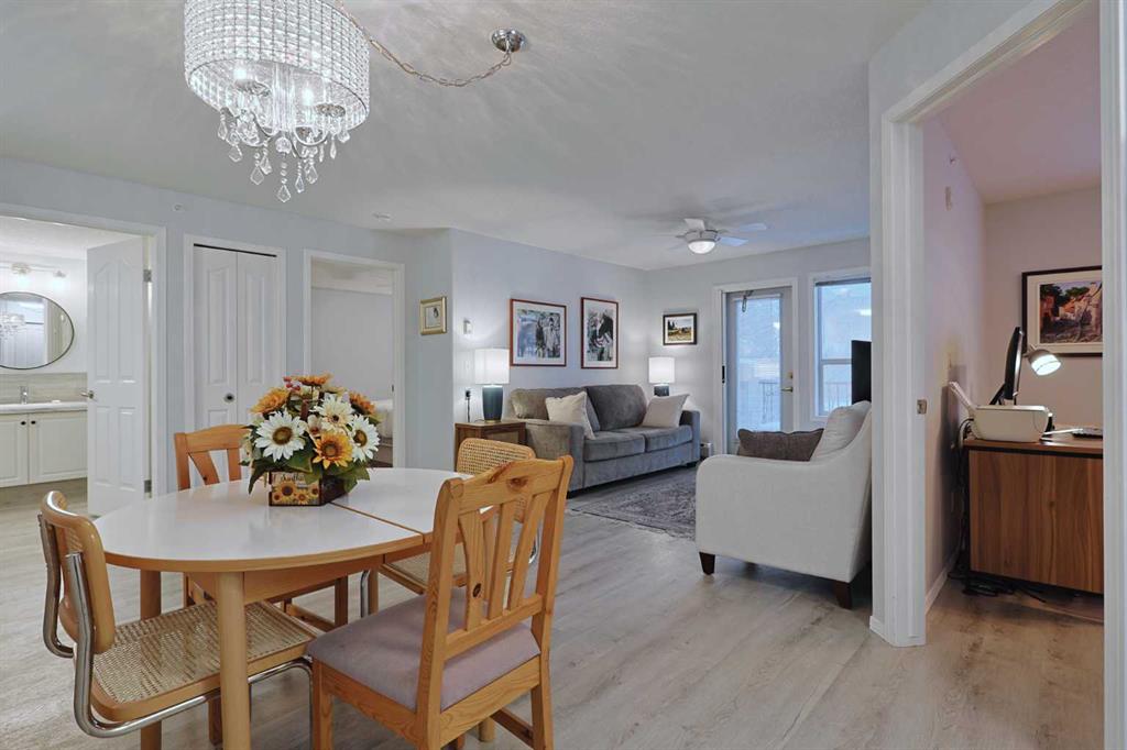 This is your chance to make your home in the exclusive LEGACY ESTATES condo project…this highly desirable 55+ complex offering adult maintenance-free living in the sought-after West Hills community of Patterson. This wonderful top floor 2 bedroom home has a fantastic open concept floorplan with upgraded vinyl plank floors, great-sized kitchen with stainless steel appliances, titled underground parking stall & top-notch residents’ amenities including fitness room, library & huge lounge/dining room for social gatherings. You’ll love the warm & inviting feel of this tastefully-appointed condo, with its cozy living room with garden doors to the Northeast-facing balcony, spacious dining room area & bright kitchen with walk-in pantry, white cabinets & the appliances include a Hisense fridge & new Whirlpool dishwasher. For added privacy, the bedrooms are situated on opposite sides of the condo & both feature great closet space. The large full bathroom has an oversized walk-in shower & loads of cabinet space. Convenient insuite laundry with space-saving Whirlpool washer/dryer. There’s also a portable window air conditioning unit for to keep you cool on those hot summer days & nights. Residents of LEGACY ESTATES have a wide range of amenities to enjoy…games room, fitness room, common laundry, library, hair salon, guest suite, visitor parking & the sensational dining/social room complete with fireplace. Monthly condo fees include heat, water-sewer & electricity. Tucked away at the end of this no-thru road surrounded by winding trails, across from an off-leash park & walking distance to neighbourhood shopping. Quick & easy access to Old Banff Coach Road means a quick commute to Westside Rec Centre & LRT, major retail centers & downtown.