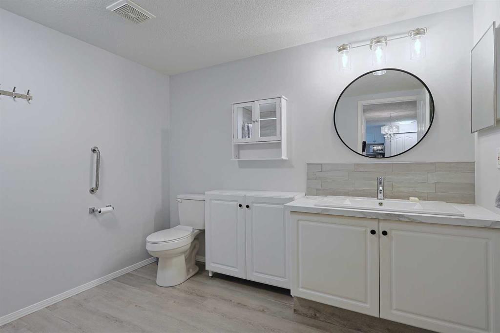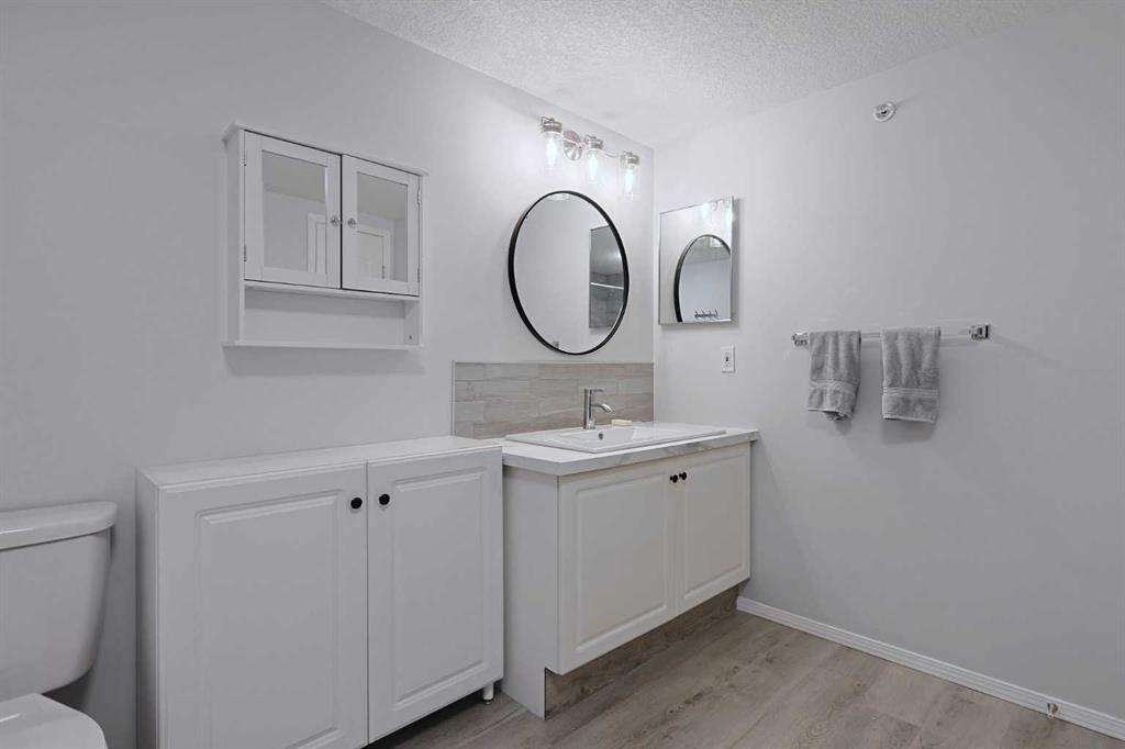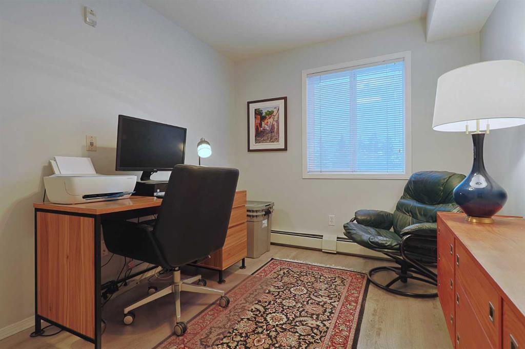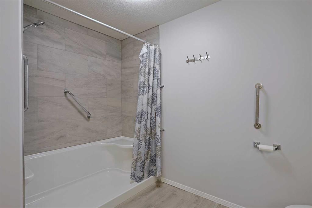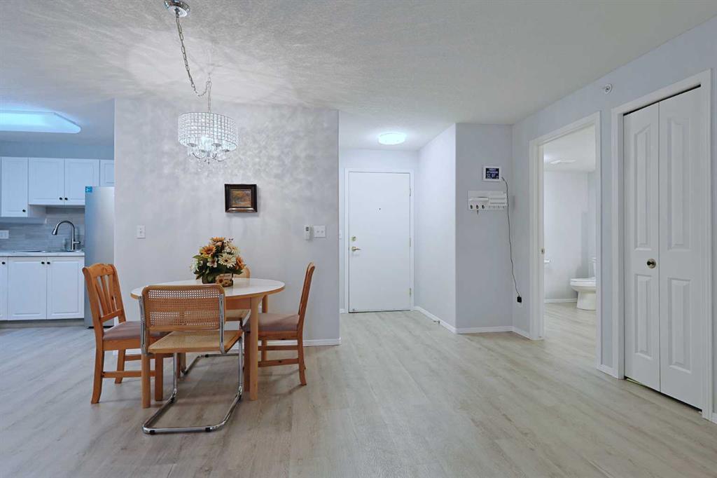 This is your chance to make your home in the exclusive LEGACY ESTATES condo project…this highly desirable 55+ complex offering adult maintenance-free living in the sought-after West Hills community of Patterson. This wonderful top floor 2 bedroom home has a fantastic open concept floorplan with upgraded vinyl plank floors, great-sized kitchen with stainless steel appliances, titled underground parking stall & top-notch residents’ amenities including fitness room, library & huge lounge/dining room for social gatherings. You’ll love the warm & inviting feel of this tastefully-appointed condo, with its cozy living room with garden doors to the Northeast-facing balcony, spacious dining room area & bright kitchen with walk-in pantry, white cabinets & the appliances include a Hisense fridge & new Whirlpool dishwasher. For added privacy, the bedrooms are situated on opposite sides of the condo & both feature great closet space. The large full bathroom has an oversized walk-in shower & loads of cabinet space. Convenient insuite laundry with space-saving Whirlpool washer/dryer. There’s also a portable window air conditioning unit for to keep you cool on those hot summer days & nights. Residents of LEGACY ESTATES have a wide range of amenities to enjoy…games room, fitness room, common laundry, library, hair salon, guest suite, visitor parking & the sensational dining/social room complete with fireplace. Monthly condo fees include heat, water-sewer & electricity. Tucked away at the end of this no-thru road surrounded by winding trails, across from an off-leash park & walking distance to neighbourhood shopping. Quick & easy access to Old Banff Coach Road means a quick commute to Westside Rec Centre & LRT, major retail centers & downtown.
