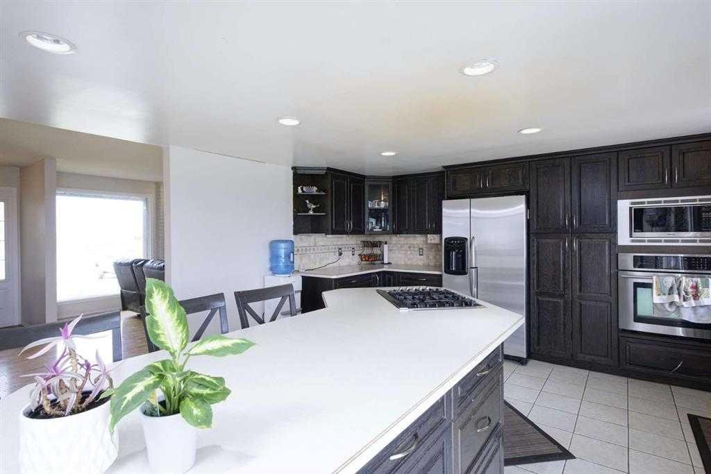 Rare BUSINESS LIVE-WORK ZONING (B-LWK)!!! Book your showing today at this 13.42 gorgeous acres home with 6 bedrooms, 3.5 bathrooms and a fully upgraded designer kitchen! Located just east of Calgary’s city limits, this home is a true paradise. The luxury of having land with a standing home is hard to come by these days! 13.42 acres zoned for business live-work means this is the entrepreneurs’ paradise! The massive property has an existing detached garage and a shop. There is plenty of room for truck, trailer and equipment storage and parking here. Acres of undeveloped land gives you the potential to grow your business. The property has an additional detached garage and a shop with storage and a workspace. The home is gorgeous itself, walk inside to a front foyer with closed closet space to drop your coats and shoes. The large west facing living room is warm and bright with two large pane windows and a back wall embellished from floor to ceiling with mirrors. This room features a center wall brick faced fireplace with a tiled hearth. This living room has so much space that it can easily fit 3 lazyboy style recliners, a center table and side tables. Move into the chef’s DREAM KITCHEN. This fully renovated kitchen is full of accents but you can’t miss the gorgeous extended center island with a gas cooktop, cupboard storage and barstool seating. The dark cabinets contrast the crisp white granite counters and stainless steel appliances. The dedicated dining room has a large single pane window with a view of the property. The kitchen and family room are connected through a doorway but share a unique wall cut out with bannister accents. The large family room is carpeted and warm. This room holds the 2nd tiled fireplace with a tile hearth! Enjoy relaxing with your family indoors or head outside to the big balcony through the sliding glass doors. Down the hall is a carpeted bedroom, 2pc bathroom and a laundry room. The laundry room and partial mudroom has shelving and wall coat hangers. Interior access to the garage is beside the laundry room. Upstairs are 4 bedrooms and 2 full bathrooms. The primary bedroom is massive, currently holds a king size bed, 2 night stands and two dressers and still has so much extra space. This room has a 3pc ensuite with a standalone shower, large mirror and a vanity with cupboard space. Access the private balcony through the primary bedroom. The 3 additional bedrooms on this upper level share a bright 4pc bathroom with a tub/shower combo. Downstairs is a basement suite (illegal) with a covered private exterior entrance. This level has 1 bedroom, a 3pc bathroom with a glass door shower, a kitchen, living room and home office. This kitchen is loaded with cabinetry and an open floor plan to the living room. The extended office has enough space for another sitting area and has access to storage. Come and see your new home today! Book your showing today.