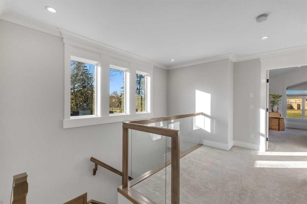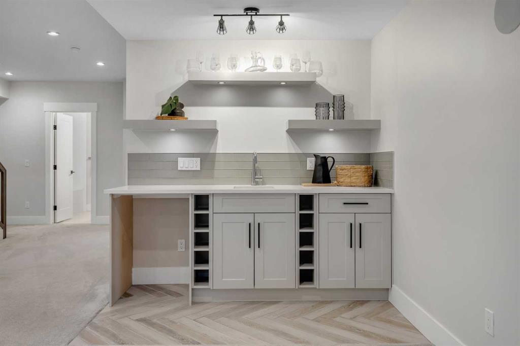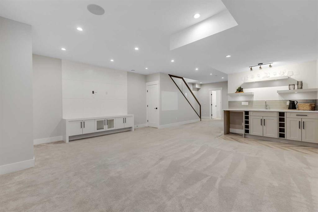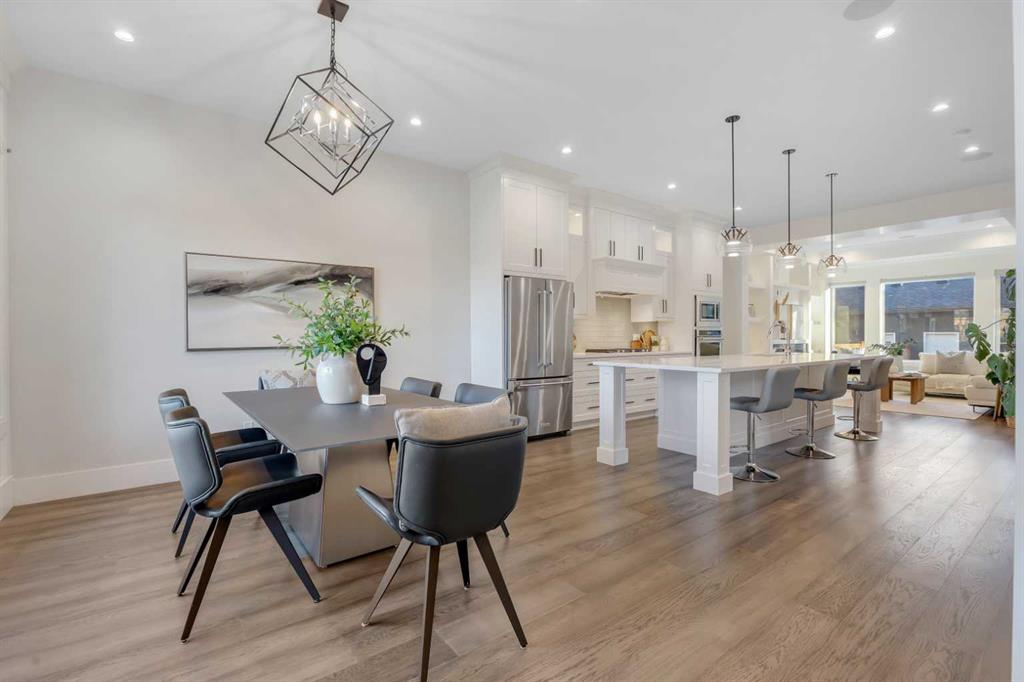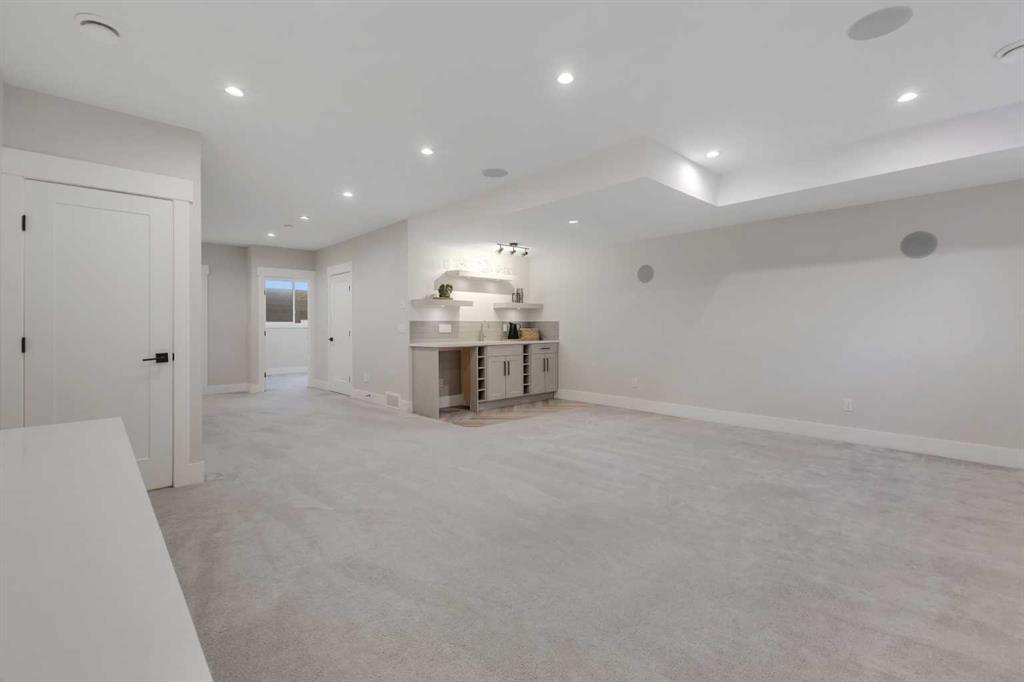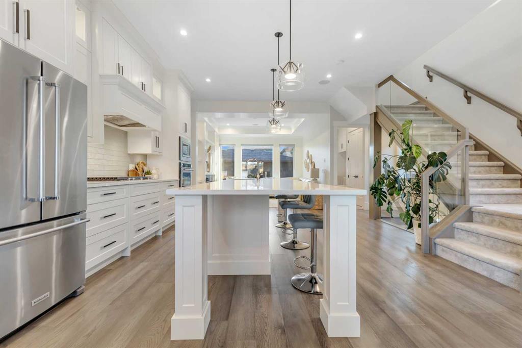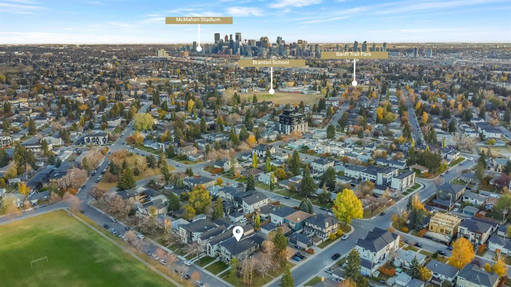 Sophisticated and thoughtful, this modern infill in BANFF TRAIL faces a GREEN SPACE and delivers everyday function wrapped in elevated style. With over 2,700 sq. ft. of living space, four bedrooms, a fully finished basement, and a double garage, it’s a home that balances upscale design with everyday practicality – ideal for busy professionals and growing families alike. Step inside and you’ll feel an immediate sense of light and space. The open main floor was made for both living and entertaining, blending clean lines with warm finishes that make the home feel grounded and welcoming. The front foyer opens into a bright front dining area that sits perfectly under a designer light fixture with wide windows that fill the room with sunlight. At the center, the kitchen takes the spotlight with its oversized island, full-height cabinetry, quartz countertops, and gas range. Every detail feels intentional – from the sleek subway backsplash to the deep drawers for storage. It’s a kitchen that works as hard as it looks good. Beyond the island, the living area brings everyone together with a feature fireplace framed by built-in shelving and oversized windows overlooking the backyard, with a high tray ceiling with built-in LED lighting for added ambience. The atmosphere is equal parts polished and comfortable, creating the kind of space where kids can play while the adults unwind. The rear mudroom adds real-life practicality with custom built-ins, hooks, and exterior access to the backyard and garage – keeping everything organized and out of sight. A discreet powder room sits off the hallway, rounding out the main floor. Upstairs, the layout keeps family life in mind. The primary suite spans the front of the home, creating a private retreat with soft light, a walk-in closet, and a spa-like ensuite featuring a freestanding soaker tub, dual vanities, and a glass-enclosed shower. Two additional bedrooms are bright and generous in size, each with good closet space. The upstairs laundry room makes day-to-day living simple, with lots of storage options and laundry sink. Downstairs extends the home’s versatility even further. A large rec room with built-in media centre and full wet bar offers the perfect setup for movie nights, weekend entertaining, or a play space that can evolve as kids grow. There’s also a fourth bedroom and full bathroom, ideal for guests, teenagers, or a quiet home office. Set in the heart of Banff Trail, this home sits in one of Calgary’s most connected inner-city communities. Families love the quick walk to schools, green spaces, and community parks, while professionals appreciate the easy access to the UofC, McMahon Stadium, Foothills Medical Centre, and SAIT. The Banff Trail LRT station is just minutes away, offering a quick train ride to downtown or the university. The neighbourhood’s quiet, tree-lined streets and established charm create a sense of calm right in the city, perfect for those who want space for family life without giving up convenience.