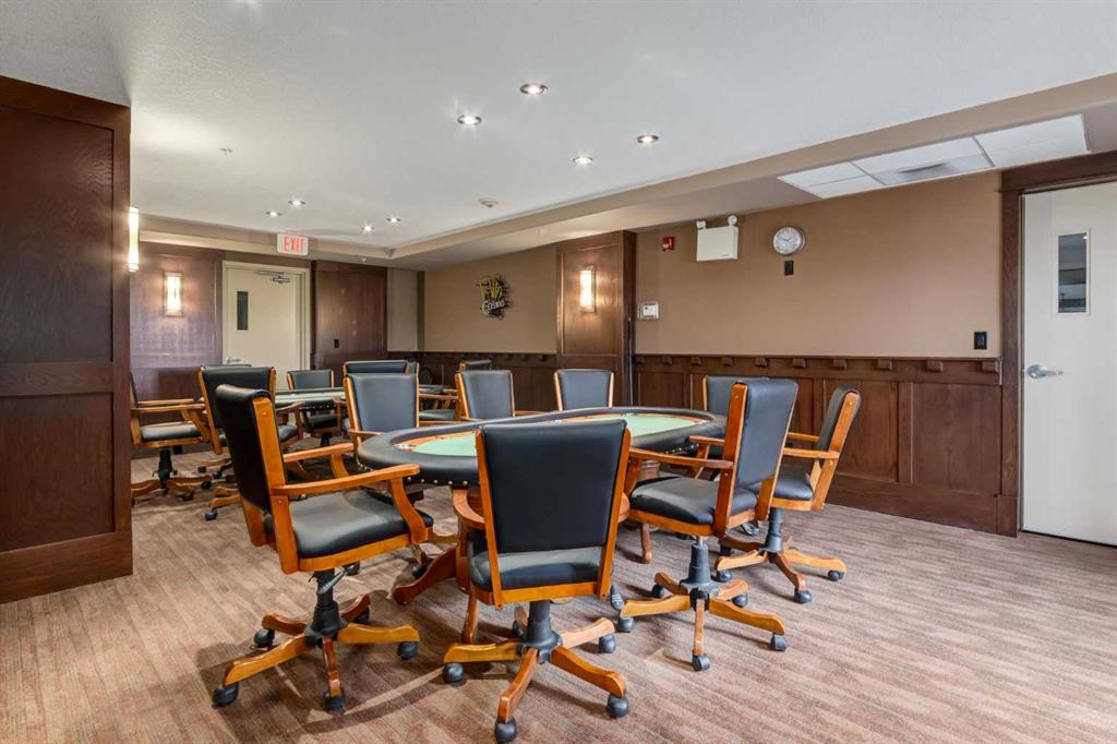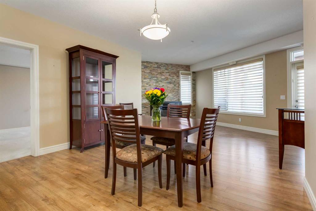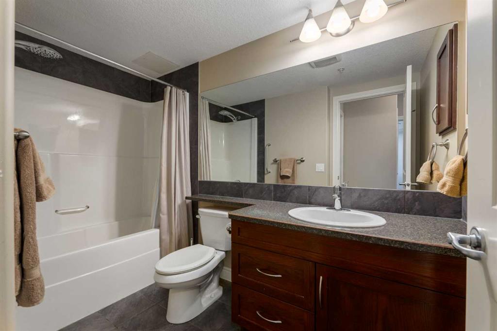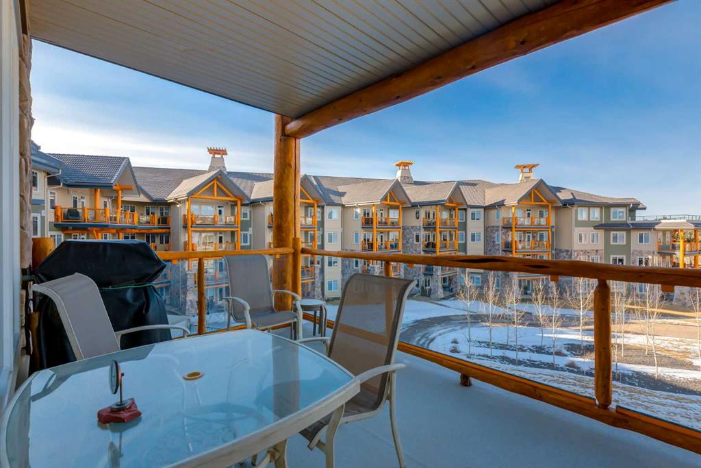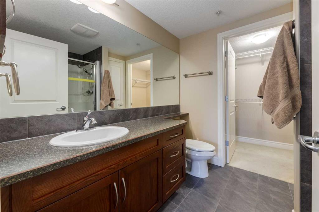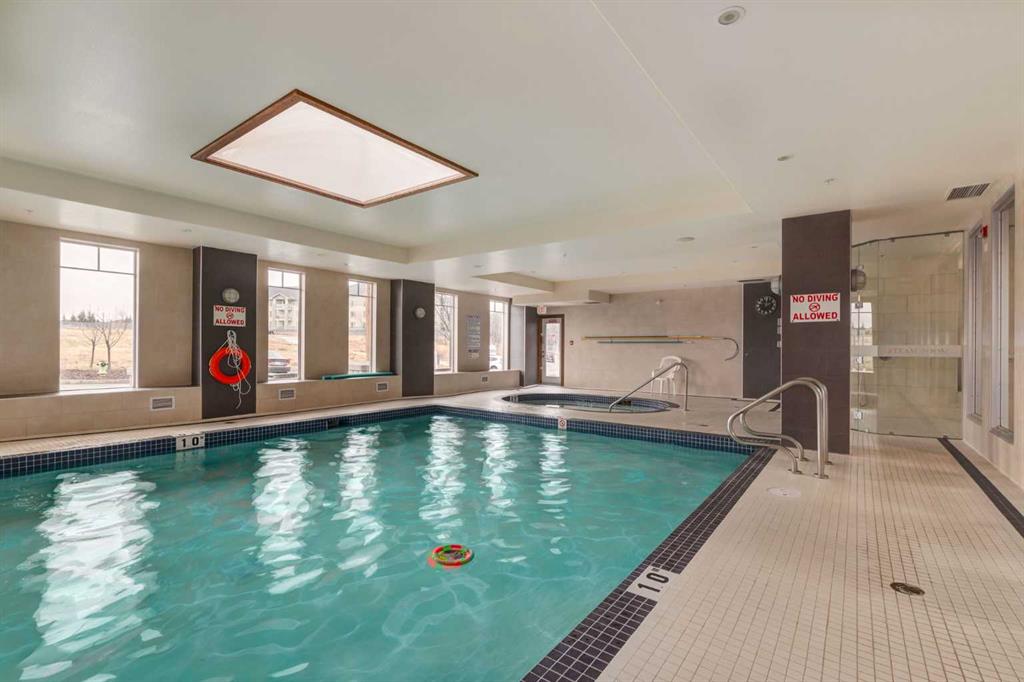 ENJOY outstanding amenities at SANDERSON RIDGE on Fish Creek Park! The first time on the market, this third floor suite is spacious and bright with a neutral decor. It offers TWO bedrooms, TWO bathrooms, TWO oversized titled parking stalls with TWO locked storage rooms on P2. The sleeping areas are separated by the open kitchen, living and dining area layout. The large u-shaped kitchen includes a walk-in pantry, granite counters, eating bar, tile floors and stainless appliances. The living and dining rooms feature vinyl plank flooring custom stone feature wall with electric fireplace. The primary bedroom could accommodate a king bed, and includes a convenient 3-piece ensuite and walk-in closet. The second bedroom is adjacent to a 4-piece main bath and ensuite laundry room. The huge balcony, with gas BBQ hook-up, provides a scenic view of Fish Creek Park, providing direct access to enjoy nature with miles of trails. This highly sought after complex in the Evergreen community offers residents an extensive range of amenities and services, ranging from an indoor pool, fitness studio, bowling alley, theatre, wine cellar, billiards, workshop, guest suites, car washes, and onsite property manager. The monthly condo fee of $761.74 includes heat, air conditioning and other utilities for year round comfort. The neighbourhood offers abundant choice for shopping and restaurants, plus quick access to Stoney Trail. Living at Sanderson Ridge is an opportunity to become part of 40+ community with a luxury lifestyle in an outstanding location.