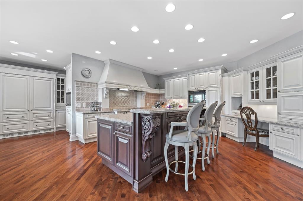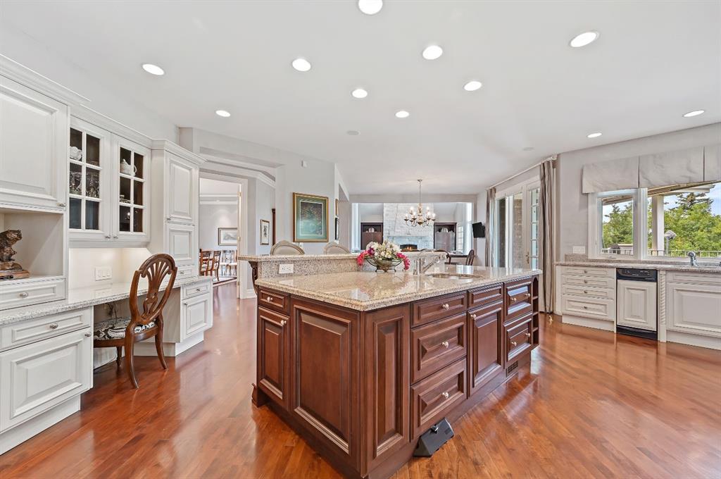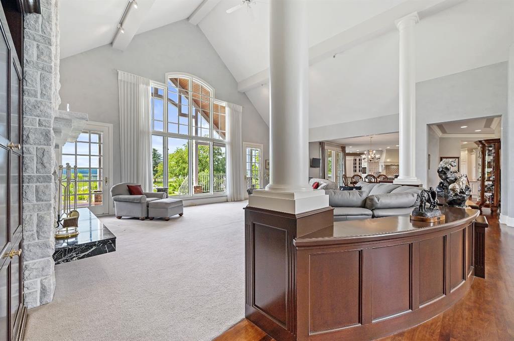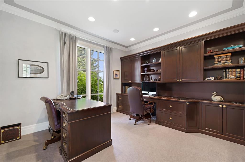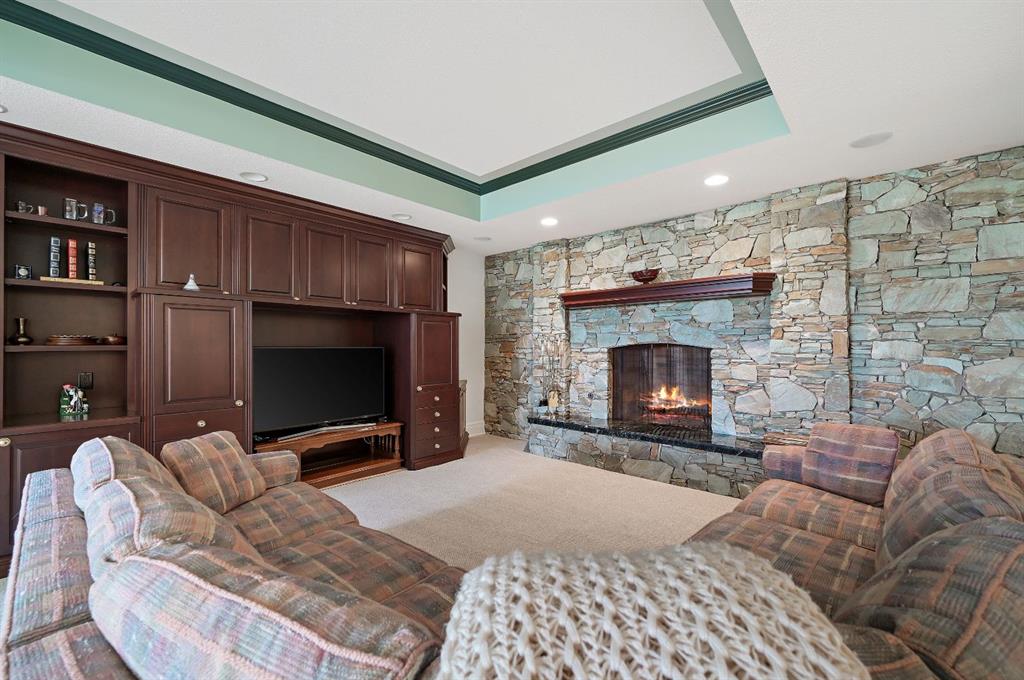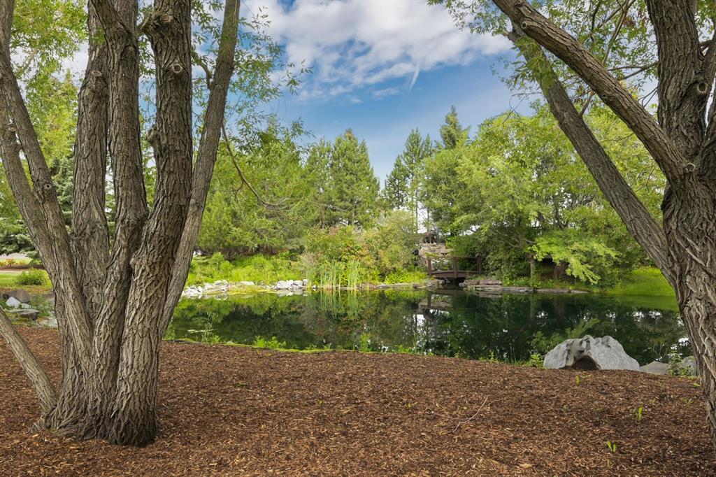 Set on 4.94 acres in the scenic beauty of Rural Foothills County, this impeccably maintained bungalow offers over 9,500 square feet of living space—providing the peace and privacy of a country estate just a short drive from Calgary’s downtown core. From the moment you arrive, the stately brick exterior, durable clay tile roof, and manicured landscaping hint at the exceptional quality within. A serene pond with a cascading waterfall sets a tranquil tone, while a beautifully landscaped courtyard adds to the property’s charm. Inside, a grand marble-floored entryway opens into the expansive living room, where a wood-burning fireplace and large west-facing windows frame spectacular mountain views. Rich hardwood floors flow throughout the main level, complementing the timeless design. The chef’s kitchen, crafted by Empire Kitchen and Bath, features Gaggenau and Sub-Zero appliances, custom cabinetry, and generous prep space. A den and an office with custom built-ins offer quiet retreats, while the massive primary bedroom boasts a walk-in closet and a spa-inspired ensuite with a soaker tub. Two additional bedrooms and a well-appointed mud/laundry room off the heated triple-car garage complete the main level. Outdoor living is elevated with a massive west-facing deck, complete with a built-in BBQ that steps down into a beautifully landscaped garden with stone walkway. The lower level includes a fully built-out legal nanny suite with kitchen, living room, and bedroom, thoughtfully tucked away for privacy. Additional spaces include a games room, billiards room, recreation area, exercise space, full wet bar, a fourth bedroom, and two more wood-burning fireplaces. An extraordinary 2,300 square feet RV garage/workshop offers endless possibilities for collectors, hobbyists, or large-scale projects. Blending elegance, functionality, and an enviable location, this estate is just minutes from Calgary’s city limits, Strathcona-Tweedsmuir School, the Calgary Polo Club, and Spruce Meadows—delivering a rare combination of luxury, privacy, and convenience.