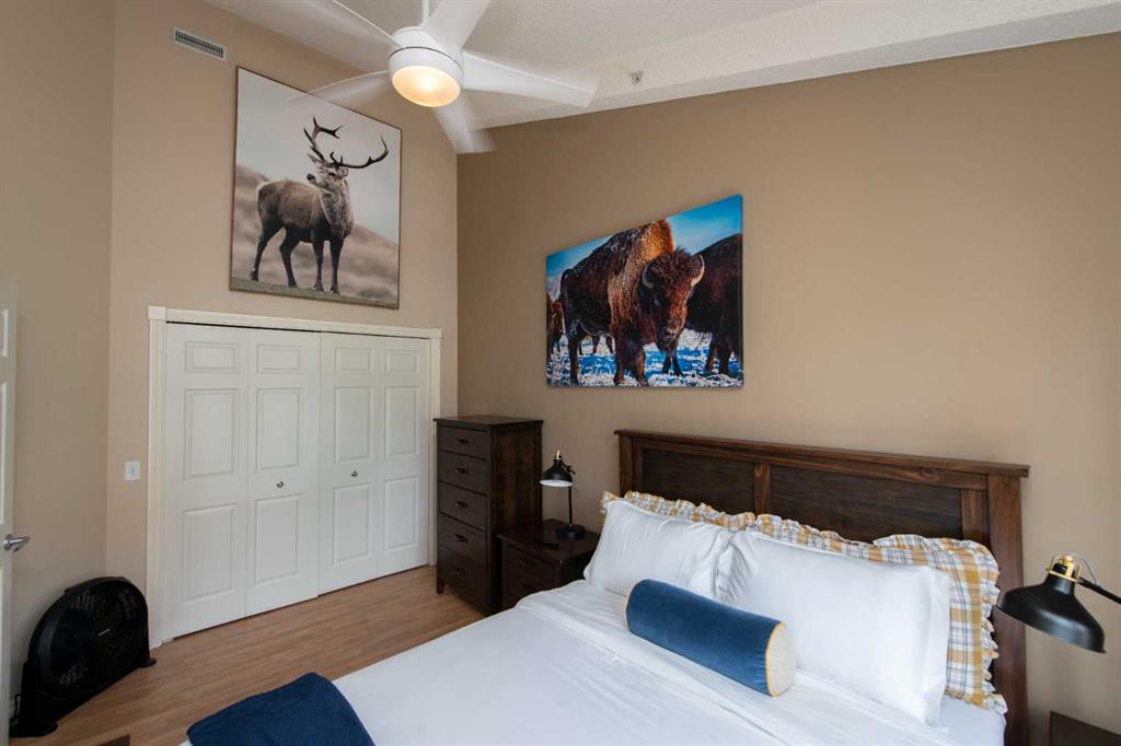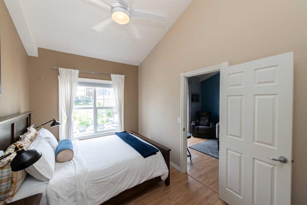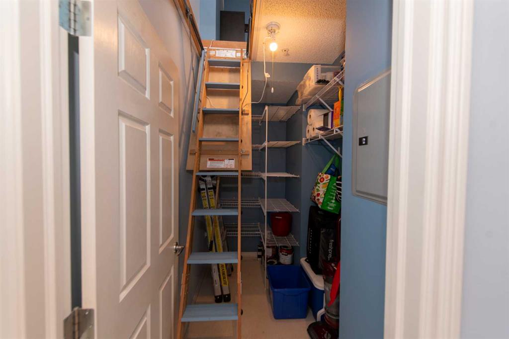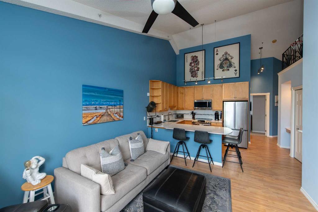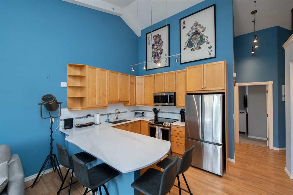 Style and character infuse the downtown lifestyle in this gorgeous condo at the Beltline’s Balmoral Manor. Vaulted ceilings welcome you inside, showcasing chic loft features and maximizing the natural light. The open layout begins with a large kitchen, where plentiful cabinet space and quartz counters are perfect for entertaining – with the Stampede grounds and other venues so close, you’re sure to be the pre-event hub. An eat up peninsula connects the space, and the living room centres around a cozy gas fireplace. Transom windows above the sliding glass door bring in tons of sunshine, and views from the balcony encompass the Calgary Tower. The primary bedroom is a serene oasis, with a whimsical ladder up to a loft alcove. The walk-in closet is a rare and coveted element as well. The second bedroom is generously proportioned and also includes big closets. A well-appointed bathroom offers storage and an extended vanity in a smart use of space. In fact, clever elements throughout this unit add so much functionality. A credenza in the hall can easily be used as extra prep area or a desk. In unit laundry is a perk, and the storage closet is perfectly set up with shelving for seasonal, cleaning, and pantry items. A hidden staircase here is another unique highlight, leading you up to a cute loft nook that overlooks the main living area. A secret library, maybe? Balmoral Manor is a well-managed, pet-friendly condo, with secure underground parking. The central location allows you to live a totally walkable lifestyle, with some of Calgary’s most popular restaurants and activities as well as some of the coolest hidden gems available within steps. Nearby, Sunterra Market offers groceries, and the c-train station makes getting around the city easy. There are several niche fitness facilities in walking distance, or the MNP Centre is just down the road with a full complement of exercise and recreation options. The river pathway system is also easily accessible, providing hours of outdoor enjoyment. Of course, being downtown also gives you a quick route out of town should you decide to go adventuring in any direction.