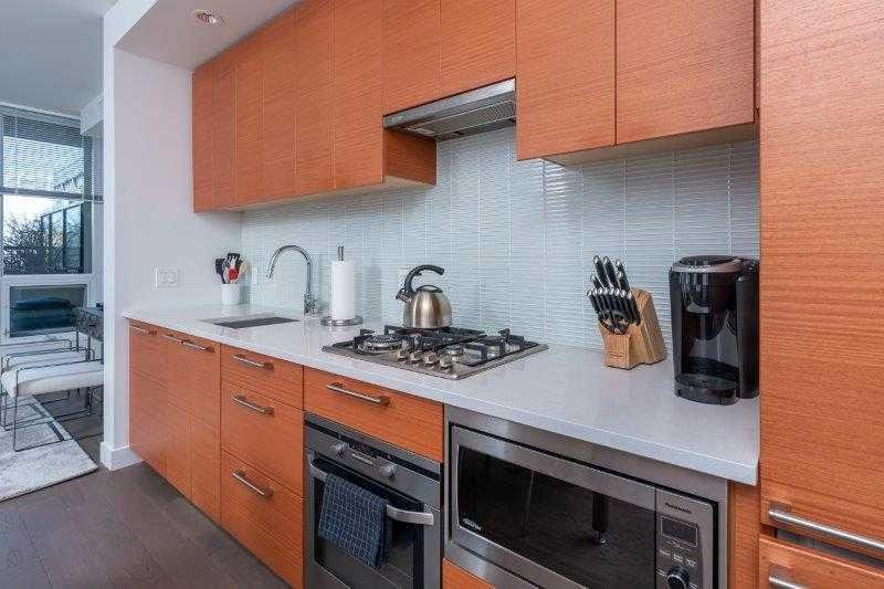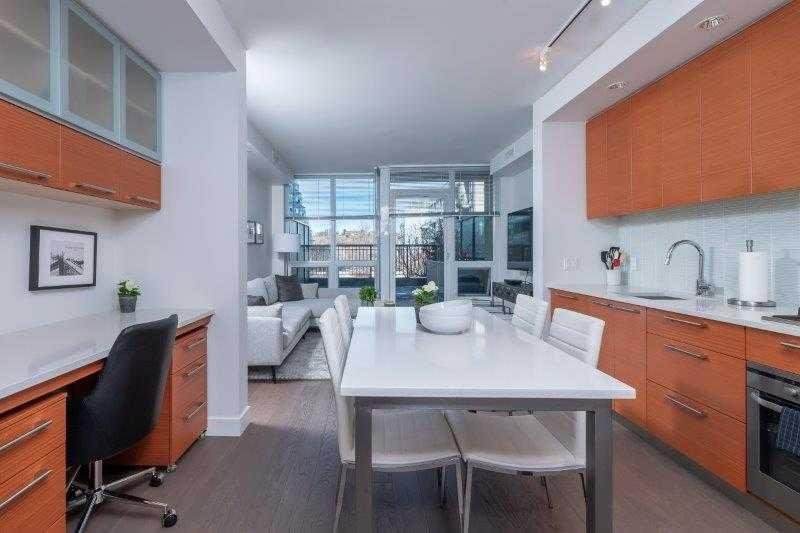 This executive condo is one of the best units to hit the market in the Waterfront in years. Perfectly positioned in a PRIME COURTYARD LOCATION , this unit showcases a spectacular 250 SQ.FT private OUTDOOR PATIO — an entertainer’s dream and a standout feature RARELY AVAILABLE in the building. Inside, the home offers a beautifully upgraded interior designed for modern urban living. The kitchen features stainless steel appliances, a gas cooktop, QUARTZ countertops, and integrated panel-front refrigerator and dishwasher. The open dining area includes a custom quartz dining table, flowing seamlessly into the bright and spacious living room with large windows overlooking the courtyard. The primary bedroom includes a BUILT-IN bedroom suite, and the spacious bathroom offers an oversized walk-in shower. A quartz-finished home management centre provides the perfect workspace or tech station, and the convenience of in-suite laundry adds to the comfort. NEW VINYL PLANK FLOORS throughout and AIR CONDITIONING for the summer months! Additional features include a HEATED UNDERGROUND parking stall and SECURE same-floor STORAGE (2nd floor, not in the parkade), offering convenience and peace of mind.