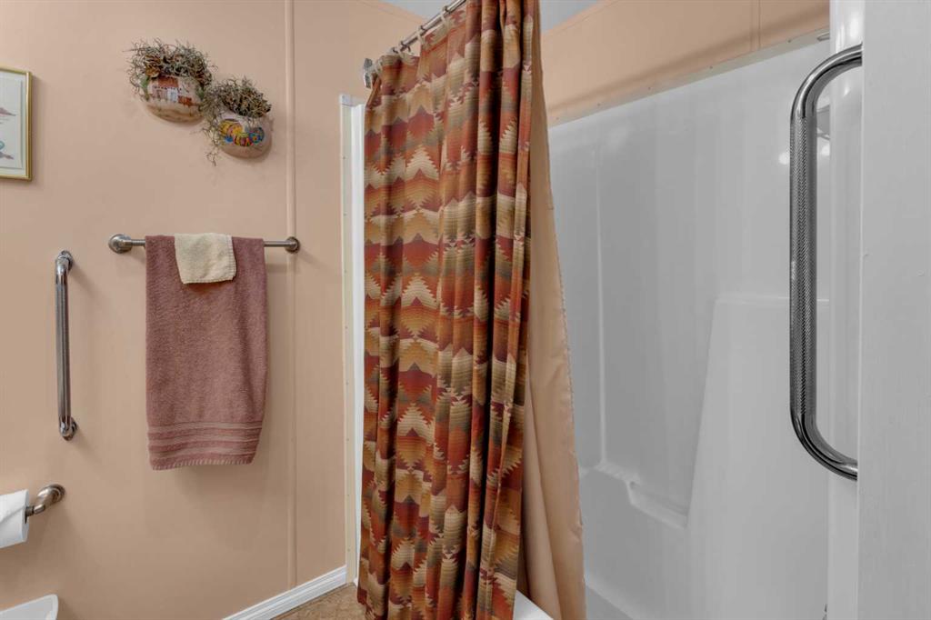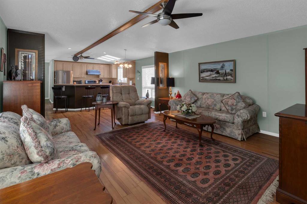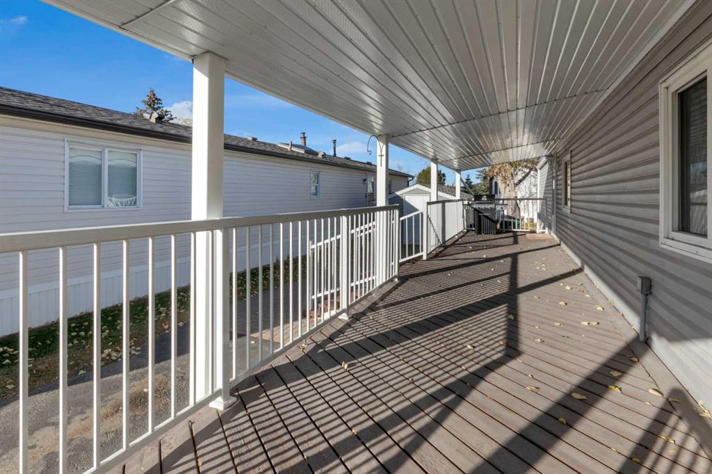 Welcome to this great mobile home in Watergrove, the premiere 45+ mobile home park in Calgary, boasting a fabulous clubhouse, outdoor pool, sauna, recreation room/party room, pool tables, and enough activities to keep you busy every single day! This 3 bed, 2 bath home with central A/C has been lovingly cared for and it shows. The spacious kitchen has a large breakfast bar, a generous amount of cabinetry, stainless appliances, a large dining area, and a skylight to bring in the sunshine. The living room easily accommodates a variety of furniture options and is accented by a vaulted beamed ceiling. This open floorplan offers two bedrooms and a full bath at this end of the home, with the large primary bedroom at the opposite end. The primary bedroom has a 4 pce ensuite and a large walk-in closet. This home has had many upgrades throughout the years as follows: 2016 hot water tank, new chimney replacement, 2017 new siding, skirting, asphalt application on the driveway and relevelled, 2018 Removal of Poly B to Pex waterlines, and a brick pathway to the shed. 2019 roof upgrade (repair and replace new shingles as required), skylights, deck expansion with roof addition. This home has modern touches with wide-plank laminate flooring, a spacious foyer, and a large living room window to bring in natural light, giving a bright, spacious feel. Located in a great location, with lovely curb appeal, close to the greenspace, and in an amenity filled community – this home is just waiting for its new owner. Nearby Crowfoot Centre provides every amenity you can imagine. Immediate possession available. Lot fee of $860 includes water/sewer, garbage pickup and recycling. Lease and pet approval is required.