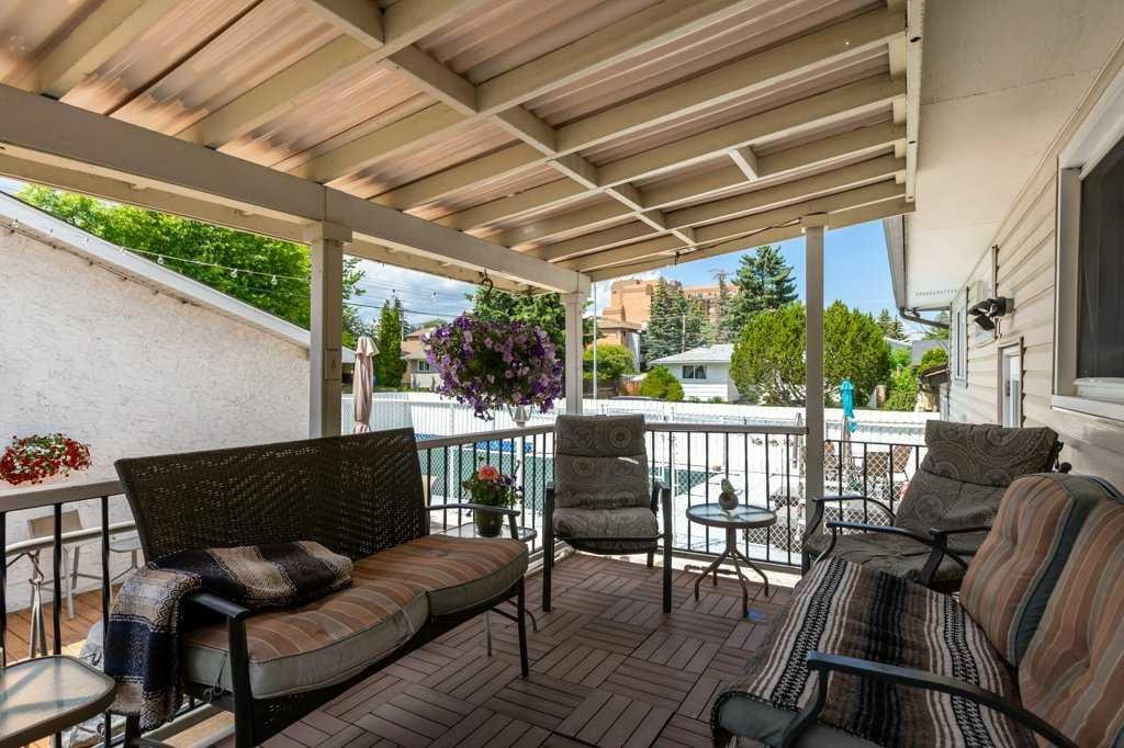 Ever dreamed of enjoying summer in your own backyard oasis, complete with a heated pool perfect for entertaining friends and family. This home is amazing value! Sitting on a large corner lot and has fantastic curb appeal with beautiful landscaping, loved by the same family since 1998. Inside, the main floor is bright and open with a spacious living room, dining area, and a stunning white kitchen with newer stainless steel appliances. The island features pendant lighting, and a door from the kitchen leads directly to the covered, rear deck overlooking the pool. The living room has large vinyl windows that fill the space with natural morning light. Down the hall is a second rear exit to the west facing backyard, a renovated 4-piece bathroom and two bedrooms including a generous primary retreat that was formerly two bedrooms and could easily be converted back if desired. The main floor features hardwood flooring in the living area, tile in the kitchen and laminate in the bedrooms. The basement has been updated with a spacious recreation room, vinyl plank flooring, large vinyl windows and a stylish wet bar. There’s also a front-facing bedroom, a 3-piece bathroom, and plenty of storage. The pool slopes to a max depth of 9 feet and features a diving board, thermostat-controlled temperature, a brand new pump and chlorinator installed in 2024, summer solar blanket on a roller, removable winter hard cover and a liner replaced in 2021. It is also fully fenced in, keeping children and pets safe while you relax or entertain. A dedicated pool house adds convenience with a full 3-piece bathroom, making it easy to host summer gatherings without ever needing to step inside. The home also features a heated, double detached garage. Additional updates include the roof (2020), high efficiency furnace, vinyl windows, A/C service and more. Located in the well-established community of Acadia, this home is just minutes from schools, parks, playgrounds, Deerfoot Trail, Southcentre Mall and a variety of local shops, restaurants and amenities. This is the perfect place to enjoy the best of summer living and year-round comfort. Check out the 3D Virtual Tour and book your showing today!