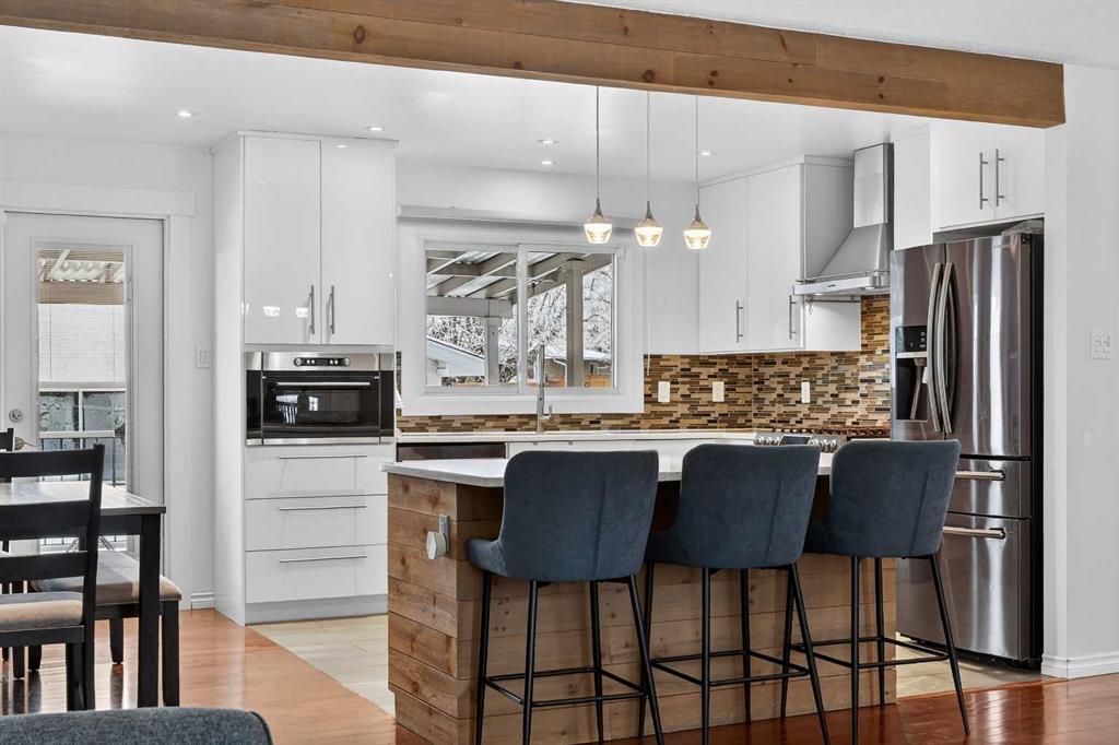 Nestled on a large corner lot with excellent curb appeal, this well-cared for detached home in Acadia showcases thoughtful updates throughout. A sun-filled open concept main floor brings together the living room, dining area, and kitchen, complete with newer stainless steel appliances and an oversized island—perfect for everyday living and entertaining. Step outside to a covered rear deck, an ideal spot for enjoying sunny summer days overlooking the pool. The main level also highlights an upgraded 4-piece family bathroom with ample storage and two bedrooms. The oversized primary bedroom easily accommodates king-size furniture and offers plenty of room for a comfortable sitting area, with the flexibility to convert it back to a three-bedroom layout if an additional main-floor bedroom is desired. A pantry, additional storage closet, and separate rear entrance offer practical space and easy storage for winter gear. A fully developed basement highlights a large recreation room with vinyl plank flooring, oversized windows, plus a wet bar – ideal for casual entertaining. Completing the lower level is a third bedroom, 3-piece bathroom, laundry, and a large storage room. A sunny rear yard offers a private covered deck, plenty of room to unwind, plus a fabulous swimming pool for summer fun! A double detached garage allows easy winter parking and adds additional convenient storage. This home has been lovingly cared for over the years and is ideally located in the established community of Acadia, just minutes from schools, parks, playgrounds, Southcentre Mall, transit, Deerfoot Trail, and local amenities. A fantastic opportunity to enjoy comfortable living in a prime location. Don’t miss the opportunity to make this home yours!