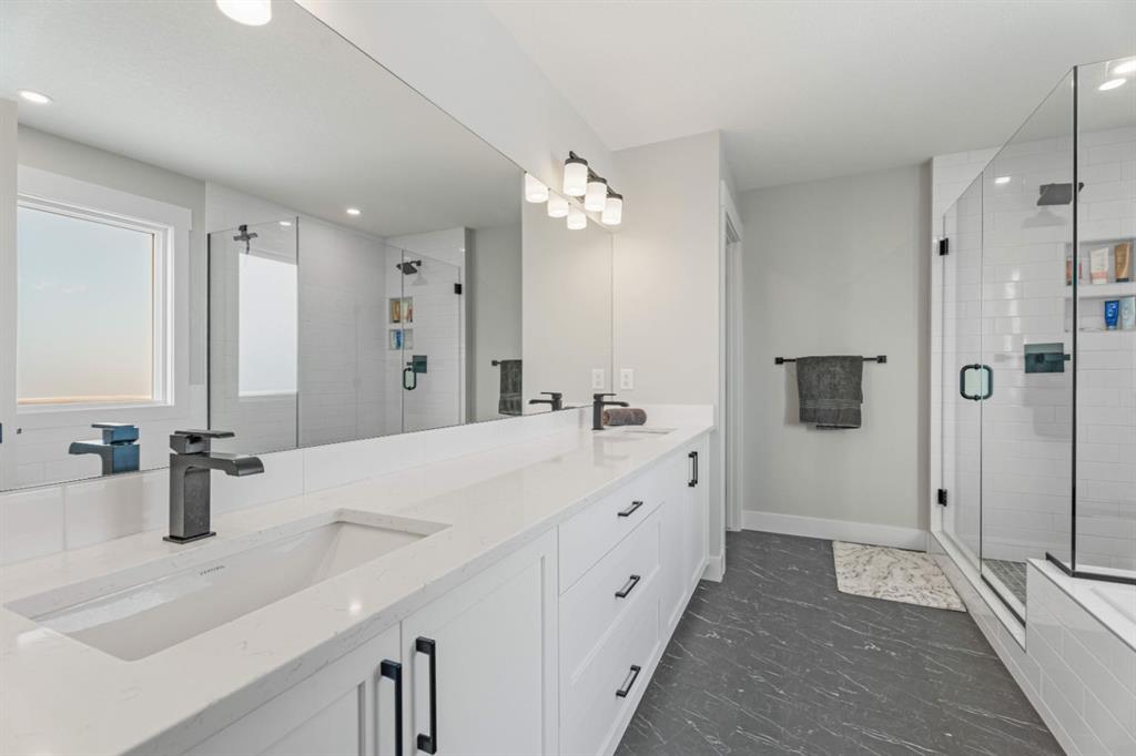 Nestled in family-friendly Chelsea Park, this stunning Anthem built home backs onto beautiful park space and a serene pond—your private oasis with no rear neighbors. Close to amenities and a future school, you’ll enjoy the perfect balance of tranquility and convenience. The contemporary design with striking mountain blue siding, stone accents, and triple attached garage sets this home apart. Step through the bright, wide entry and discover over $108,000 in premium builder upgrades. Nine-foot ceilings on the main floor create an airy feel. Rich grey walls contrast beautifully with crisp white trim and luxury vinyl plank flooring. A private den with elegant French doors offers the perfect home office. The open-concept kitchen, dining room, and great room are designed for today’s lifestyle. The show-stopping gourmet kitchen features a massive waterfall-edge island with brown cabinetry complemented by crisp white upper cabinets. The chef will love the gas cooktop, upgraded built-in wall oven and microwave in a stunning tower cabinet, French door fridge with WiFi, and large walk-in pantry. Custom tile backsplash extends to the ceiling, complementing beautiful quartz countertops. All black hardware, fixtures, and lighting add that executive touch. The spacious dining room showcases three large picture windows flooding the space with natural light and flows into the great room with a linear fireplace featuring floor-to-ceiling tile and dramatic black mantle. Step through to your extended deck with spectacular pond and park views. A stairway leads to the backyard and generous concrete patio—perfect for entertaining. Multiple gas line hookups mean you’re ready for outdoor cooking year-round. Upstairs find your large primary bedroom—perfect for a king-sized bed—with generous walk-in closet and spa-inspired five-piece ensuite featuring heated floors, fully tiled walk-in shower with frameless glass, and soaker tub—all with executive black fixtures and quartz counters. Two additional generous bedrooms with walk-in closets share a five-piece bathroom. A vaulted bonus room with oversized picture window and upper-level laundry complete this floor. The walkout basement with 9-foot ceilings is roughed-in—bathroom plumbing ready, electrical outlets in place. The triple-insulated garage with gas rough-in offers workspace potential. Every detail matters: triple-pane windows, custom blind package, upgraded stacked kitchen cabinetry, executive black plumbing and lighting, luxury flooring, and quartz countertops throughout. More than just a home, this is where memories are made. Check out our virtual tour—you will not be disappointed. Welcome home.