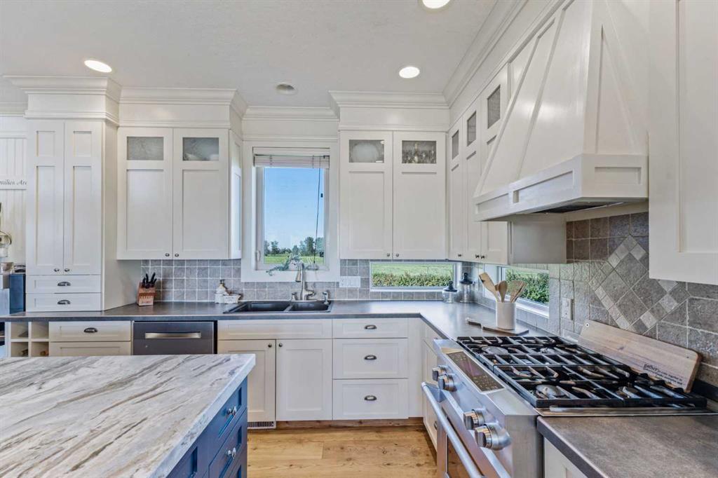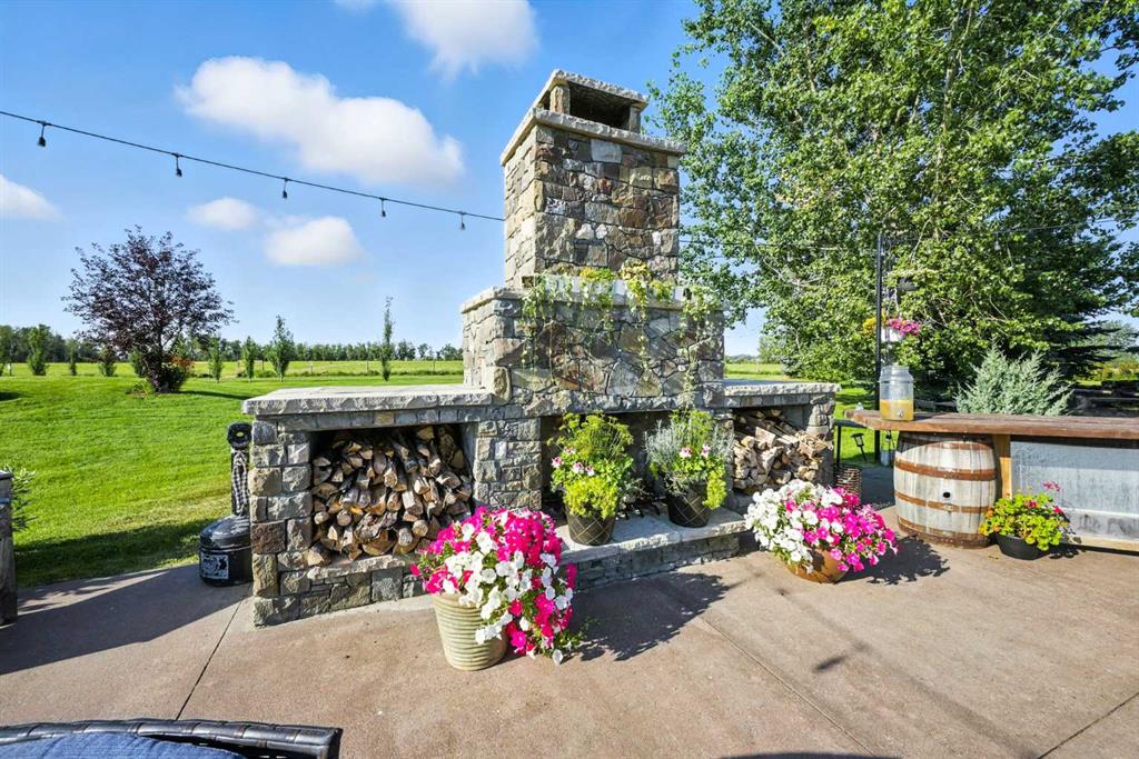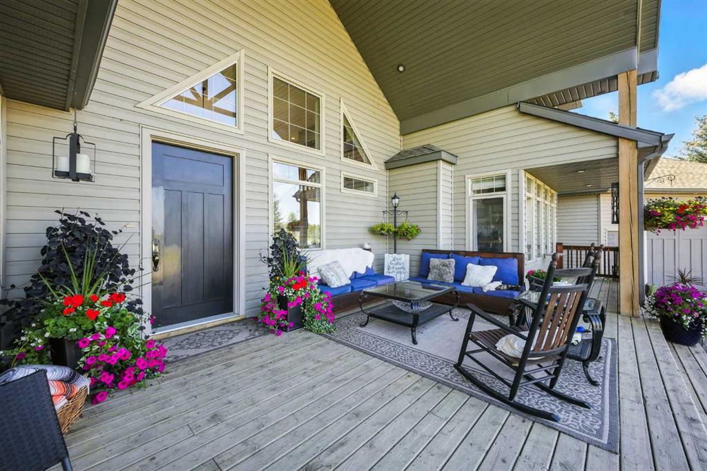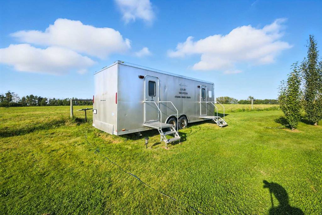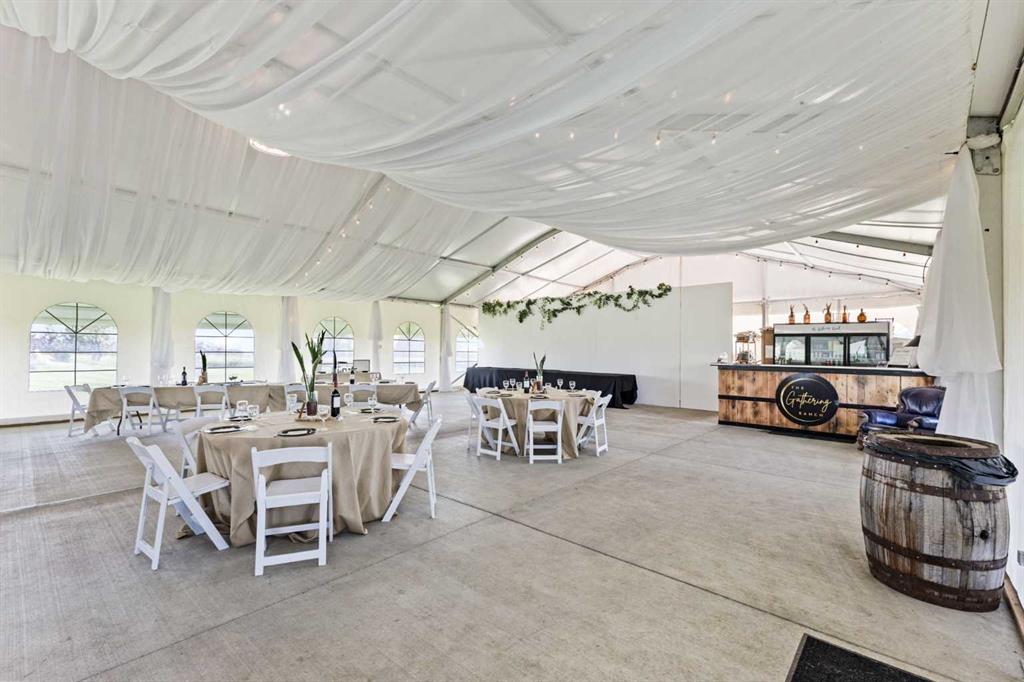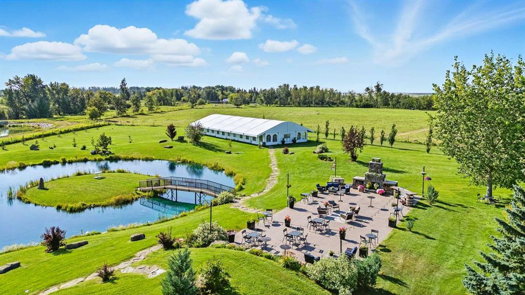 ~ Don’t miss the opportunity to own such a rare gem as this! ~ This exceptional 28+ acre estate just 7 km from Strathmore and under 45 minutes from Calgary offers luxury living and income potential. With a fully developed 3,700+ sq ft estate home and an established wedding venue, the opportunities are unmatched. The beautifully designed home features wraparound decks on three sides, a grand living room with a 20-ft wood-burning fireplace and west-facing floor-to-ceiling windows, an open-concept chef’s kitchen with an 8-ft island, granite countertops, custom cabinetry, huge walk-through pantry, and a spacious mudroom connecting to an oversized attached garage. The main floor also includes a laundry room, 2-piece bath, and a luxurious primary suite with a walk-through closet, custom built-ins, 4-piece ensuite with in-floor heat, and built-in tub overlooking the Rocky Mountains. Not to mention the private access to the hot tub and south deck, along with an adjoining nursery/den. Upstairs features two bedrooms with a Jack & Jill 6-piece bath, a den with views of Eagle Lake, and a cozy library nook. The lower level offers three more bedrooms (one with custom bunk and Murphy beds), a 5-piece bath with steam shower, large rec room, and in-floor heating throughout. The exterior is finished with Hardie Board siding, and the professionally landscaped grounds include a pond with waterfall and island, rock pathways, mature trees, underground sprinklers, a detached double garage, small horse corral and shelter, and secure electric gate access. The property also includes a 40’x99′ commercial event tent with concrete floor, bar, and prep area, seating for 150, a wedding ceremony space with antique doors and custom benches, and a camping area with fire pits—making it a turnkey wedding venue with negotiable equipment and supplies. This property is truly one you cannot pass up—connect with your AWESOME REALTOR® & book a showing today!