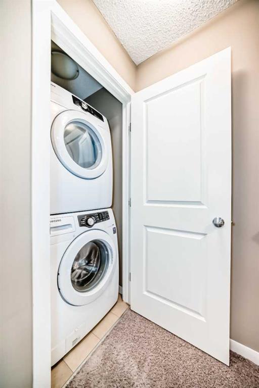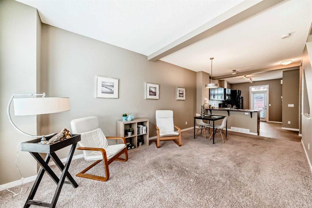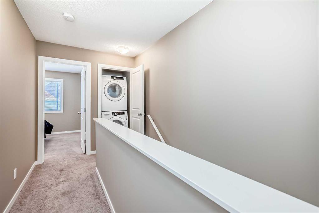 YOUR NEW HOME … is located in one of Calgary’s most sought after family friendly communities, this 2 storey townhome offers the perfect blend of style, comfort, and convenience. Steps from schools, playgrounds, daycare, and the New Brighton Athletic Park, future LRT, South Campus. You will also enjoy quick access to 130 ave shops, McKenzie Townes High Street and access to major routes like Stoney, Deerfoot trail and 52 st. Inside, oversized windows and tall ceilings fill the open concept layout with natural light. The kitchen features upgraded wood cabinetry, black appliances, a classic tile backsplash, and a large eating bar-ideal for both everyday living and entertaining. The main floor also includes a spacious dining area, inviting living room and convenient powder room. Upstairs, you’ll find two large primary bedrooms, each with their own private ensuites and walk in closets – perfect for families, professionals or room mates. They are separated at each end of the hall, giving lots of privacy. Your laundry facilities are also on this floor, for the utmost of convenience. Additional highlights include a lower deck, an upper deck off of the kitchen with a gas hook up, a single attached garage and a second covered parking pad. The grounds are meticulously maintained and pride of ownership is exuded through the entire complex. Located in the middle of the complex and far away from 52st noise, the Low condo fees add to another reason to love living here!