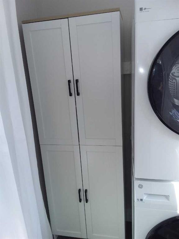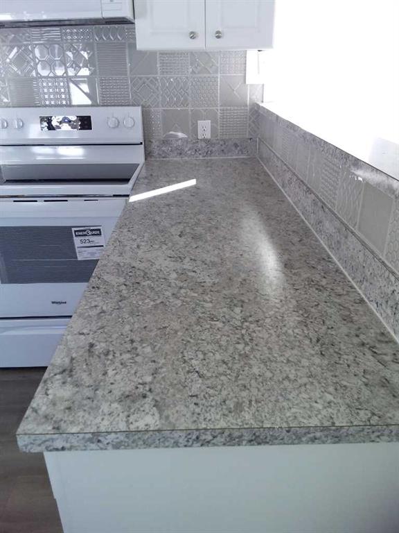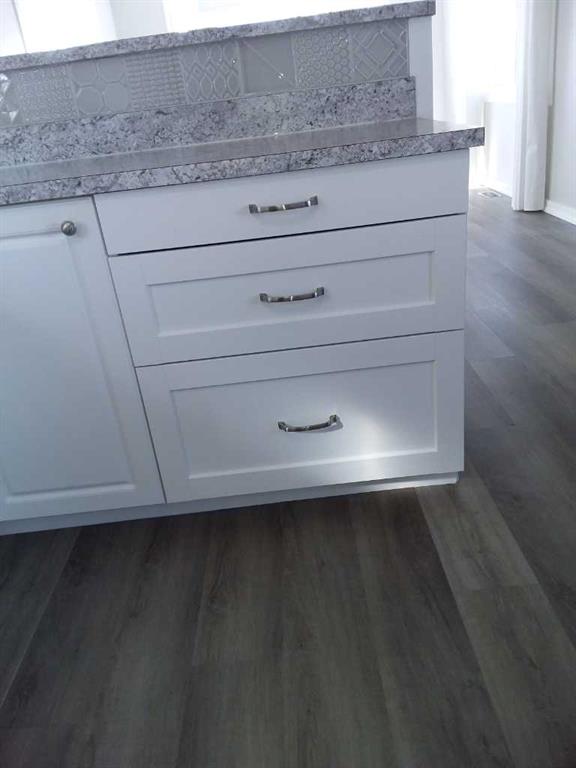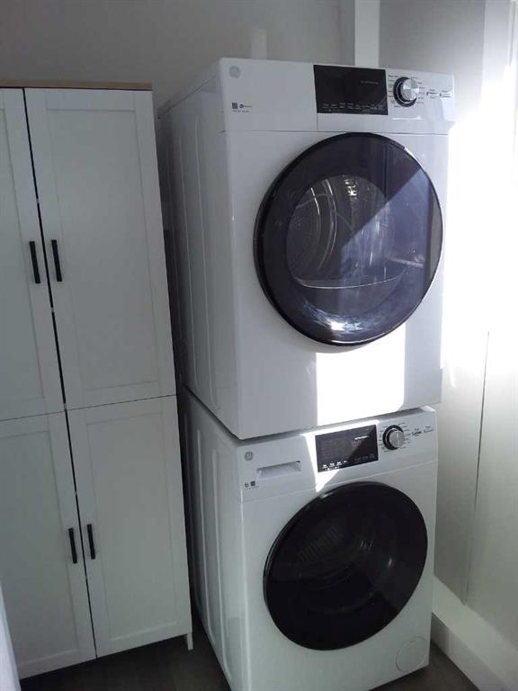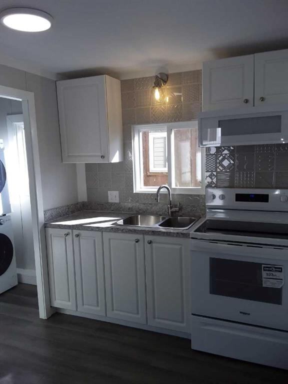 Affordable living at its best! Available immediately! This 2 bedroom, 1 bath beauty has been refurbished with stylish vinyl plank flooring throughout and completely repainted. The bright kitchen has modern white cabinets, a huge peninsula and a stylish, modern backsplash. The home includes all new appliances, (with warranties) including a stacked washer / dryer set and microwave / hood fan with direct ventilation. The bedrooms are a good size, with double closets in each. New light fixtures throughout, including LED lights and bulbs. Kitchen and bath fixtures are new and upgraded. Every inch of this home is clean and fresh! The exterior has been clad in maintenance free vinyl siding plus a aluminum soffits. Double paned vinyl windows with new drapes add to the comfort. This home is on a large, level lot that is partially fenced and includes a garden shed on a new base. The parking pad in front has space for 2 vehicles. Listing agent is the current owner.