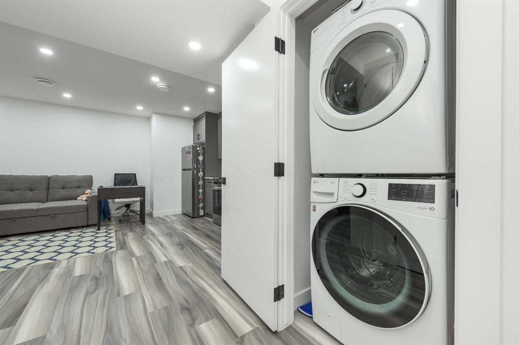 The fully developed 1-bedroom basement legal suite provides excellent income potential, complete with a living area, full bathroom, bedroom, and a laundry space.