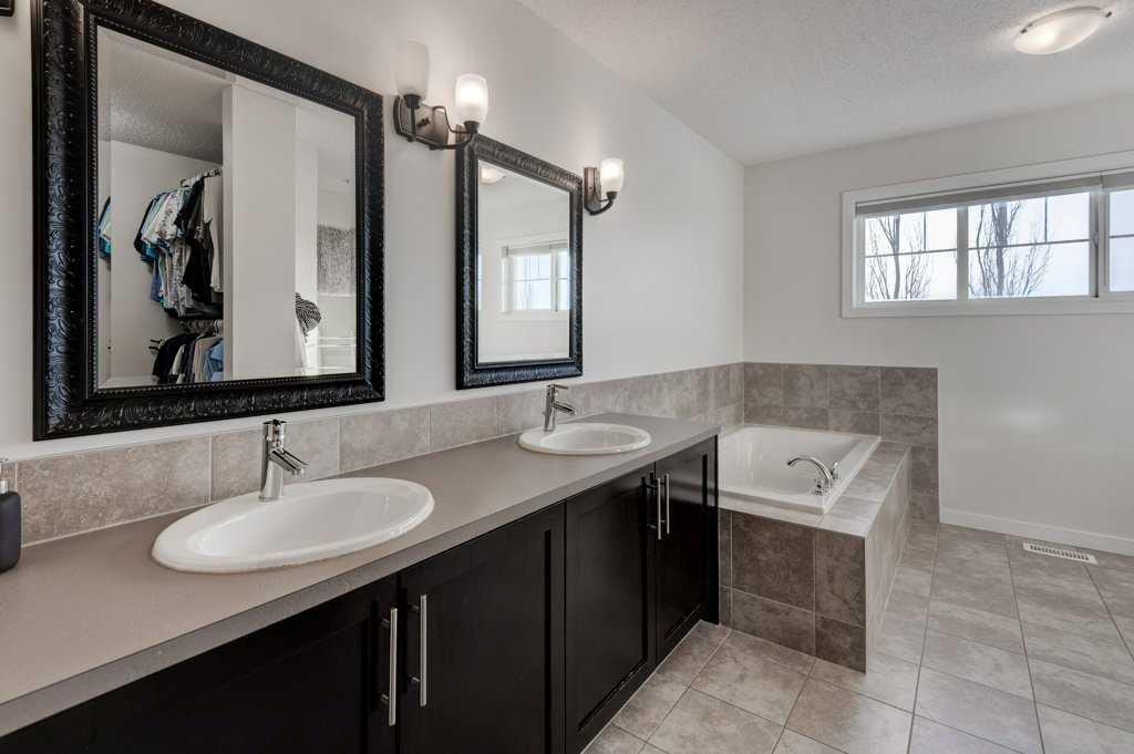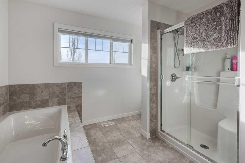 Inside, the home offers 4 bedrooms and 3.5 bathrooms, thoughtfully designed for both comfort and functionality. The primary suite is a true retreat, featuring a spacious layout, walk-in closet, and a luxurious 5-piece ensuite with dual vanities and a relaxing soaker tub. Two additional generously sized bedrooms upstairs each include their own walk-in closets. The upper level is completed by a bright and spacious bonus room with built-in storage and a dedicated upper laundry room.