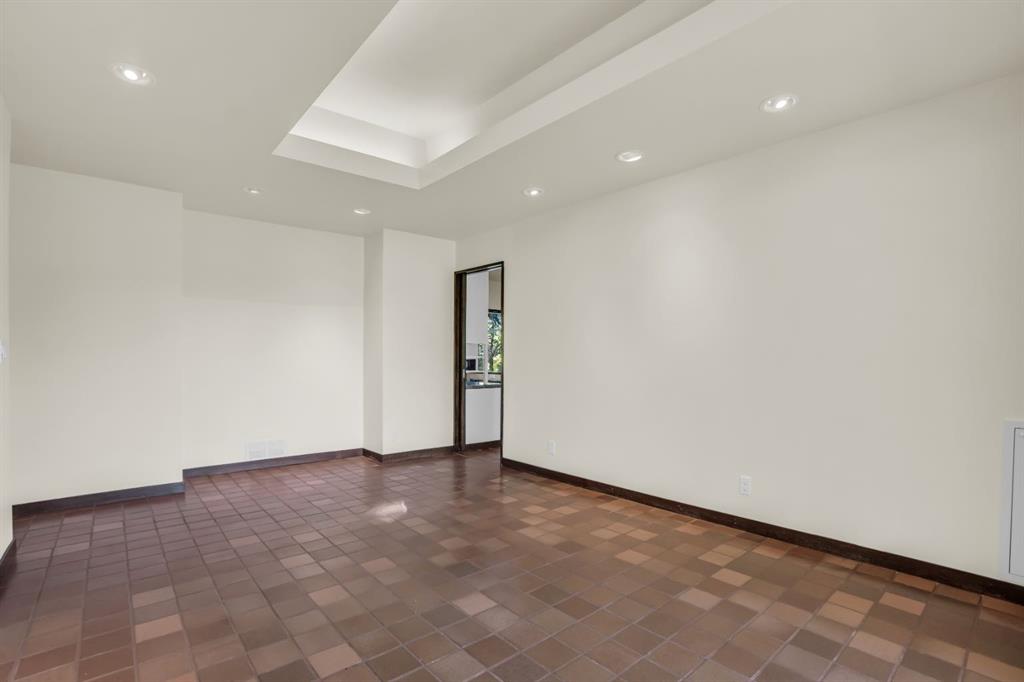 Warm terracotta tile and light oak hardwood flow through the main level. The spacious formal dining room, with its elegant tray ceiling, while the