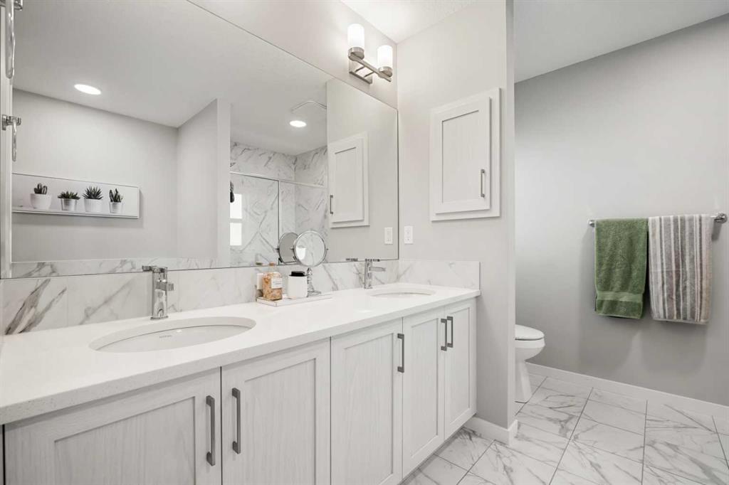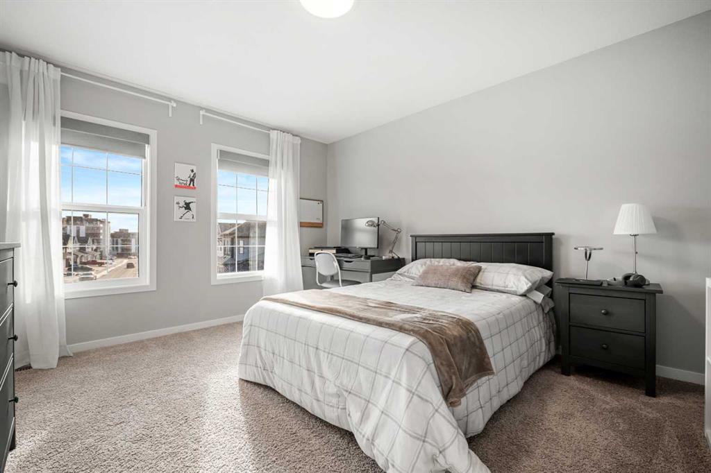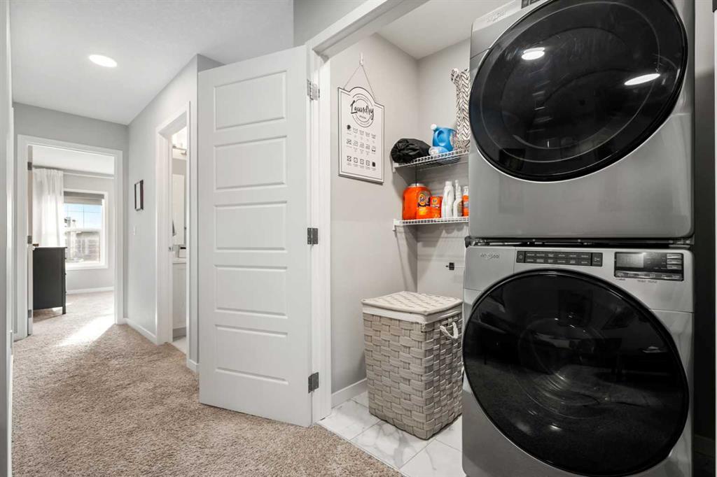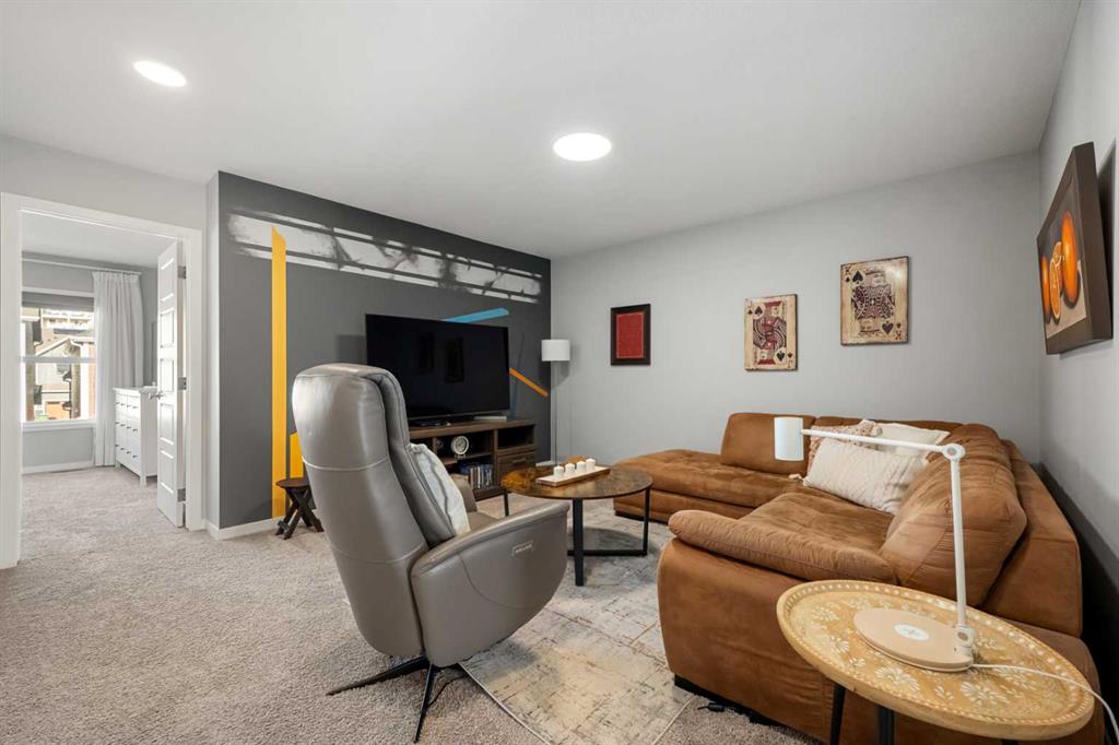 The upper level is designed with comfort and versatility in mind. The primary bedroom offers a private retreat with a walk-in closet and a well-appointed five-piece ensuite. Two additional bedrooms are bright and spacious, each providing excellent storage and easy access to a full bathroom. A centrally located bonus room offers flexible living space that can be used as a family room, media area, or playroom, while the upper-level laundry adds extra convenience.