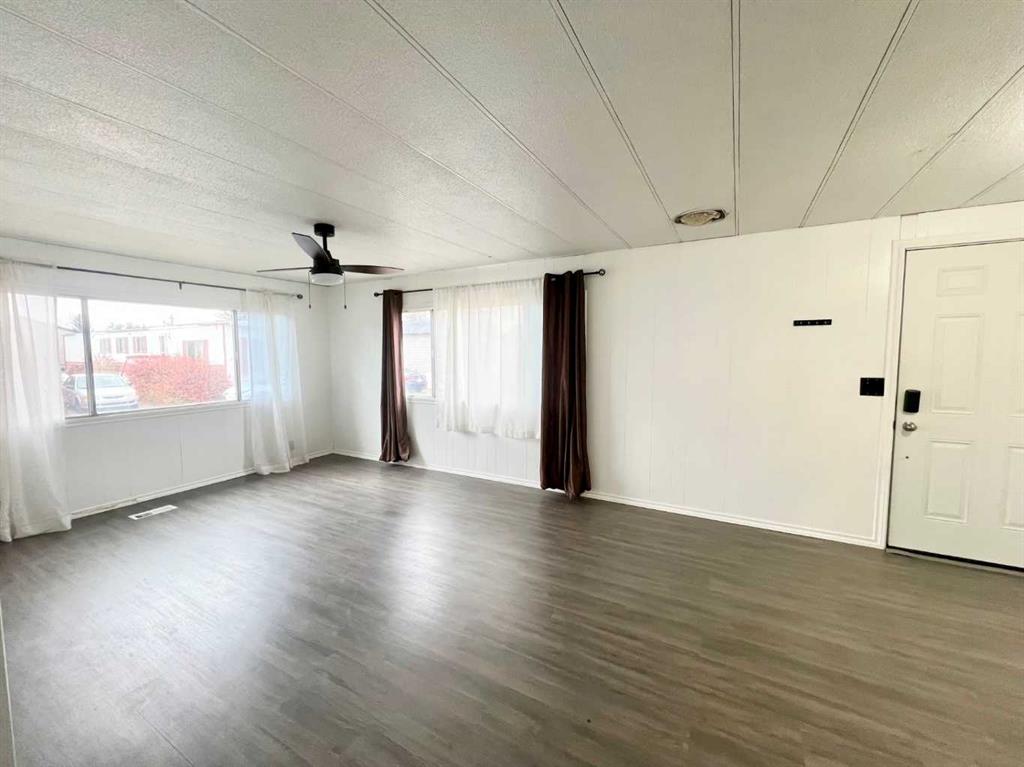 his 3-bedroom, 2-bathroom double-wide manufactured home in Greenwood Village is an estate sale and offers an excellent opportunity for the right buyer. With over 1,100 sq. ft. of living space, the home features a bright and open layout, including a spacious living room, dining area, and kitchen. Recent updates include new laminate flooring throughout the hallway, laundry room, and primary bedroom. The kitchen offers ample cabinetry, generous counter space, and an accessible-height prep area, while large windows fill the home with natural light. The primary bedroom comfortably fits a king-size bed and includes a 4-piece ensuite. Two additional bedrooms and a main full bath feature updated vanities, sinks, and low-flush toilets. A newer washer is included in the laundry room, and a new hot water tank was installed in 2023. Outside, enjoy a private, fenced backyard with no rear neighbors, a storage shed with dual access, a side patio, and a front side deck—perfect for morning coffee or evening barbecues. A newer accessibility ramp allows for easy entry, however can easily be removed with stairs underneath intact. While the home does need some work, it presents a great opportunity to add value and make it your own. Located steps from Calgary Farmers’ Market West, restaurants, and shops, and just minutes from Trinity Hills Shopping Center, C.O.P, Hwy 1, Stoney Trail, and transit.