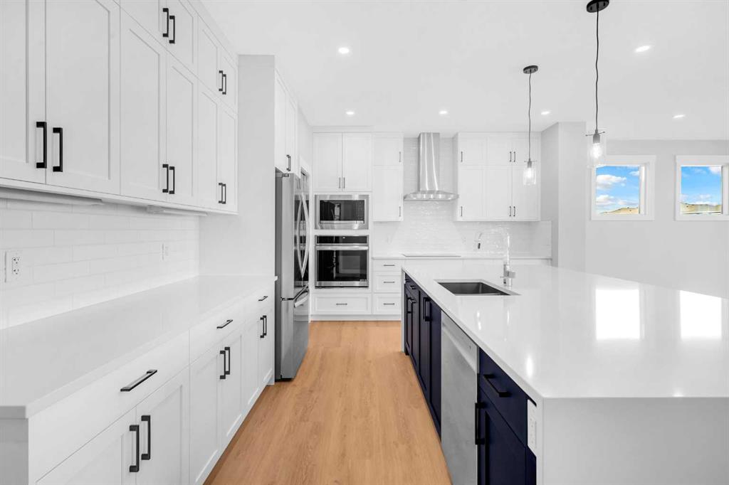 Welcome to 239 Chelsea Park, a truly exceptional family home in the heart of Chestermere. This stunning 4-bedroom, 3.5-bathroom estate offers over 2900 square feet of beautifully crafted living space and is perfect for those seeking both luxury and practicality. The open-concept floor plan is highlighted by soaring ceilings and an impressive floor-to-ceiling fireplace, creating a warm and inviting atmosphere. Natural light floods the home through large windows, illuminating the elegant and custom finishes that flow throughout. The heart of the home lies in the gourmet kitchen, featuring a massive island, sleek countertops, and upgraded high-end appliances, including a separate spice kitchen . Whether you’re hosting dinner parties or enjoying family meals, this kitchen offers both style and functionality. On the main level, you’ll also find a spacious office/den, perfect for those who work from home or desire a quiet space for study or reading. This flexible space enhances the home’s versatility and adds to the overall convenience of the layout. The home boasts two luxurious ensuites, one in the master suite and another in an additional bedroom, both offering a spa-like retreat with spacious showers and beautiful tile work. Two additional well-sized bedrooms share a beautifully appointed full bathroom, and the home includes 3.5 bathrooms in total, ensuring comfort and convenience for the whole family. Step outside to the expansive deck, where you can enjoy the serene backyard space, ideal for summer BBQs or simply unwinding in privacy. The triple-car garage offers ample space for vehicles, storage, or even a workshop. Situated in the desirable Chelsea Park neighborhood, this home provides easy access to Calgary, excellent proximity to schools, parks, and recreational amenities, and is just moments away from Chestermere’s picturesque lake and outdoor trails. This is an extraordinary opportunity to own a sophisticated, family-friendly home in one of Chestermere’s most coveted communities. Don’t miss your chance—schedule your private viewing today!