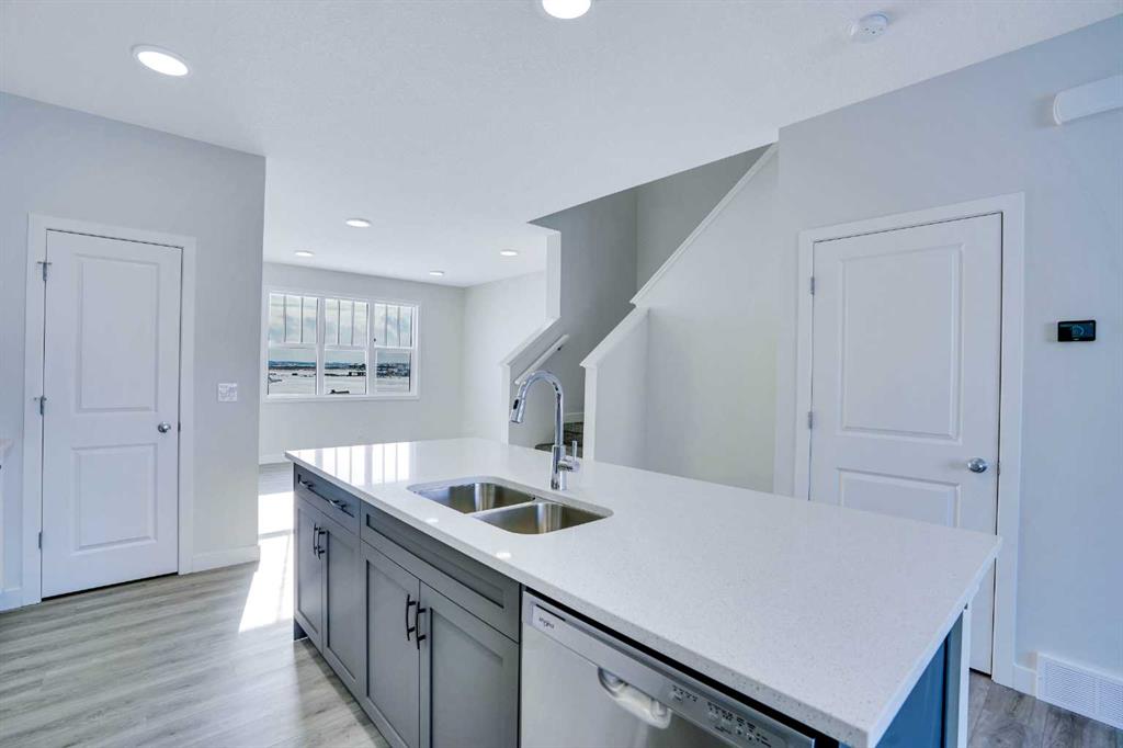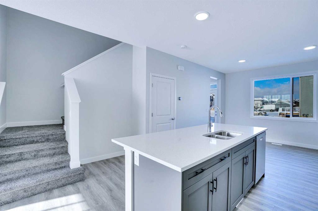 Exquisite and beautifully crafted, this newly built home in the vibrant community of Rangeview is sure to impress. Offering 4 bedrooms and 3.5 bathrooms, this home features a fully developed basement with legal suite with a separate entrance, making it perfect for multigenerational living or investment potential. Located in Rangeview, Calgary’s first-of-its-kind garden-to-table community, future amenities include community gardens, parks, playgrounds, and future schools—creating a welcoming and thoughtfully designed neighborhood. This modern single-family lane home combines luxury with functionality, ideal for first-time buyers or savvy investors. With over 2000 sq ft of living space, the home boasts an open-concept floor plan designed to maximize natural light and flow. The elevated kitchen features a large center island with a flush eating bar, stainless steel appliances, including a fridge, smooth-top electric range, and built-in microwave hood fan. The kitchen seamlessly connects to a spacious dining area and overlooks a sun-filled great room—perfect for entertaining. A 2-piece bathroom completes the main floor.