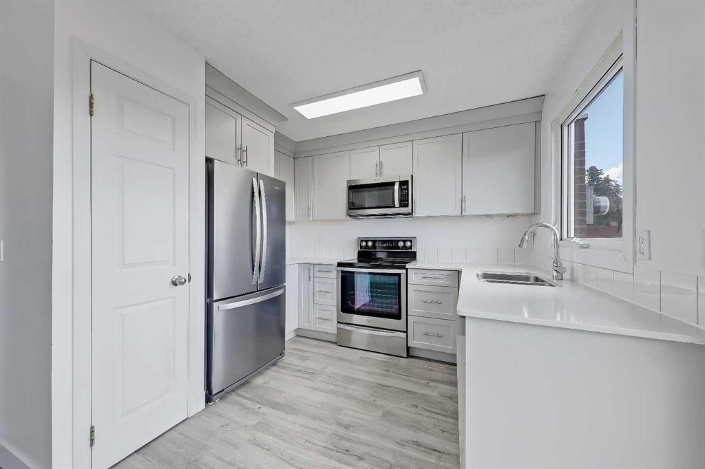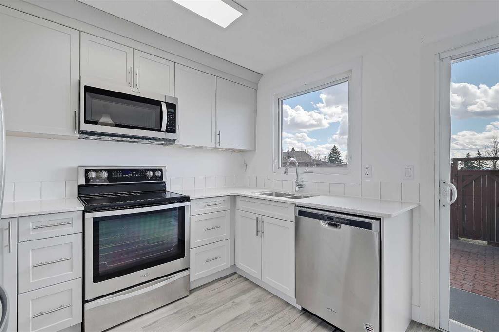 **OPEN HOUSE THIS WEEKEND: SATURDAY, APRIL 11 & SUNDAY, APRIL 12 FROM 1 PM – 4 PM** Incredible opportunity in Glenbrook for a RENOVATED, END-UNIT townhome backing directly on to a PARK and PLAYGROUND with a PRIVATE South-facing backyard! This is the perfect blend of private outdoor living and convenience, all in a PET-FRIENDLY complex. The main floor is bright and inviting, featuring expansive windows and new luxury vinyl plank (LVP) flooring throughout. The renovated kitchen features all new cabinetry, sleek quartz countertops, and stainless-steel appliances, and offers direct access to the private, fenced South-facing backyard, complete with a brick patio and storage shed. Updates continue upstairs, with new LVP flooring throughout, and a fully updated main bathroom. Two spacious bedrooms are found here, one of which enjoys fantastic views of the backyard and the adjacent green space. The basement is unspoiled and ready for future development, offering flexibility for additional living space, recreation, or storage. Located in a well-managed condo complex with reasonable condo fees, where recent exterior upgrades have been completed, including new windows, doors, siding, and concrete sidewalks. Located in the heart of the sought-after SW community of Glenbrook, this home boasts a fantastic location right across the street from Glenbrook Park. Residents enjoy walking access to excellent schools, including Glenbrook School and Glenbrook Preschool, making day-to-day life effortless for families. Parks, playgrounds, and green spaces are woven throughout the neighbourhood, while nearby Optimist Athletic Park and Glenbrook Community Association offer year-round recreation. Everyday conveniences are just minutes away with Westhills and Signal Hill shopping centres close by, along with local cafés, grocery stores, and essential services. With quick access to major roadways, transit routes, and a short commute to downtown, Glenbrook offers the perfect balance of quiet residential living and connected urban living.