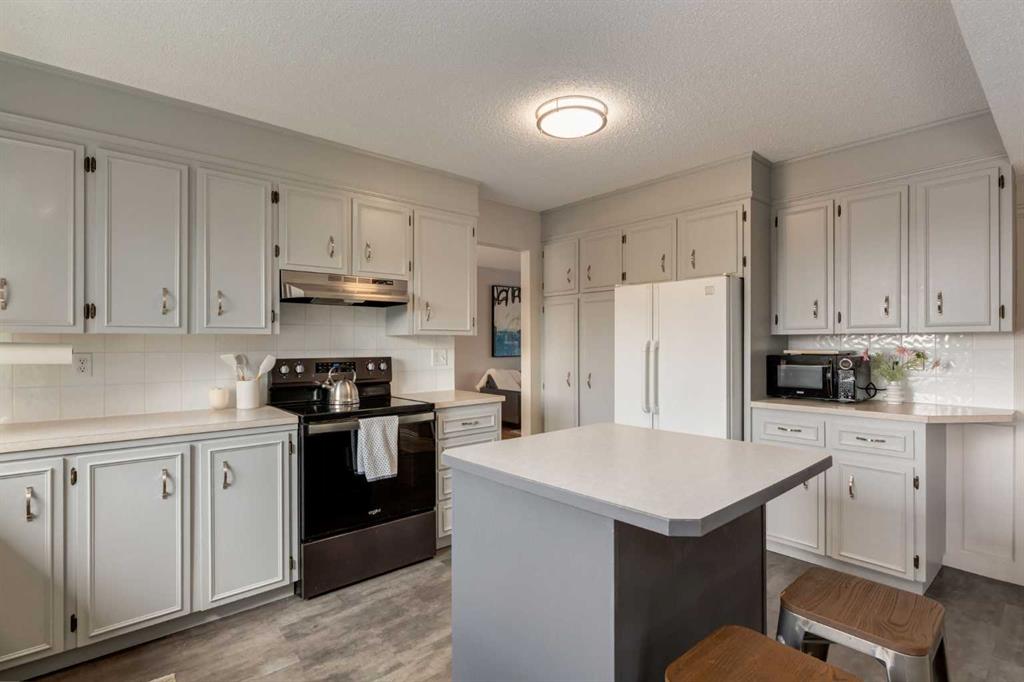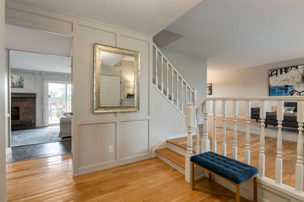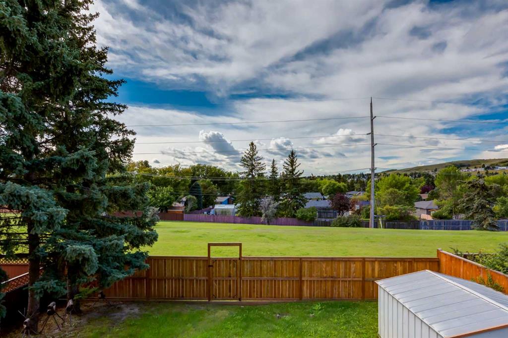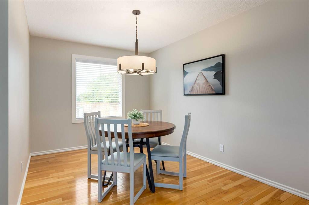 Tucked away on a quiet cul-de-sac, this original-owner home offers extensive updates, timeless charm, and an unbeatable location! This thoughtfully maintained property rests on a flat lot with a sunny south-facing backyard that opens directly onto a tranquil greenbelt walking path leading directly up to Nose Hill Park — a rare and coveted feature. Stepping inside the home, the main floor showcases gleaming hardwood flooring throughout the living room, dining room, hallway, and staircase. Light floods the home through new metal-clad windows and sliding doors. The kitchen is the heart of the home, featuring a large window overlooking the backyard, ample cabinetry, a moveable island, and newer appliances including a dishwasher and oven. It’s open to the cozy family room, where a wood-burning fireplace with gas light, a brick surround, and wooden mantle create a warm, inviting atmosphere. This space flows seamlessly out to the spacious newer deck, complete with gas line for your BBQ—perfect for relaxing evenings or entertaining guests. Outside, the meticulously maintained yard includes a raised vegetable garden, storage shed, lawn, and privacy thanks to the newer rear fence and retaining wall. The steel siding has been freshly painted, new exterior lighting adds nighttime charm, and new 4″ eaves and downspouts protect the home for years to come. Back inside a bright eating nook and the open, airy front living room along with a bedroom and 2pc powder room complete the main level, while a convenient main floor laundry area adds everyday ease. Upstairs, the primary retreat is a serene space with private access to a second deck that overlooks the peaceful backyard and greenbelt. A 4-piece ensuite and modern touches throughout provide style and privacy, creating a peaceful haven. Two additional bedrooms, a 3pc bathroom complete this upper level. The partially finished basement offers flexibility with a bedroom, including an egress window, bathroom rough in, and a large recreation space, all awaiting your final touches. Additional features include solar shades in the primary bedroom, family room and kitchen, updated lighting throughout, a newer roof, only 5 years old, and parking for up to five vehicles—a rare find in such a prime location. This is a true gem: a lovingly maintained, extensively updated home on one of Beddington’s best streets. Whether you’re enjoying a morning coffee on your private deck, gardening in the afternoon sun, or entertaining friends in the evening, this charming abode is waiting to welcome you home.