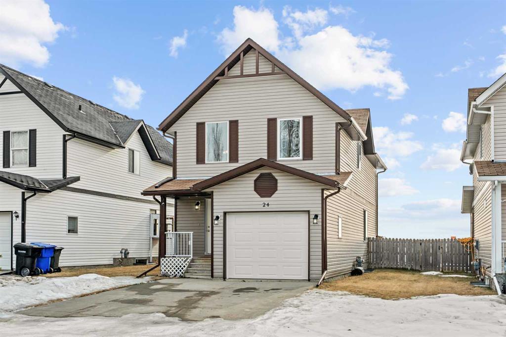 MOUNTAIN VIEWS | 4 BED / 2.5 BATH / 2,100+ SQ FT OF LIVING SPACE | FULLY DEVELOPED BASEMENT | SINGLE ATTACHED GARAGE | SOUTH-FACING BACKYARD | WELL-MAINTAINED DETACHED HOME – Welcome to 24 Destination Place, a charming and well-cared-for home located in a quiet, family-friendly neighbourhood backing onto an open field for added privacy and breathtaking views. Enjoy unobstructed mountain views, beautifully framed by the historic Pioneer Elevator, creating a truly unique and picturesque setting.
