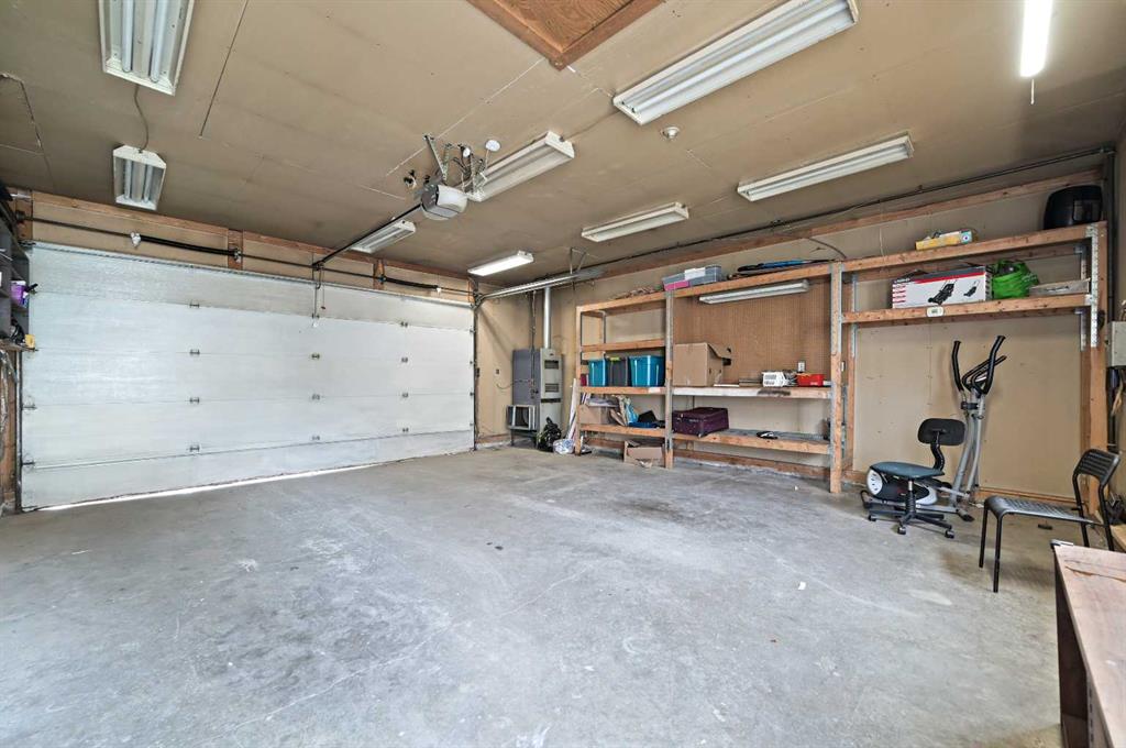 The fully developed basement provides even more living space, including a fourth bedroom, a second four-piece bathroom, and a dedicated laundry area. Step outside to enjoy the fenced backyard with a large patio and an oversized heated double garage measuring 24 by 22 feet with 10-foot ceilings and 220-volt power.