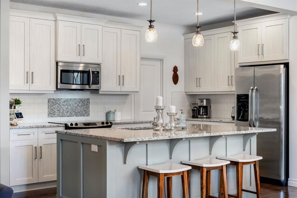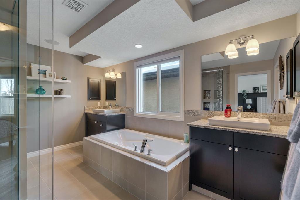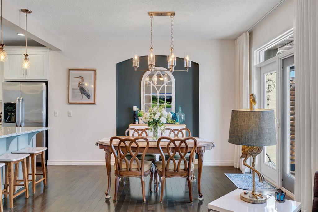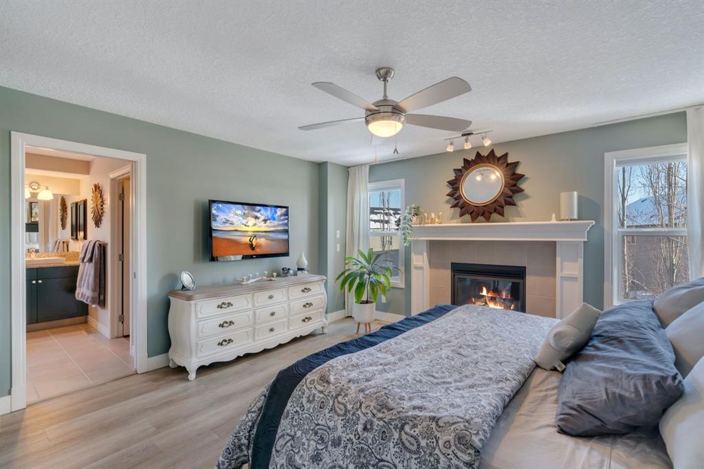 From the moment you walk in you will feel the pride of ownership and the warmth this home has been filled with. A grand light filled foyer welcomes you with expansive windows and designer finishes throughout, including high end lighting, draperies, feature walls, wainscoting, and rich hardwood flooring! The open concept main floor is perfect for entertaining, with the kitchen, dining, and living areas flowing seamlessly together. The chef inspired kitchen features full height cabinetry, granite countertops, a custom coloured island, upgraded appliances including a new dishwasher, a large island for gathering, and a walk-through pantry offering exceptional storage. The bright dining area with storage niche opens directly onto the low maintenance backyard with a gas bbq line and a beautiful stone patio. The cozy living room is anchored by a soothing gas fireplace, creating the perfect space to relax. A 2 piece powder room and functional mudroom complete the main level. Upstairs, custom railing, board and batten detailing, shiplap accents and upgraded baseboards elevate this amazing thoughtful design. Upgraded vinyl plank flooring runs throughout the second floor. The spacious primary retreat easily accommodates a king sized suite and features custom wainscoting, great windows for abundant natural light and a gas fireplace for cozy winter nights. The spa inspired 5 piece ensuite includes dual sinks, a soaker tub, a separate shower with 10mm glass, timeless tile, and a mammoth walk-in closet. The upper level also offers two additional well sized bedrooms, a stunning bonus room with a raised vaulted ceiling, 4 piece main bath, and a convenient laundry room. The basement is perfect for future development if desired and features rough ins for a future bath, networking cables, excellent storage, and an on demand hot water system. Outside, the well manicured lot showcases a 20 foot diameter Rundle flagstone patio and excellent sun exposure. This location at this price point is exceptional with the pathway to the coveted Mahogany Wetlands right there! Additional upgrades include 9 foot ceilings on the main and upper levels, central air conditioning, majority of the home is freshly painted, recently painted exterior boards and garage door, designer upgrades throughout, custom window coverings, millwork detailing, and shiplap feature walls. Mr. and Mrs. Clean truly live here. This is a home where pride of ownership is unmistakable. Start enjoying lake living this summer in Mahogany, Calgary’s award winning four season lake community. This property is the ultimate combination of beauty, comfort, and long term value. A forever home designed for your family and memories on the water. Do not miss it! Call today!