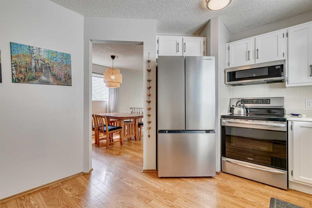 Welcome to the family-friendly community of Millrise. This beautifully maintained 4-level split offers 3 bedrooms and 2 full bathrooms, perfectly situated on a quiet street across from a PARK. With its sunny WEST FACING frontage and large windows framing serene park views, this inviting home is naturally lit and warm. Step inside to a bright, open living space featuring high ceilings and an airy, welcoming feel throughout. The modernized kitchen is equipped with STAINLESS STEEL appliances, including a new FRIDGE (2024), STOVE (2020), DISHWASHER (2021), and MICROWAVE HOOD FAN (2023)—perfect for preparing family meals or entertaining guests.