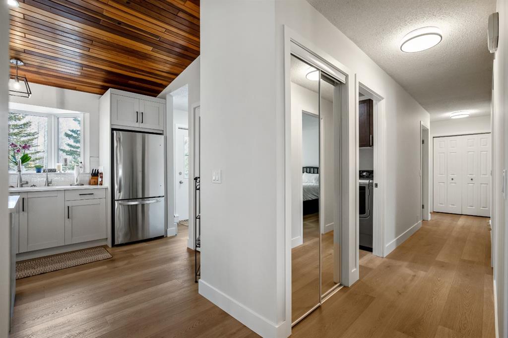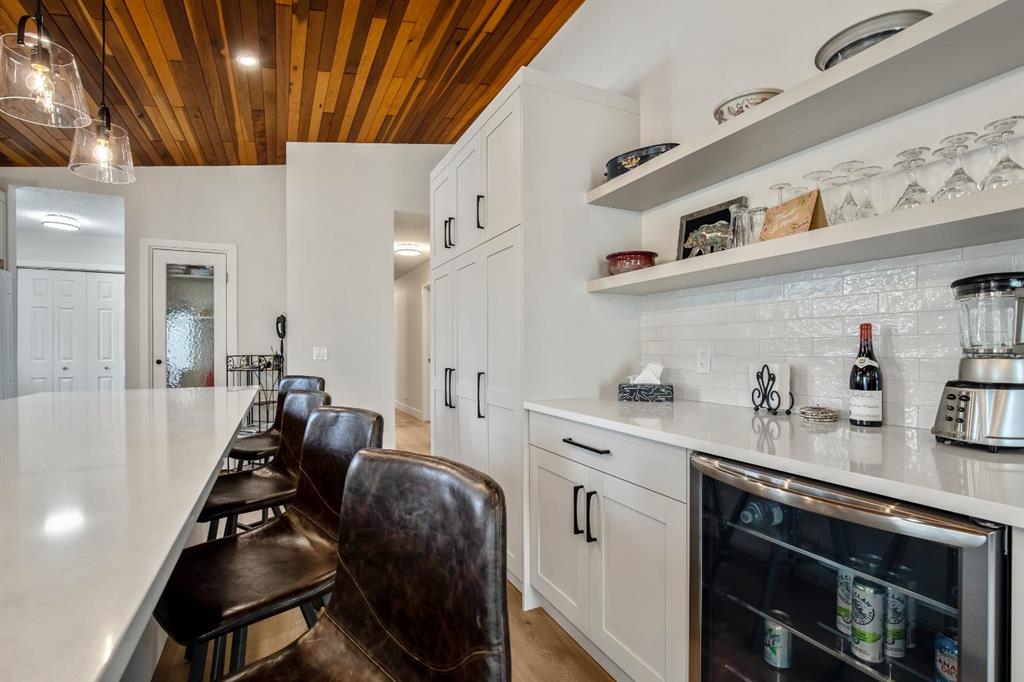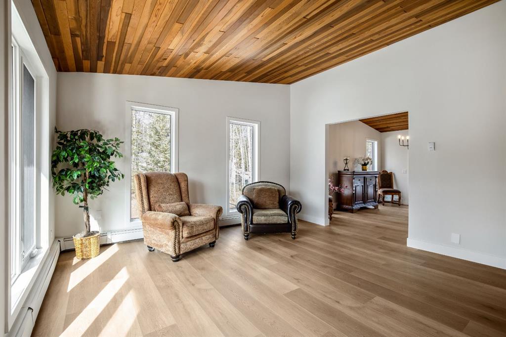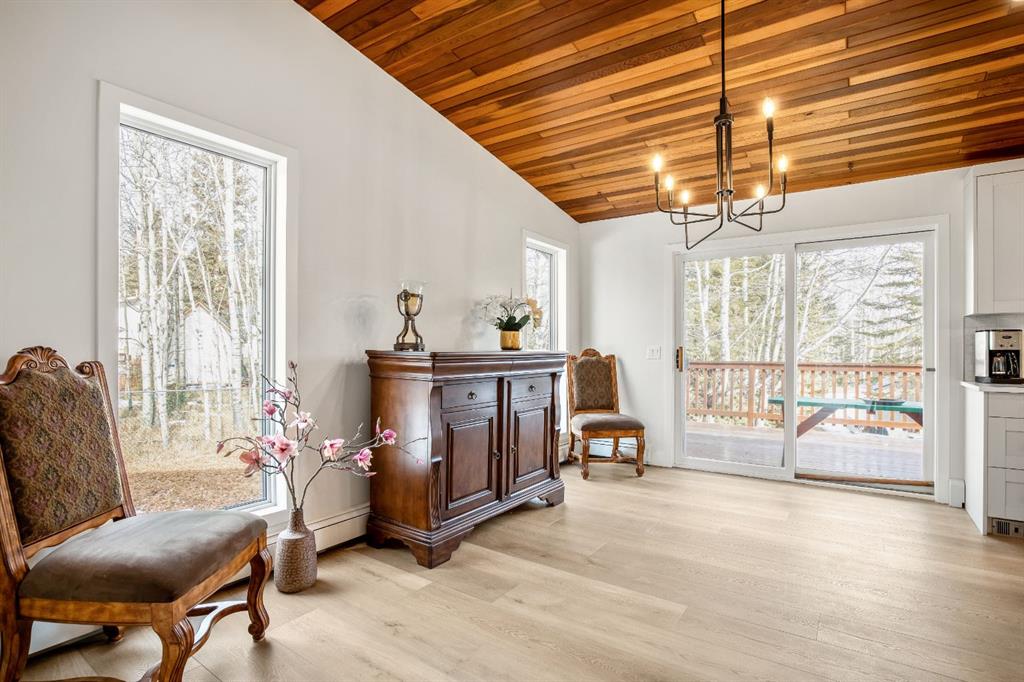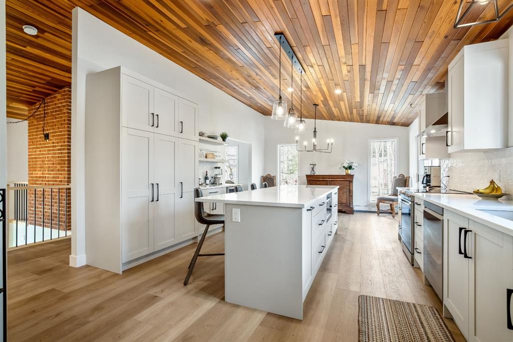 OPEN HOUSE – SUNDAY JANUARY 25 – 1 pm to 3 pm. Bright and sunny professionally renovated home in West Bragg Creek located mid way between the Hamlet and the Bragg Creek trail system. All you need to do is unpack your furniture and start enjoying country life. Major renovations include a stunning Legacy kitchen with shiny quartz counters, electric slide in range featuring convection bake, no preheat, steam bake and Air Fry to make cooking a breeze. New flooring throughout, upstairs windows are triple glazed and upstairs bathrooms refinished. Three bedrooms upstairs, brick fireplace in living room, family room with large windows on lower level. Hot water heating with 5 zones ensures each room meets your living temperature ideals. Underdrive garage is heated. Park like yard is perfect for kids and dogs. Children’s slide and swings, gas BBQ on deck, fire pit with seating and a large dog run. Everything you need to start your rural life – all yard furniture and even the ride on lawn tractor to help maintain your yard. No water or septic concerns here! Mountain View Park has its own water and sewer system.