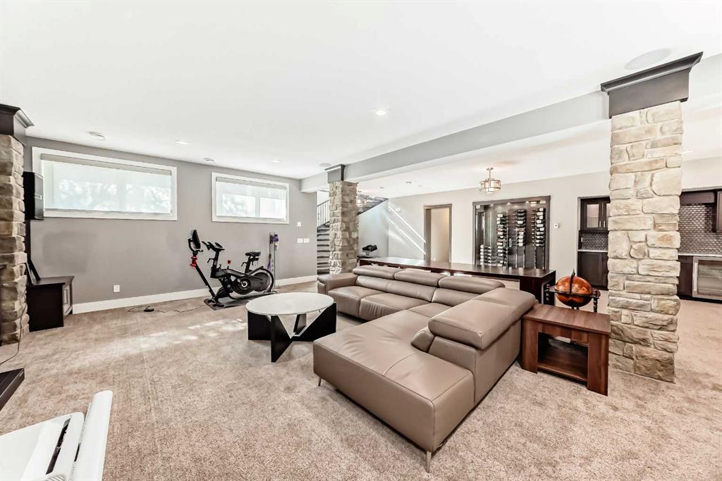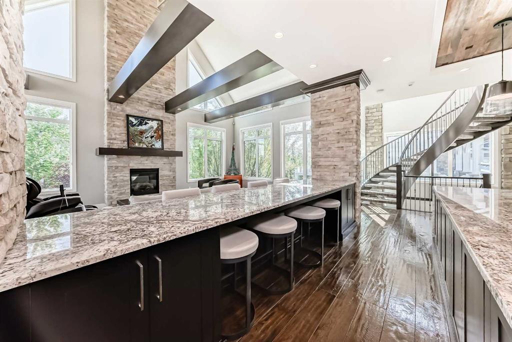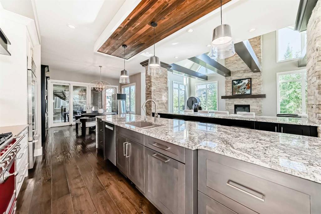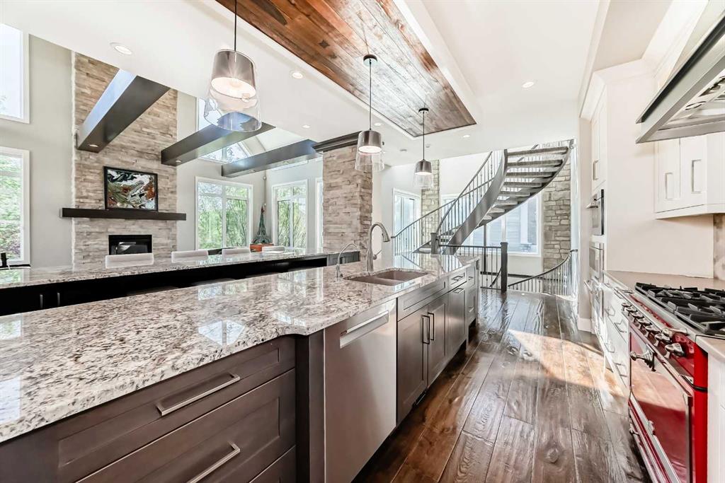 FORMER ASTORIA SHOWHOME – NATIONAL FINALIST FOR HOME OF THE YEAR! Welcome to 24 Rockwater Way in Watermark, a masterpiece by Astoria Custom Homes.Recognized as a Canadian National Finalist for Housing Excellence and a SAM Awards Finalist for Best New Home, this residence was ranked among the TOP FIVE homes in the nation.The home opens with a dramatic foyer, where wide-plank hardwood, 11-foot ceilings, and a curved open-rise staircase set the tone. Sunlight floods the space, illuminating stone-clad columns, wood-beamed ceilings, and hand-painted details. The chef-inspired kitchen featuring dual granite waterfall islands, a La Cornue range, Sub-Zero refrigeration, and a Wolf built-in coffee system. A butler’s pantry with beverage center streamlines entertaining, while custom cabinetry, subtle lighting, and professional-grade finishes complete the space. French doors open to a covered deck with a stone-clad fireplace, extending the gathering space for year-round enjoyment. In the great room, a soaring stone fireplace anchors the design, while exposed beams draw the eye upward.Custom lighting and built-in speakers enhance the ambiance, highlighting both architecture and comfort. A private home office with barn doors and tailored built-ins offers function with style, while the bright dining nook—framed by designer finishes—creates an inviting space for everyday living. Upstairs, the primary suite is a private sanctuary with vaulted ceilings, a fireplace, and a hidden walk-in closet. The spa-inspired ensuite offers heated tile floors, a glass shower, private water closet, and a soaking tub designed for pure serenity. A second guest suite with ensuite, two additional bedrooms with a shared full bath, and a loft overlooking the great room provide space for family and guests. A full laundry room with custom cabinetry adds convenience.The walkout basement is designed for both relaxation and entertaining.Highlights include a rec/theatre room with stone-clad built-ins, wet bar, and wine display; a fifth bedroom with full bath for guests; and walkout access to a covered patio prepped for a hot tub with gas fire bowl rough-in. The triple-attached heated garage features epoxy floors, slab heating, and custom storage—combining function with refined elegance.Over $40,000 in thoughtful upgrades make this home move-in ready, including a 2024 Bosch dishwasher, radon mitigation system, landscaping with new trees, mulch, and driveway sealing, patio improvements with a new staircase and screened patio, and custom window blinds, among other refinements. Watermark at Bearspaw delivers tranquility, privacy, and prestige. Architectural controls preserve timeless beauty, and the absence of commercial development ensures peace and exclusivity. Residents enjoy a central plaza with gazebo and outdoor fire pit, soccer field, reflection pond, BBQ facilities, landscaped parks, NBA-sized sports court and 5 km of paved trails. Book your private showing today and Welcome Home!