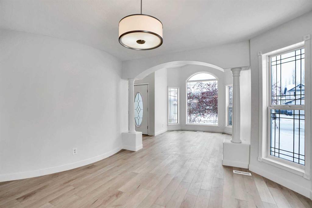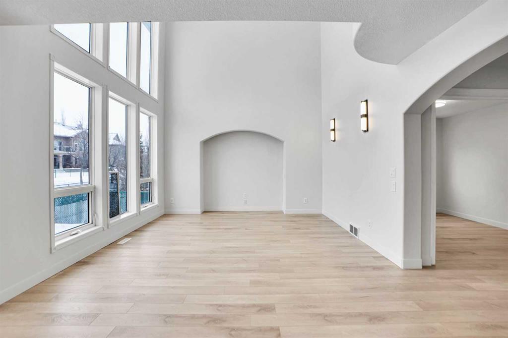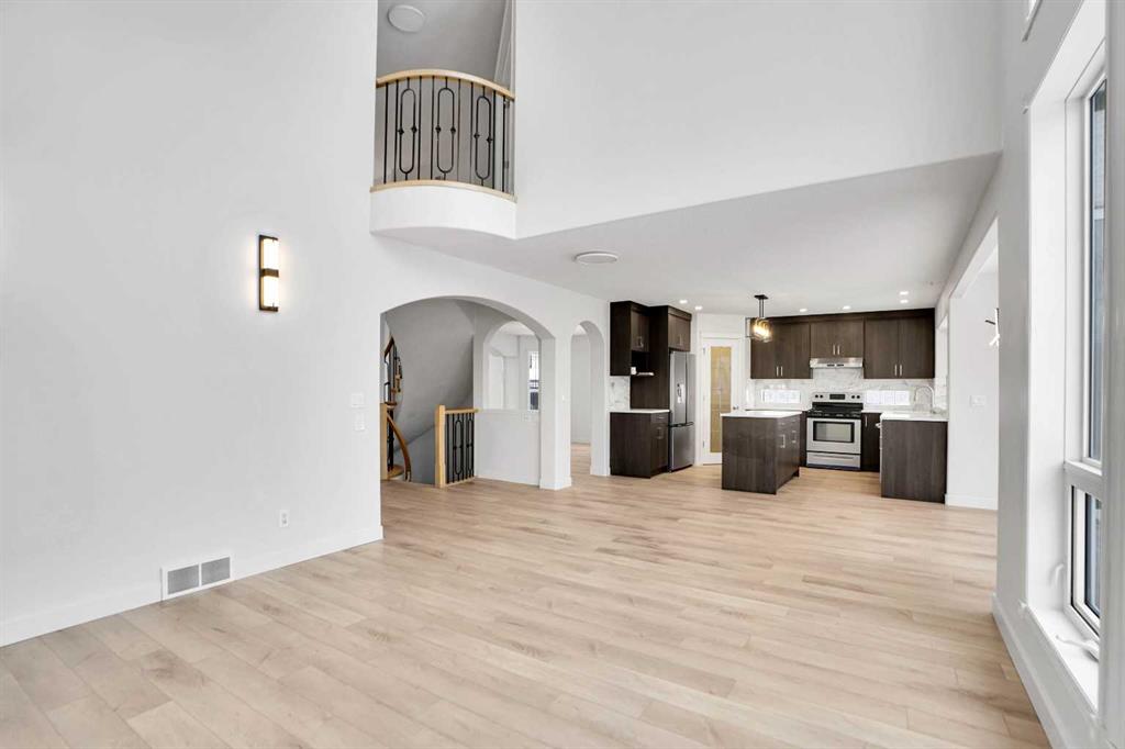 *Life really is better by the lake — Welcome to The Cove in Chestermere!* This beautifully renovated 2-storey home sits on a large corner lot backing onto pathways and green space, just a short walk to Chestermere Lake, The Cove Beach, parks, playgrounds, and off-leash areas. Set on a generous corner lot, this property gives your family the rare balance of privacy, convenience, and year-round recreation. Walk the kids to the beach, hit the pickleball courts, let the dog run at the off-leash park, or enjoy sunset strolls along the water… all just minutes from your front door. Inside, the house greets you with that WOW moment — soaring 17’ ceilings, the sweeping curved staircase, and oversized windows pouring natural light across brand-new flooring. It’s a true “wow” entrance that sets the tone for the rest of the home. The main floor features a spacious formal living/dining area, a bright kitchen with centre island and pantry, a cozy family room with 3-sided fireplace, and a private main-floor office with French doors. Ceiling to floor Windows in the Family Room provide ample light during the day and gives you an unobstructed view of the backyard. Step outside onto your own private deck for summer BBQs or just relaxation after a long work-week. This house has it all. Upstairs offers 3 bedrooms including a generous primary suite with 5-pc ensuite and walk-in closet. The open-to-below hallway adds light and airiness throughout. The second and third bedrooms are towards the front of the house, with spacious closets, new carpets and light fixtures. The 4 pc bathroom down the hallway is also a master piece and Brand NEW with it’s cabinetry, lighting, faucets, counter tops and shower area. The unspoiled basement is ready for your future development with 3 windows and lots of potential. Enjoy a large backyard with deck, concrete patio, and plenty of room for kids, pets, and entertaining. Location is everything. In The Cove, you get walking trails, parks, green space, and proximity to Chestermere Lake for boating, paddle-boarding, and fishing – plus easy access to shopping, schools, and highways. If you’re looking for a family home that blends style, comfort, and a community outside of the big city – this is it! Move-In ready and Quick possession available! Come book your showing today and fall in love with it.