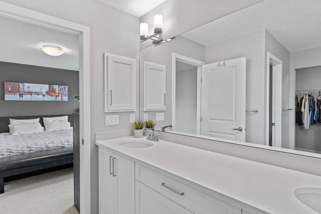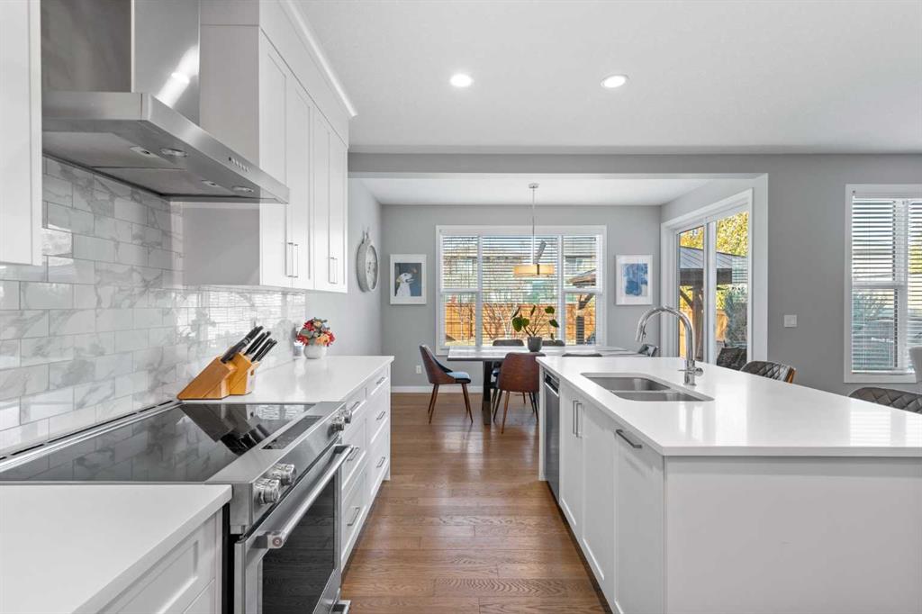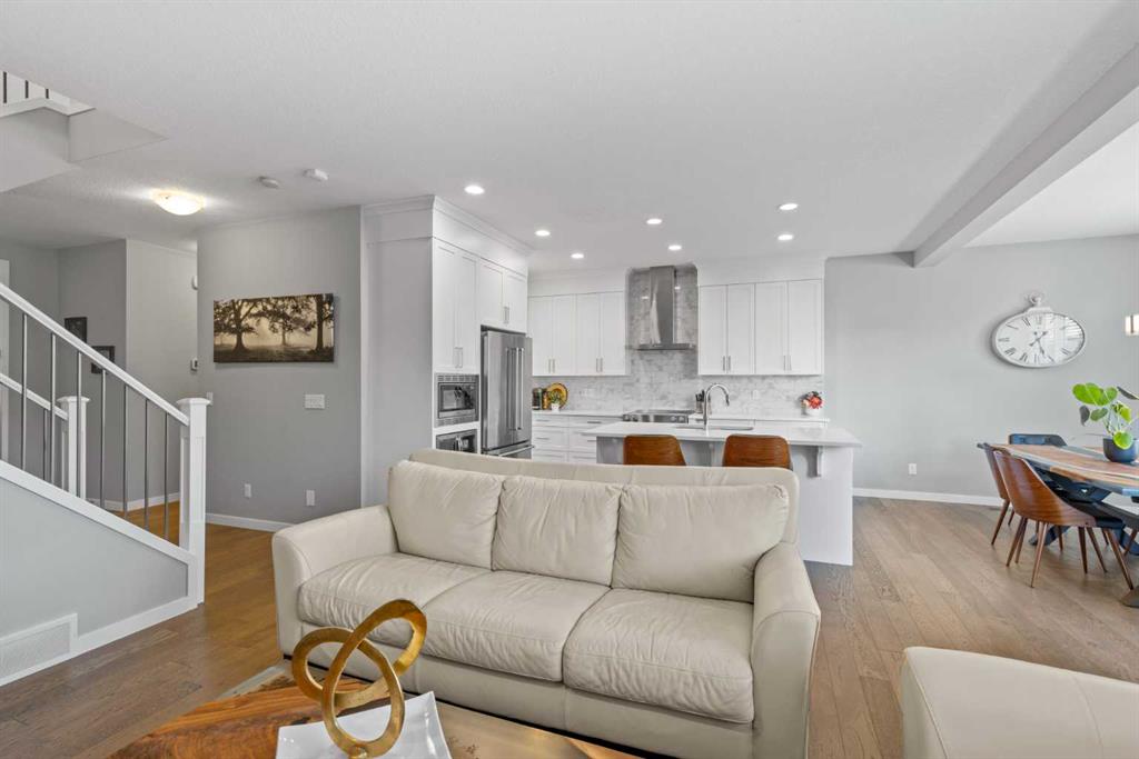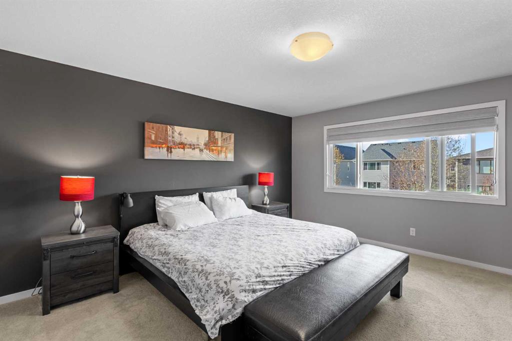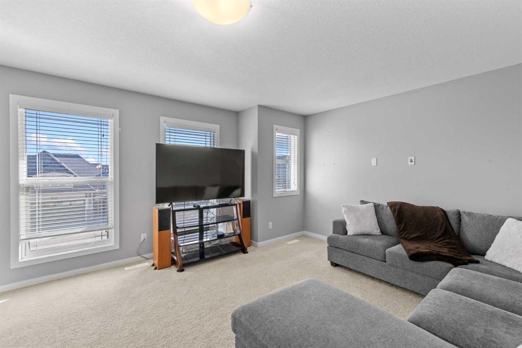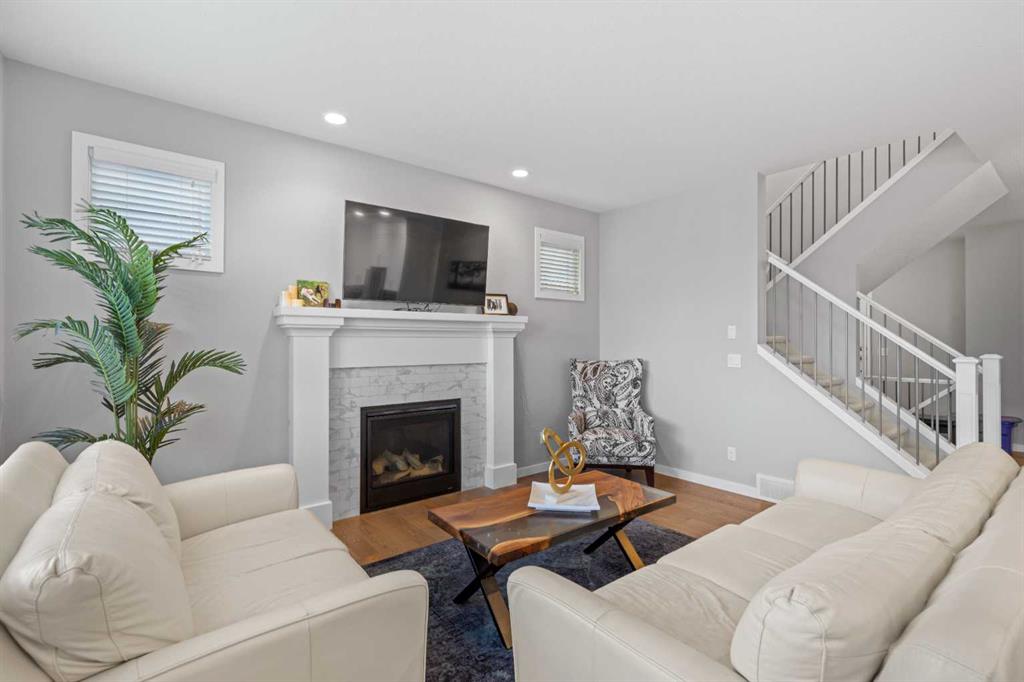 Welcome to this beautifully designed 3-bedroom home on a quiet street in the desirable Riverstone community. Ideally located near the Bow River and scenic walking trails, it blends modern style with family-friendly comfort. Inside, you’ll find a bright open-concept main floor with 9-foot ceilings, 8-foot doors, and oversized windows. The chef’s kitchen features quartz countertops, extended cabinetry, stainless steel appliances, and a large island perfect for entertaining. The inviting living room centres around a cozy gas fireplace for relaxing nights in. Upstairs, the primary suite offers a luxurious ensuite with dual sinks, a soaker tub, and a tiled glass shower. Two additional bedrooms, a bonus room, and upper laundry complete the level. The basement—with 9-foot ceilings, large windows, and bathroom rough-ins—awaits your personal touch. Enjoy the sunny west-facing backyard with a two-tier deck, pergola, privacy screen, and mature trees. Central air ensures year-round comfort. Combining thoughtful upgrades, functional design, and a prime Riverstone location, this home is a must-see for families seeking both sophistication and comfort.