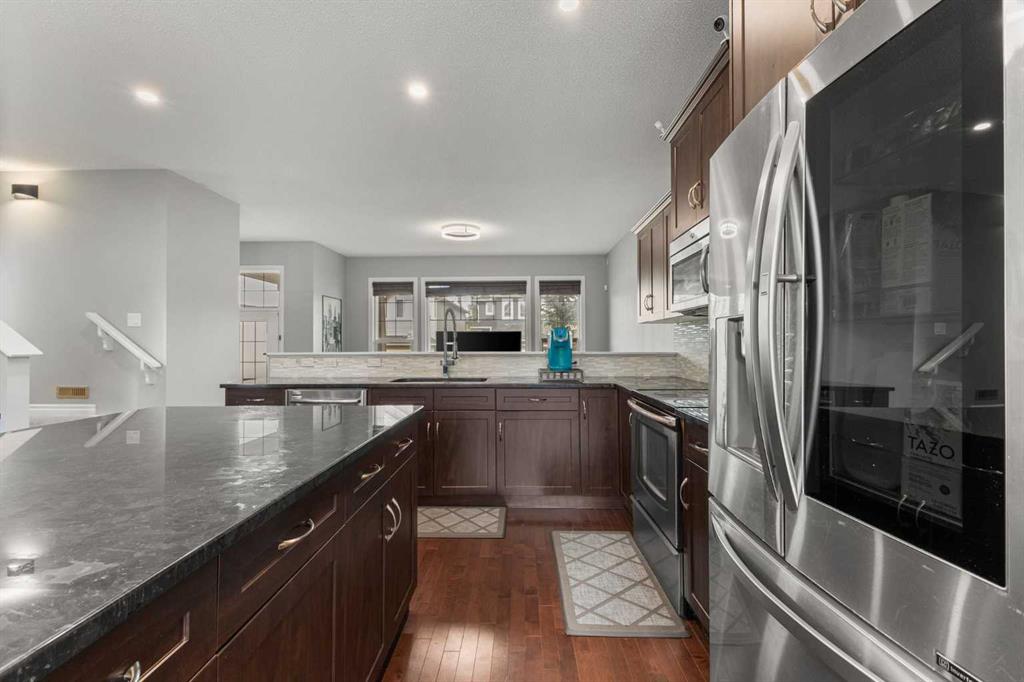 Tucked into the vibrant community of Evanston NW, this beautifully upgraded detached 2-storey home offers the perfect balance of modern living and functional design. With 3+1 bedrooms, 3.5 bathrooms, and approximately 1,720 sq. ft. of thoughtfully planned space, every corner has been tailored for comfort, convenience, and style. Step inside and be welcomed by soaring ceilings in the main living room, where oversized windows draw in natural light and create a warm, airy ambiance. At the heart of the home is an oversized kitchen island, finished with granite countertops and sleek stainless-steel appliances, an entertainer’s dream! The formal dining area flows seamlessly through south-facing 8-ft sliding patio doors, extending your living space to the outdoors. Practical touches enhance everyday living, including a versatile nook perfect for a coffee bar or work from home station, and a functional side entrance leading to a well-organized mudroom. The south-facing backyard features a spacious two-tier deck with gazebo, ideal for BBQs, summer evenings, or hosting friends. Out back, you’ll also find an oversized, insulated, double detached garage, along with a new roof (2025) and refreshed siding, providing peace of mind for years to come. Upstairs, the home is designed with family in mind, offering three spacious bedrooms, upstairs laundry, and plenty of natural light throughout. The primary suite boasts a spa-inspired ensuite with a soaker tub, separate tiled shower, and a generous walk-in closet. The fully finished basement adds even more versatility, complete with a recreation room or home gym, a private bedroom, and a 3pc bathroom, perfect for guests, extended family, or a quiet retreat. Additional comforts include central air conditioning and oversized windows that bath the home in sunlight. Located between public & catholic schools with a new high under construction nearby. Living here means enjoying quick access to Symons Valley amenities, Carrington’s 14th Street NW shops, and easy routes via Stoney Trail, Beddington Trail, and 144th Ave NW. Whether commuting downtown or escaping to the mountains, this location keeps you connected while still feeling like a retreat. This Evanston gem truly combines function, beauty, and location: the kind of home that makes every day feel elevated.