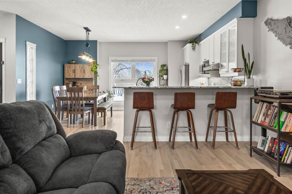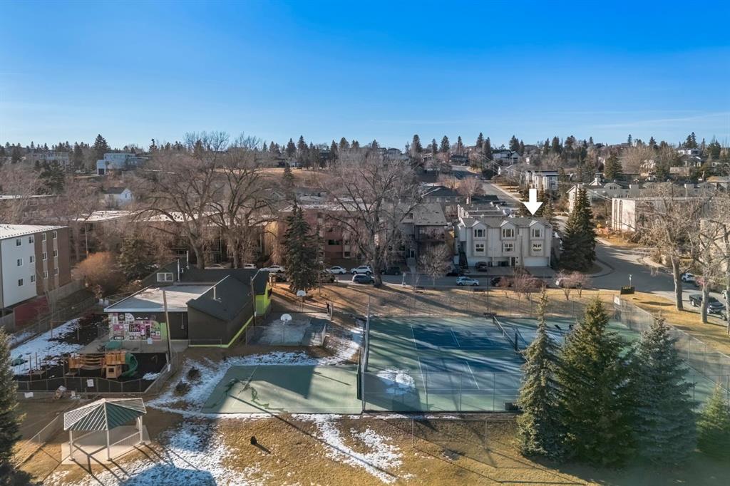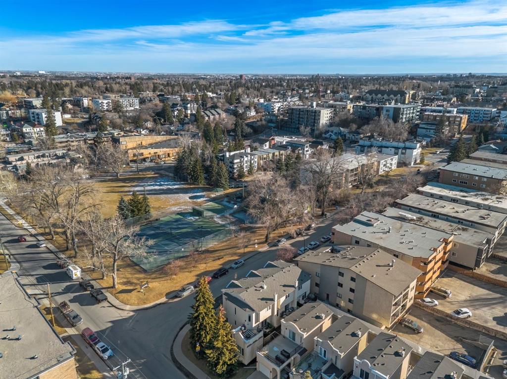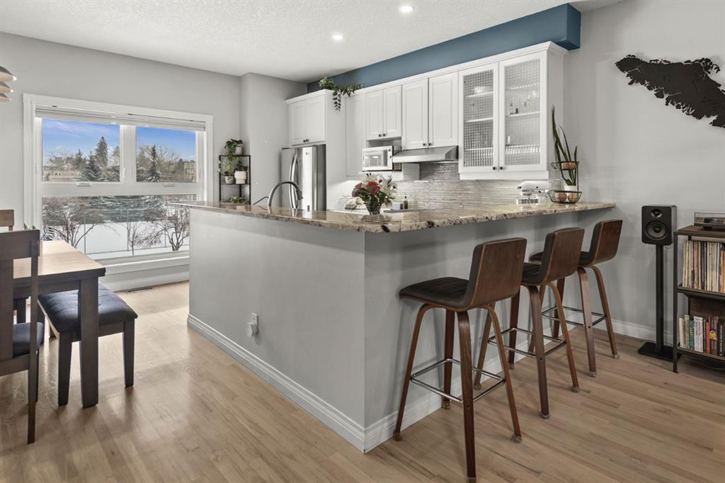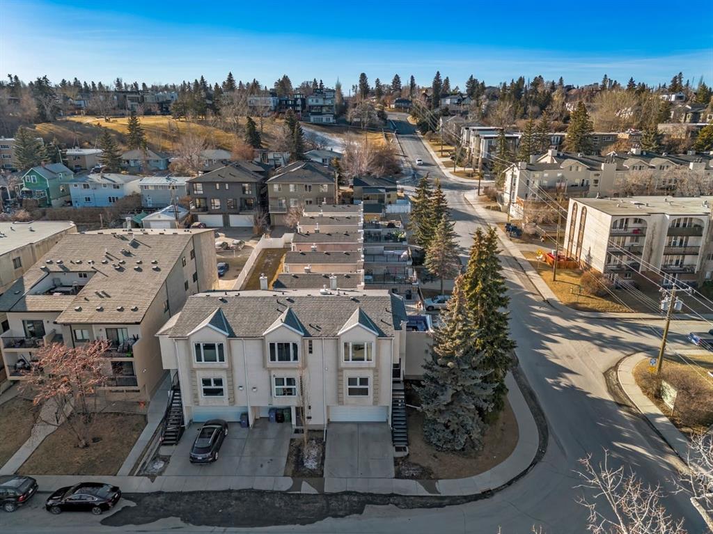OPENHOUSE FEB 21: 1-3PM. Fantastic end-unit townhome in the heart of Bankview offering a rare double car garage and an incredible rooftop patio! With 1,564 square feet of thoughtfully designed living space, this is an exceptional opportunity to live walking distance to downtown and directly across from a large park and tennis courts. Step inside to a welcoming open-concept main floor featuring 9-foot ceilings and a spacious layout designed for both everyday living and entertaining. The dedicated dining area easily accommodates a large table, while the impressive U-shaped kitchen offers stainless steel appliances, granite countertops, abundant cabinetry, and generous counter space. Enjoy beautiful park views right from your window as the kitchen flows seamlessly into the expansive living room, centred around a cozy gas fireplace with a designated nook for a desk or workspace.