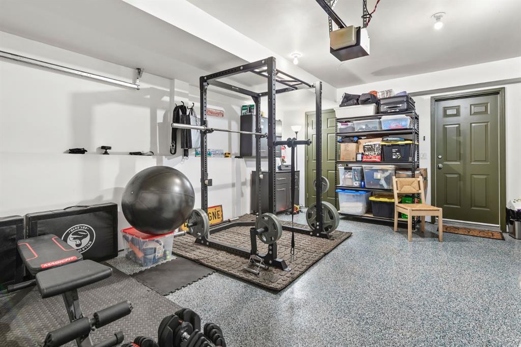 Between the main level and lower level, you’ll discover a fantastic and unique recreation room exclusive to this unit — ideal for a man cave, movie room, home office, or flex space. Complete with a second gas fireplace and beautiful California shutters, it’s a cozy and versatile retreat. The double attached garage truly feels like an extension of the home, featuring epoxy flooring, space for two vehicles, and two dedicated storage areas.