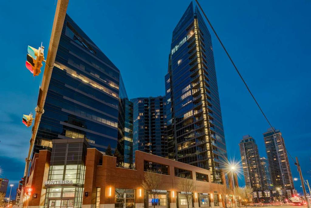 Situated in the heart of Beltline, Keynote One offers ultra convenient downtown living just steps to Stampede Park, BMO Centre, and Calgary’s Saddledome. This Sub-Penthouse offers an exclusive EXTENDED balcony, plus TWO TITLED VIP parking stalls – a rarity in this building! With soaring floor to ceiling windows, second balcony off the master bedroom, and breath-taking views of the cities’ skyline, this unit is a one-of-a-kind. Upgrades include new Vinyl Plank flooring, washer/dryer, water filtration system (ion filter), and new sink. Open concept, modern and industrial describe the vibe of this layout featuring TWO bed / TWO baths, boasting unbeatable privacy and functionality. Lie in your master retreat, enjoy the two-way fireplace, soak in the first- class views of the Calgary Tower and city skyline. Feel the grandness of the master ensuite with second balcony, double sinks, separate shower, massive tub, and OVER-SIZED double walk -in closet with custom California Closet built -ins. Keynote offers an on-site manager, access to the fully equipped fitness facilities (weights and cardio room), two guest suites, owner’s lounge with TVs, pool table, partial kitchen, BBQs, outdoor patio, plus 15 rooftop oasis, bike storage, and direct access to Sunterra Market. This unbeatable location offers high-quality living, the Plus 15 Skywalk system, and easy access to main thoroughfares for city-wide access. Weather you are looking for your next home or a prime investment opportunity, this is downtown living done right.