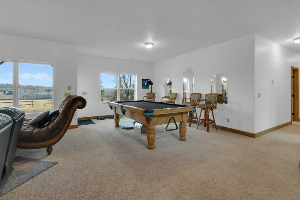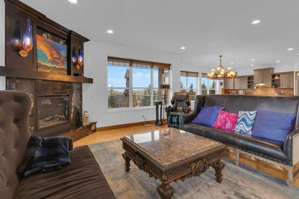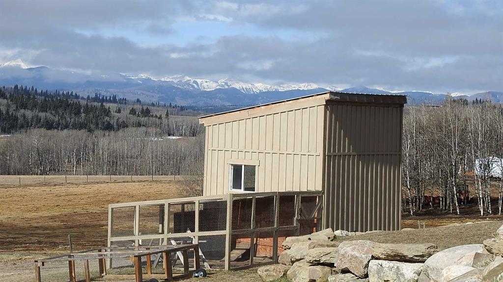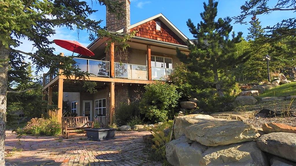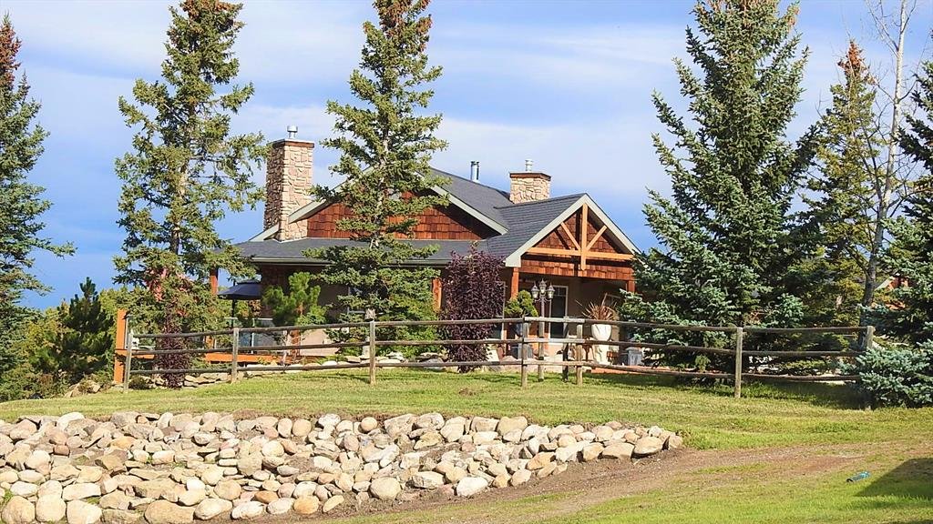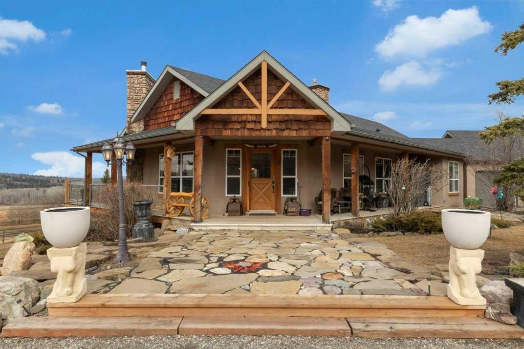 This breathtaking home, situated on 5 acres of land, is one of the most beautiful, scenic, and unique mountain-view properties in the Millarville area. The property greets you with two hand–glass-blown golden cattail sculptures, accented with polished copper leaves and stems, along with a rare 300-year-old Sedona cactus skeleton. As you come up the driveway, you’ll notice a stunning rock wall, towering evergreens, and an extensive $500,000 professionally landscaped yard, all enhanced with Alberta perennials planted throughout the gardens. A glass grizzly-bear-paw insert set into the flagstone patio leads to the timber-accented entrance of this earth-toned stucco walkout bungalow. Inside, the wide-open 1,979 sq ft floor plan and extra-large windows frame the majestic Rocky Mountains and Southern Alberta Foothills, making this home truly special. The ranch-style kitchen features updated cupboards, quartz countertops, and stainless steel appliances—an inviting space where everyone naturally gathers. There is plenty of room for entertaining family and friends, with the kitchen flowing into the dining room and open living room. The heat from the Nodica Italian wood-burning stove adds warmth and charm, whether you’re cooking or taking the chill off a cool spring night. If you’re looking for the ultimate escape, the primary bedroom delivers. It boasts a 5-piece ensuite, a spacious walk-in closet, and, once again, amazing views. Main-floor laundry is conveniently located in the huge mudroom, which includes a sink, extra storage shelving, and ample space for hanging jackets. Two additional bedrooms complete the main floor. The in-floor-heated basement offers three more bedrooms, a games area perfect for a pool table, and a cozy family space centered around a stone-faced, high-efficiency wood stove. The walkout patio doors open to a fully landscaped brick patio created using historic reclaimed bricks from the original Father Lacombe building—a wonderful spot for family bonfires and enjoying the crackling fire after an active day in the country. Over the past three years, the home has seen many upgrades, including: new island cupboards, gas stove, dishwasher, electric fireplace, toilets, quartz countertops, window glazing, washer, dryer, a Glaze King wood stove downstairs, diesel backup generator, new roof, eavestroughs, garden shed, raised garden boxes, chicken coop, and numerous additional improvements. For car enthusiasts, the oversized triple garage makes an ideal man cave for working on special projects. Animal lovers will appreciate the smooth, open pastures—ready for fencing—and the heated chicken coop, already prepared for a flock. Additional outbuildings include an antique log barn, perfect for storage or an excellent tack room. There is so much to see on every level and a lifetime to enjoy. Set back in a sun-filled valley with exceptional mountain views, this is more than a home—live on one of the most beautiful, scenic, and unique properties in Millarville area.