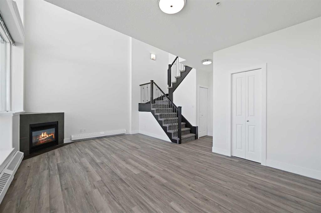 This stylish loft-inspired sub-penthouse rises high above the city on the 24th and 25th floors, offering two bedrooms, 2.5 bathrooms, and a dramatic airy loft with sleek glass railings overlooking the main level. Floor-to-ceiling windows frame sunny western views of the majestic Canadian Rockies, while an oversized balcony creates the perfect outdoor retreat—ideal for a full patio set or lounge seating to soak in Calgary’s spectacular sunsets. Inside, the open-concept design pairs warmth and sophistication. The maple kitchen features granite countertops and a breakfast island, opening seamlessly to the living and dining spaces below the soaring loft. Plush carpeting, imported tile, designer laminate hardwood, and a striking open staircase give this home a unique personality and modern edge. This sub-penthouse also includes two titled underground parking stalls, a storage locker, and in-suite laundry—making everyday life both stylish and convenient. At Encore, the lifestyle is second to none. Enjoy an indoor heated pool, a fully equipped fitness centre with sunrise views over downtown, and a vibrant social lounge designed for entertaining. All of this is perfectly located just steps from shops, services, and the LRT for a quick commute downtown.