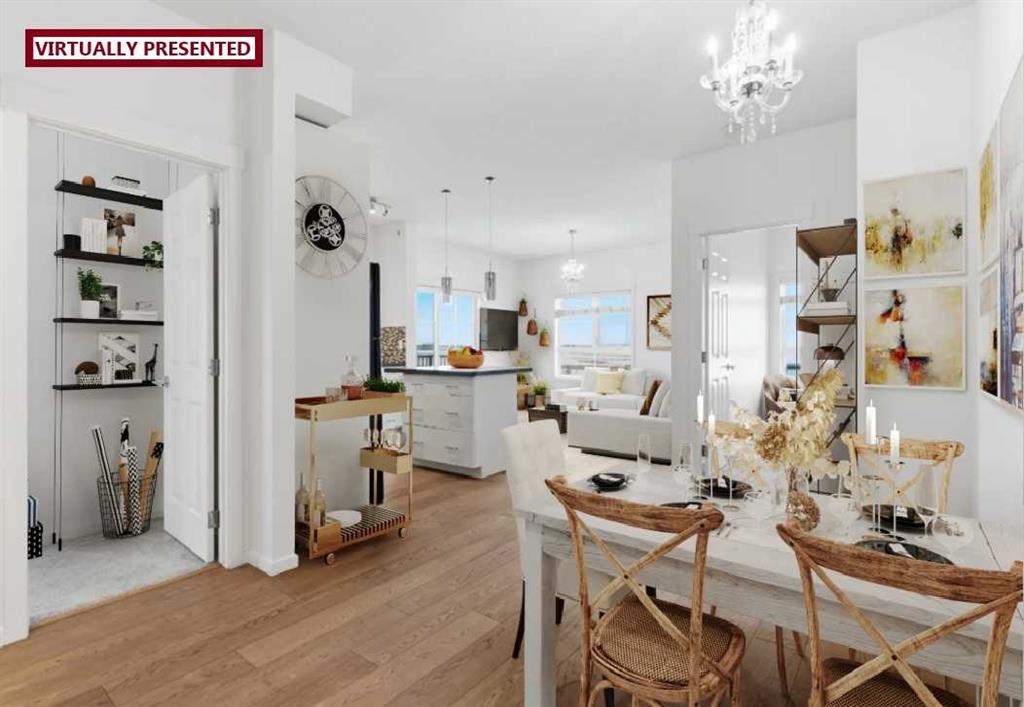 One of a kind location and unique TOP FLOOR CORNER UNIT: Gorgeous layout with East AND North corner windows + patio doors, a fully open balcony with Mountain views as well as sunrises to the East. Welcoming interior offers enough comfortable area by the entry for a complete home office, study or library/sitting area, in addition to an oversized foyer and laundry combined. The open plan moves into a big central dining room, the beautiful wrapped kitchen with chopping-and-seating island and finally the spacious corner living room. For privacy, 2 great bedrooms are located on opposite sides of the lifestyle use rooms, and each has one of 2 full bathrooms – the primary even has a full walk-through dressing room closet. See iGuide 3D link and Detailed Plans for all the superbly balanced information – some photos include Virtual Furniture, appropriately fit for enhancing all the room spaces. Copperfield Park is a 2012 complex with only 5 low rise buildings and 14 townhomes, attractively landscaped outdoor spaces, closest to to South Pointe Shopping Plaza, Deerfoot Trail, plus, getting onto Stoney/201 East/South at 114th Avenue SE. Enjoy Titled underground Parking, large Storage and secured mail/package delivery.