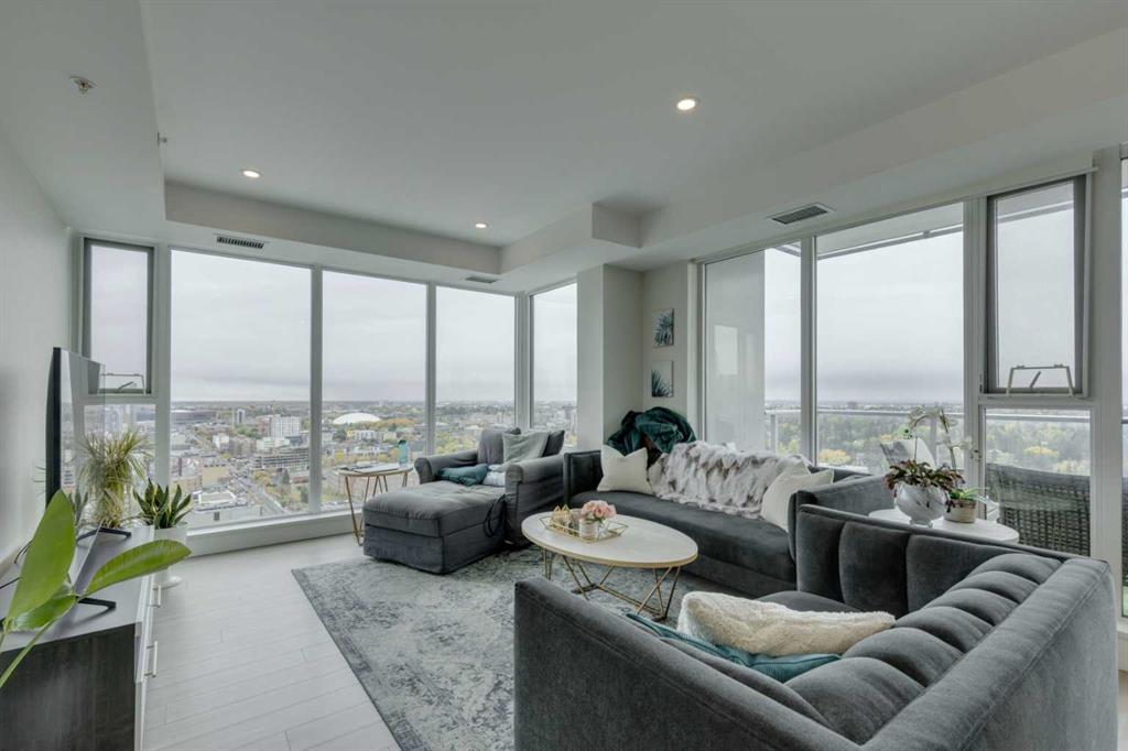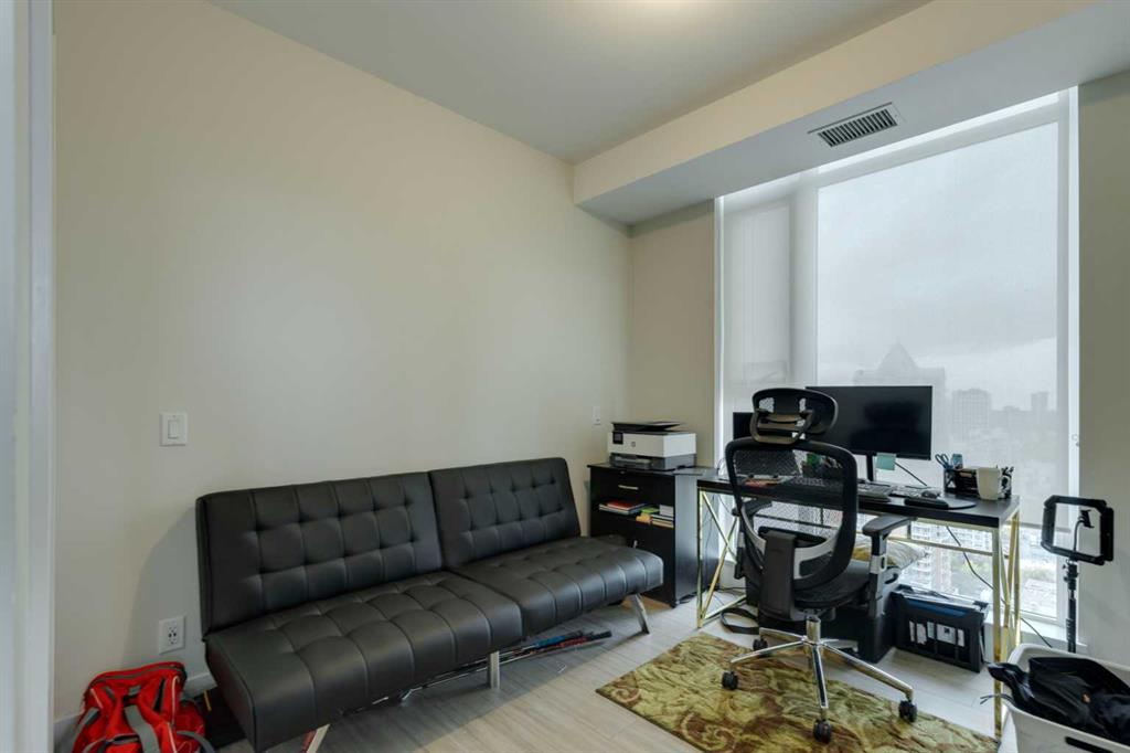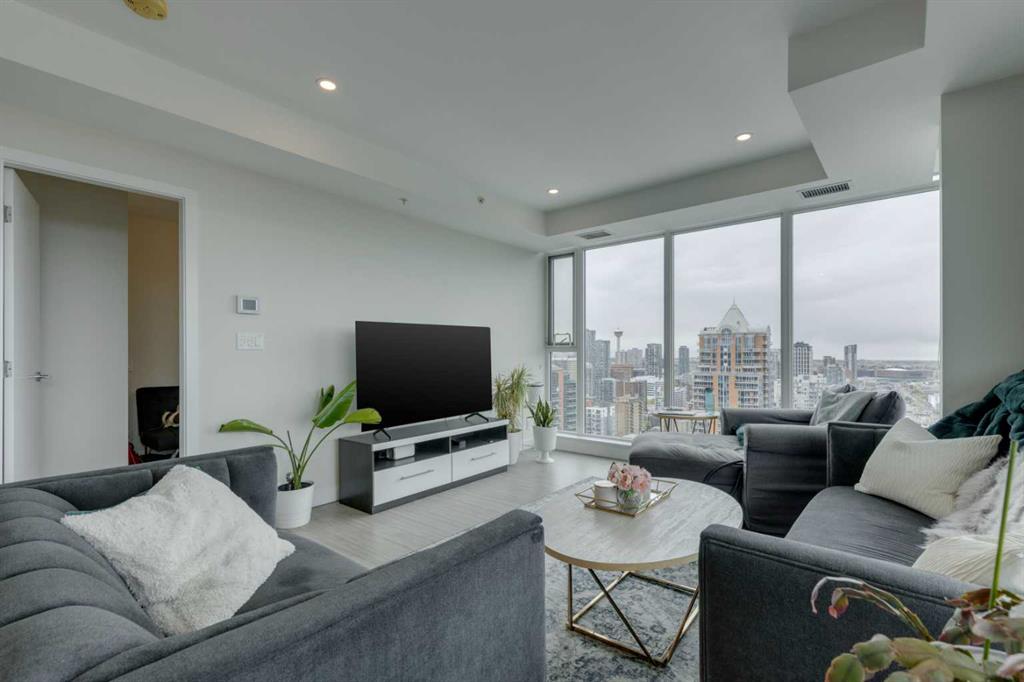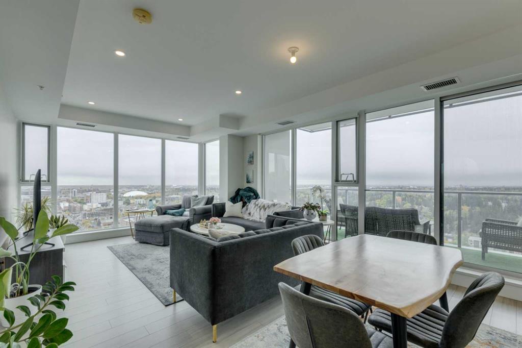 Welcome Home to The Royal! This 2 bedroom south/south east facing corner unit is perfect for anyone looking for all the perks and convenience of inner city living. Floor to ceiling windows throughout this home flood the living spaces with natural light and provide amazing downtown and city views. Opening to the living and dining areas, the well-appointed kitchen has been equipped with a gas range, integrated refrigerator, built-in shelving and an 8’ quartz island with breakfast bar. The nice sized south facing balcony is the perfect place to relax and entertain. The primary bedroom has a walk-in closet and 4 pc ensuite with double vanity and walk-in shower. Adding privacy, the 2nd bedroom and 4 pc main bath are located on the opposite side of the unit. Enjoy the convenient full sized in-suite laundry and comfort of central air. The amenities at The Royal are amazing bar none – residents enjoy the 10,000 sq ft Club Royal including a fully equipped fitness centre, squash court & sauna, private dining room with gourmet kitchen & resident’s lounge, a beautiful garden terrace with barbeques, fire tables as well as 24 hr concierge service. Included is assigned heated, underground parking and an assigned storage locker. Located 1 block off lively 17th Ave SW where residents enjoy bars, restaurants and shoppes and conveniently attached to Canadian Tire and Save-On Foods. Walking distance to Downtown and all the amenities of Mount Royal Village and Mount Royal West. Enjoy easy access to transit, 17th Ave SW, 14th St, and the MNP Community & Sport Centre.