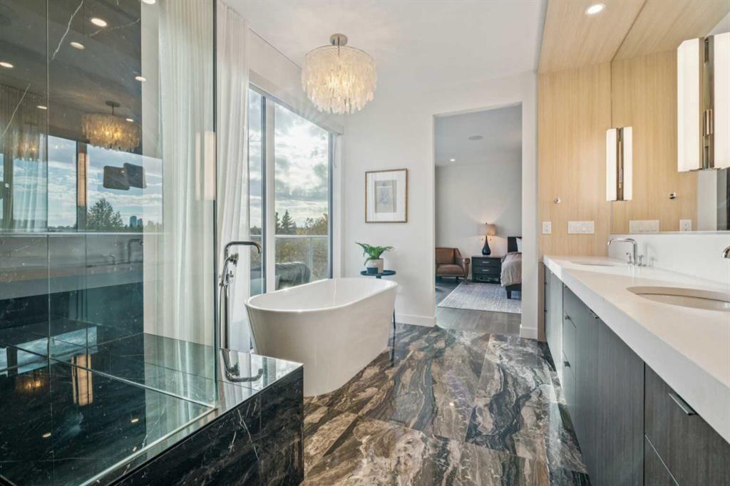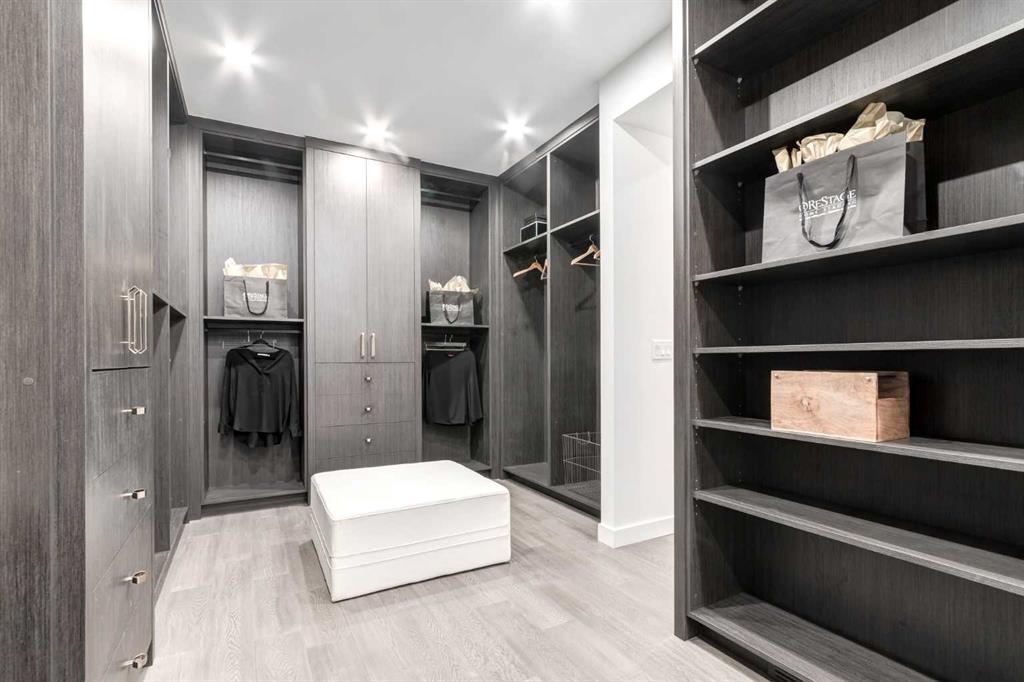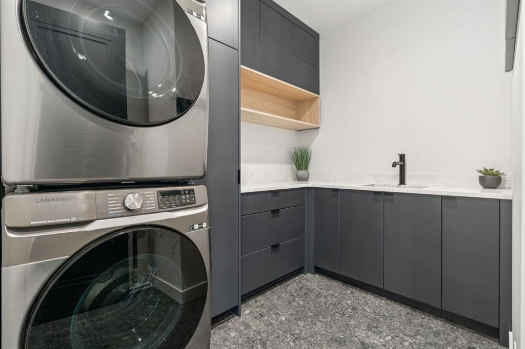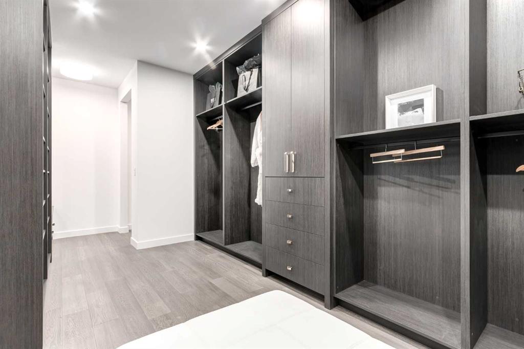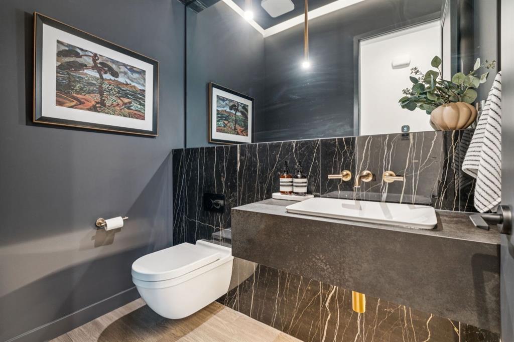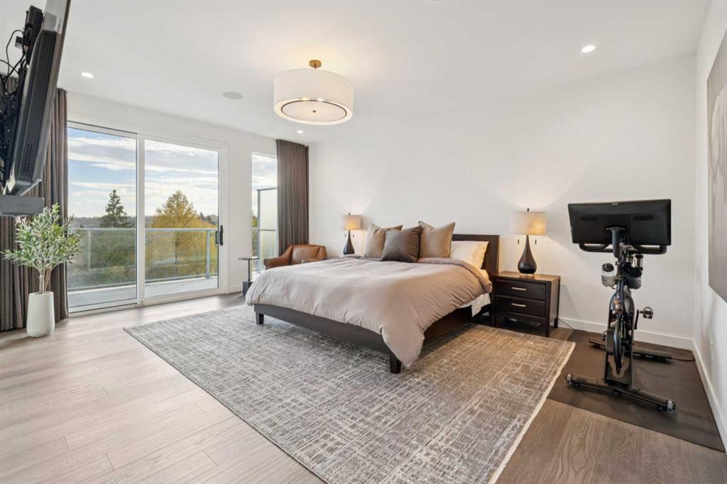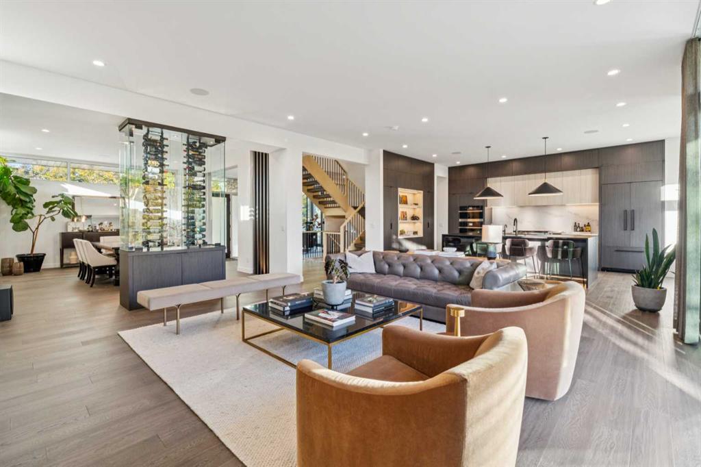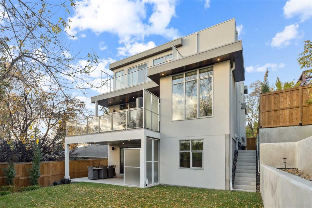 Tucked away in an exclusive enclave just moments from Kensington and the downtown core, this modern architectural residence offers refined living in a truly exceptional setting. Designed for both comfort and sophistication, the home combines thoughtful design, superior craftsmanship, and cutting-edge systems throughout. Built to the highest standards, it features triple-pane windows, 2-zone hydronic in-floor heating in the basement, finished triple garage with floor drains, and a dual-zoned HVAC system. Extensive concrete retaining walls and planters frame the property, while Lutron lighting control, an 8-zone sound system with integrated ceiling and outdoor speakers, and 7.2 surround sound in the recreation room elevate the living experience. Porcelain tiles imported from Italy, Caesarstone countertops, and solid core interior doors reflect the quality that defines every detail. The main level showcases expansive open-concept living with 10-foot ceilings and floor-to-ceiling south-facing windows that flood the home with natural light. The kitchen is a true centrepiece—equipped with integrated JennAir appliances including a 48” gas range top, and a walk-in coffee bar/pantry with prep sink and wine fridge. A striking glass wine wall with floating racks separates the formal dining area, which comfortably hosts 12–14. The stone-clad fireplaces anchors the living room, while a glass-enclosed main floor den provides a serene workspace. Step outside to the 25’ x 16’ deck overlooking a secluded, landscaped south yard surrounded by mature trees. Upstairs, three spacious bedrooms each feature a private ensuite. The primary suite is a sanctuary with a spa-inspired 5-piece ensuite bathroom with heated floors, custom window coverings, an impressive 21-foot walk-in closet with extensive built-ins, and a private south-facing balcony offering sweeping and serene views of the Bow River Valley. A large, well-appointed laundry room completes the upper level. The walk-out basement includes a guest suite with attached bath, a recreation room with gas fireplace and wet bar, and access to a covered patio and your oversized triple garage with heated floors. The home has security cameras, central vacuum, irrigation, EV charging, and hot tub hookup. Perfectly positioned for an active lifestyle, this residence is steps from the Bow River pathways, West Hillhurst tennis and pickle-ball courts, and offers quick access to 16th Avenue for effortless weekend escapes to the mountains. Minutes from top schools, hospitals, shopping, the C-train, and downtown Calgary—this is contemporary living at its most complete and luxurious.