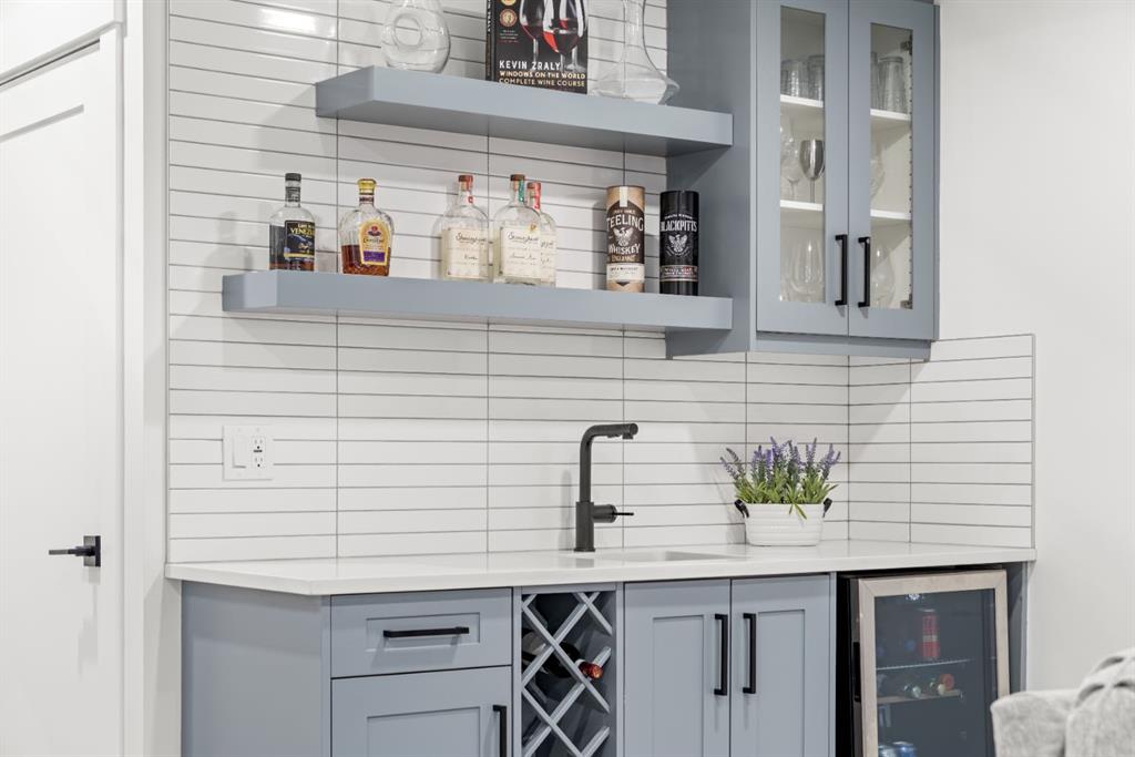 The fully developed basement extends the living space and is perfect for entertaining, offering a full wet bar, built-in media area with projection TV rough-in, hydrostatic in-floor heating throughout, a fourth bedroom, a four-piece bathroom, and additional storage.