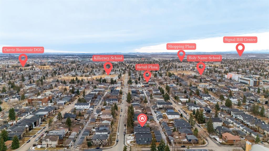 Additional highlights include built-in ceiling speakers, central air conditioning, central vacuum rough-in, and a rough-in for a security system. Ideally located close to parks, schools, local amenities, and the LRT, with quick access to downtown via Bow Trail or 17th Avenue, and within walking distance to the Killarney Aquatic & Recreation Centre and community garden.
