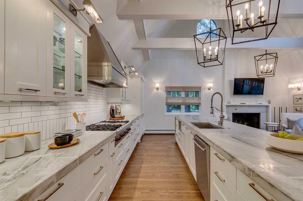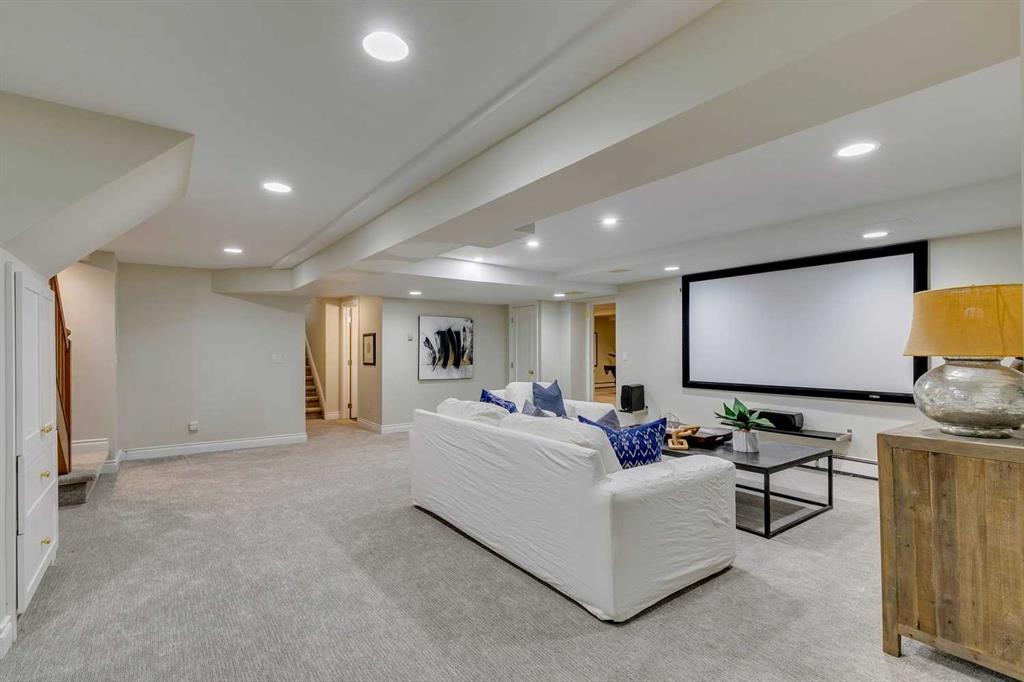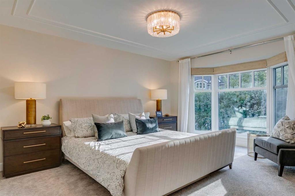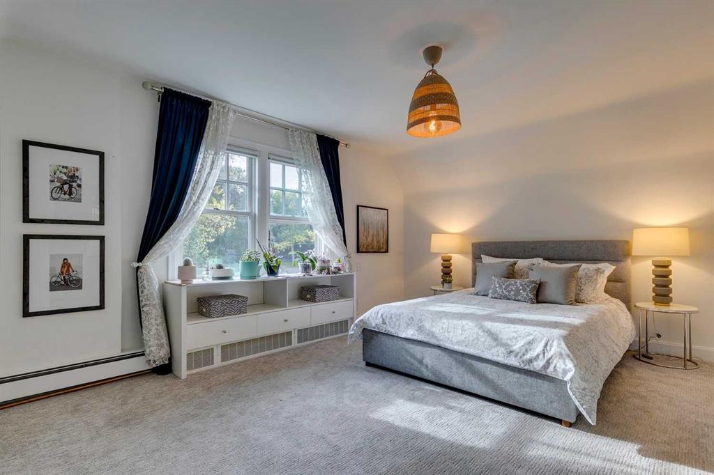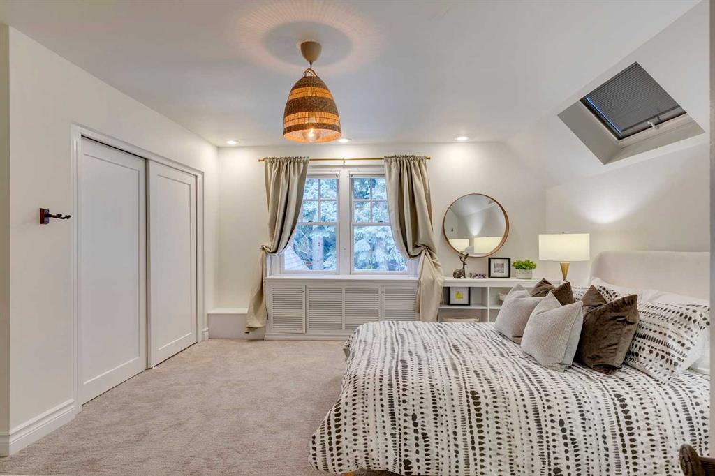 **Open house Sunday Sept 21 2:30-4 pm**. Beautiful luxury home with a total of 5671.48 square feet, situated on a private 1/3 of an acre corner prime lot in the heart of Mount Royal. Extensively renovated + elegantly appointed with a fabulous layout. The main floor offers a main floor primary suite with spacious walk in closet + spa ensuite bathroom. With 2676.54 square feet on this level, the other principal rooms are also all substantial in size. Lovely formal living room with wood burning fireplace, large dining room for intimate gatherings or family dinners. Stunning chefs kitchen with beamed ceilings, massive island, loads of cabinetry + open to comfy family room with wood burning fireplace. Laundry room + well thought out mud room complete the main level + lead to the attached triple tandem garage with high ceilings which could accommodate lifts + additional vehicles. The upper bedrooms are practical in design + share a renovated family bathroom. Easy downstairs living with a movie room with large projector screen. Bonus room to use as a wine cellar or for additional storage. Sizeable guest room + bathroom with full shower. Highly functional built out wet bar + additional living space for either your home gym or a games room for friends + family. Pie shaped lot with mature hedges creates a park feel + there is also a quiet secure backyard retreat with hot tub, pergola which is accessible through private entrance via the garage. Walk to excellent schools of all levels, parks, 17 avenue, Marda Loop shopping + more.